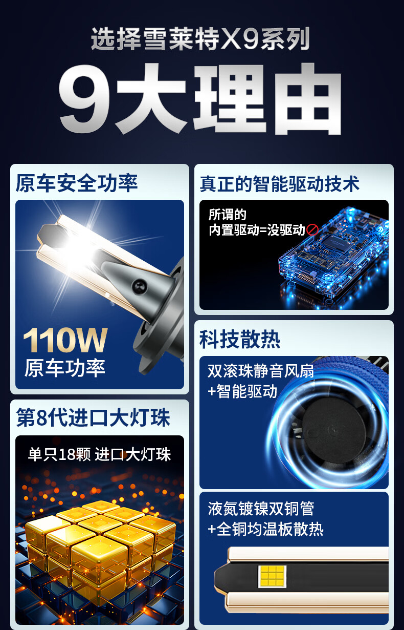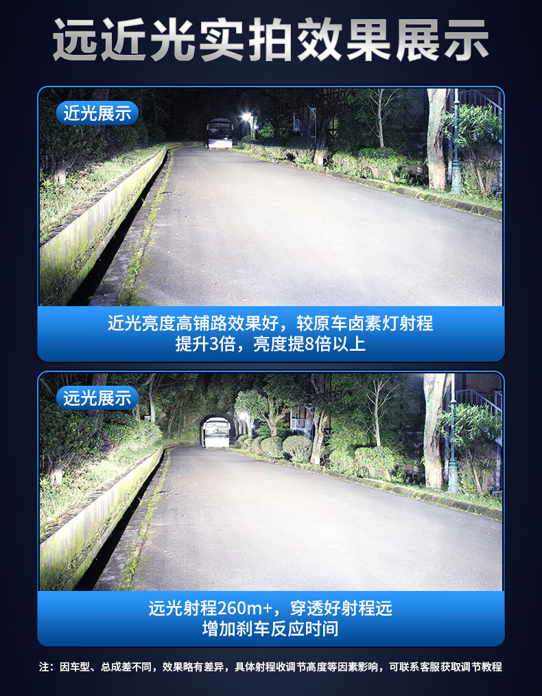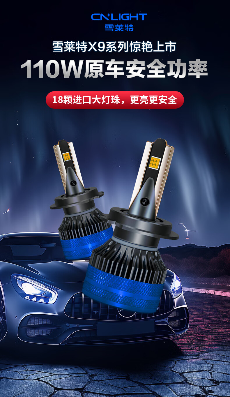雪莱特(Cnlight)110W汽车led大灯泡改装激光车灯超亮汽车远光灯近光灯H7【2支装】