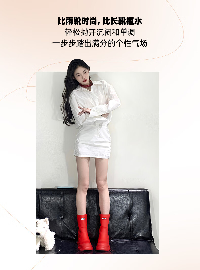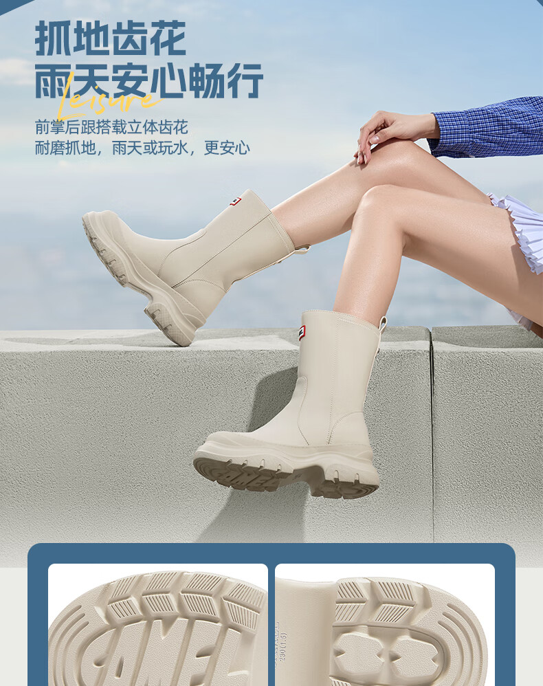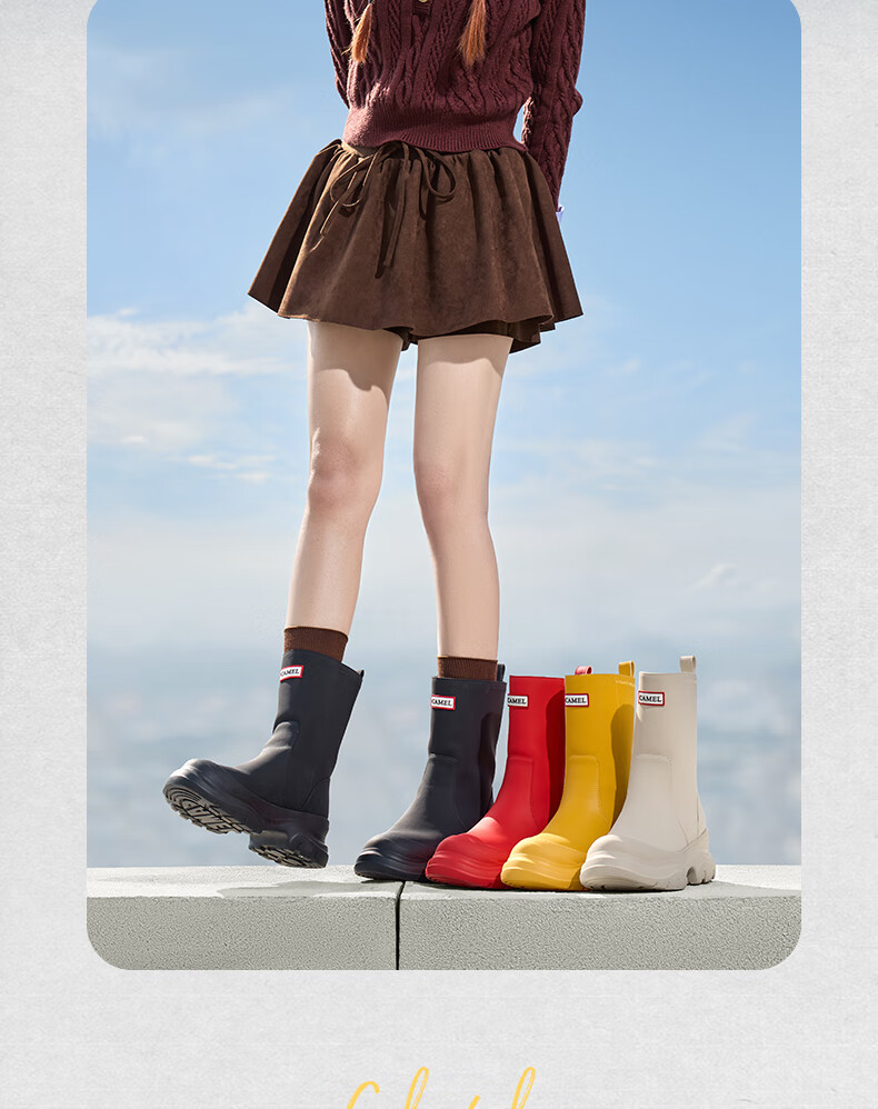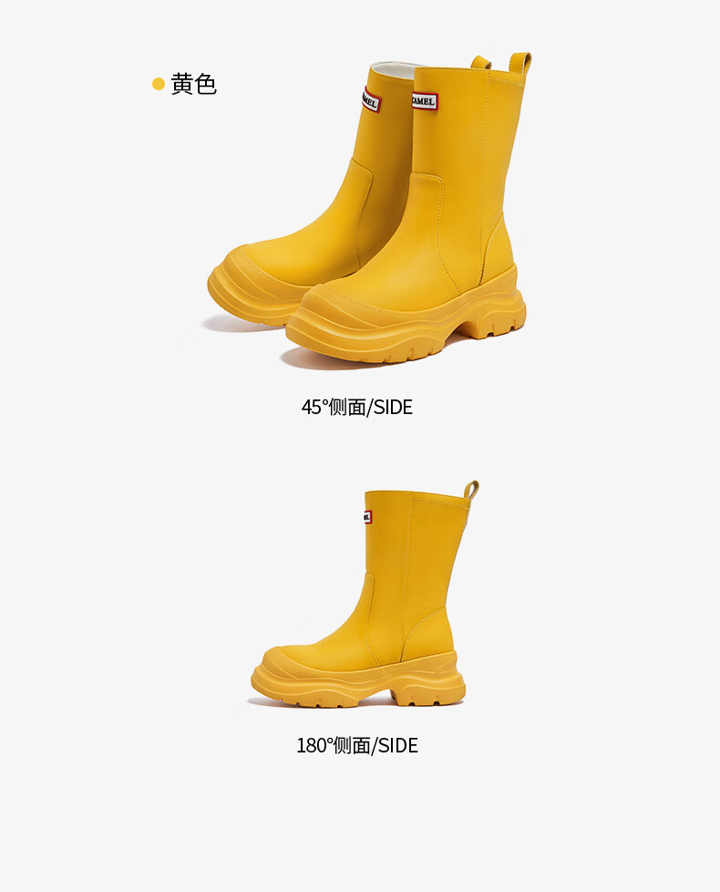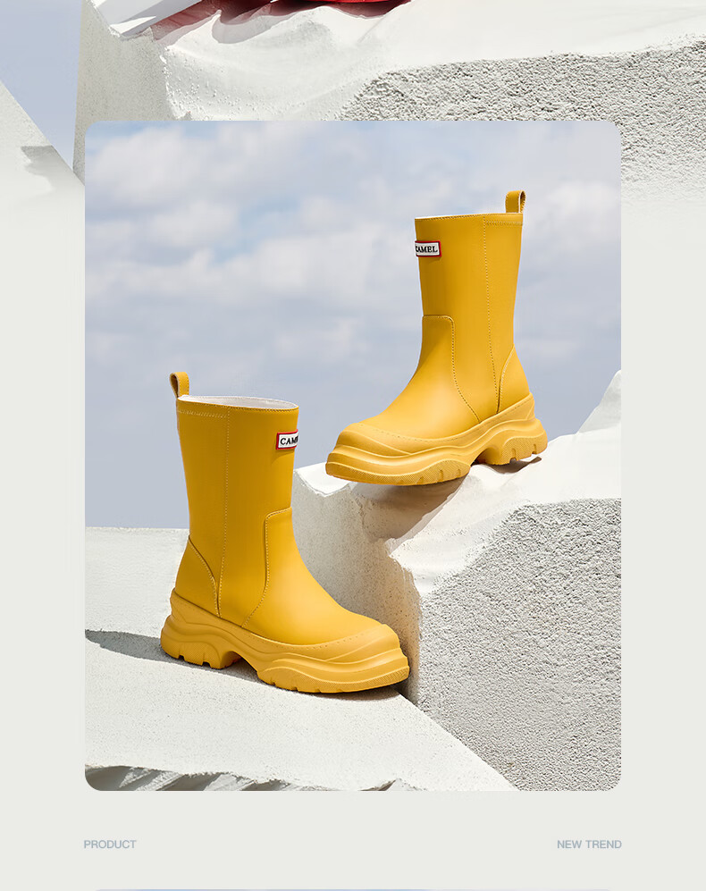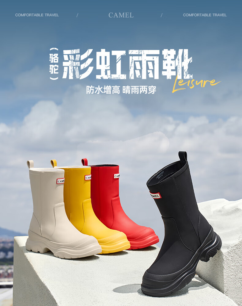 骆驼(CAMEL)彩虹雨靴女晴雨两穿轻盈户外休闲短靴 L25W577027 黄色 37