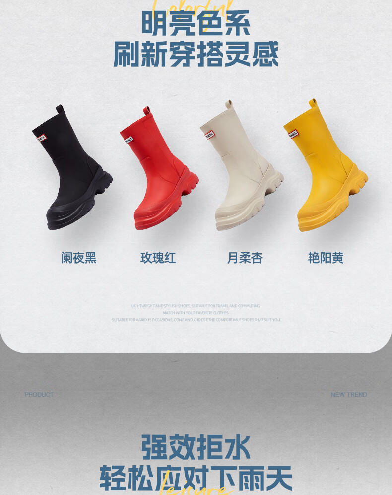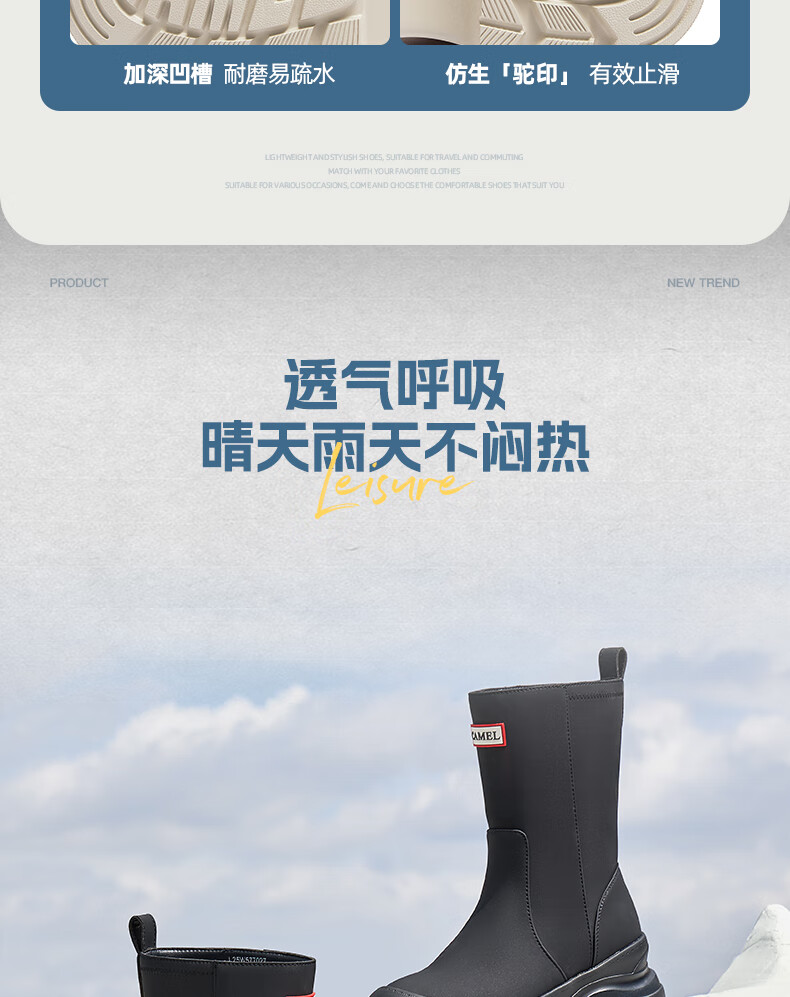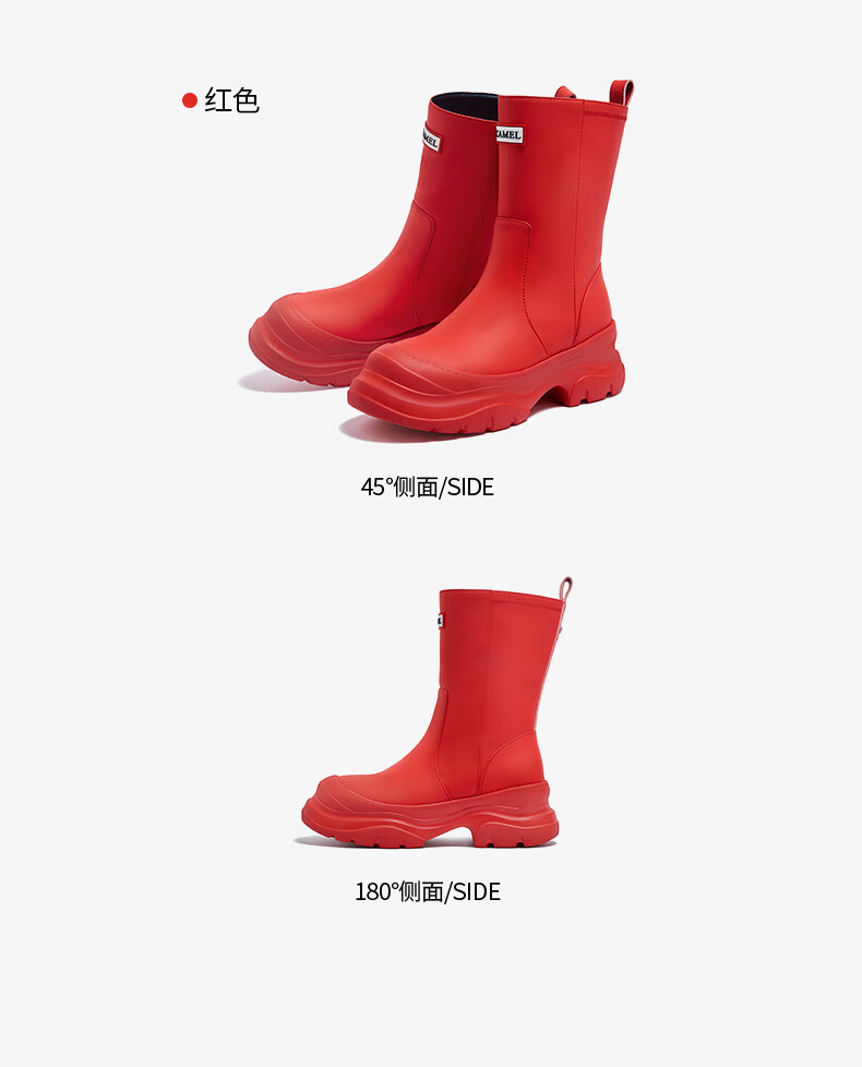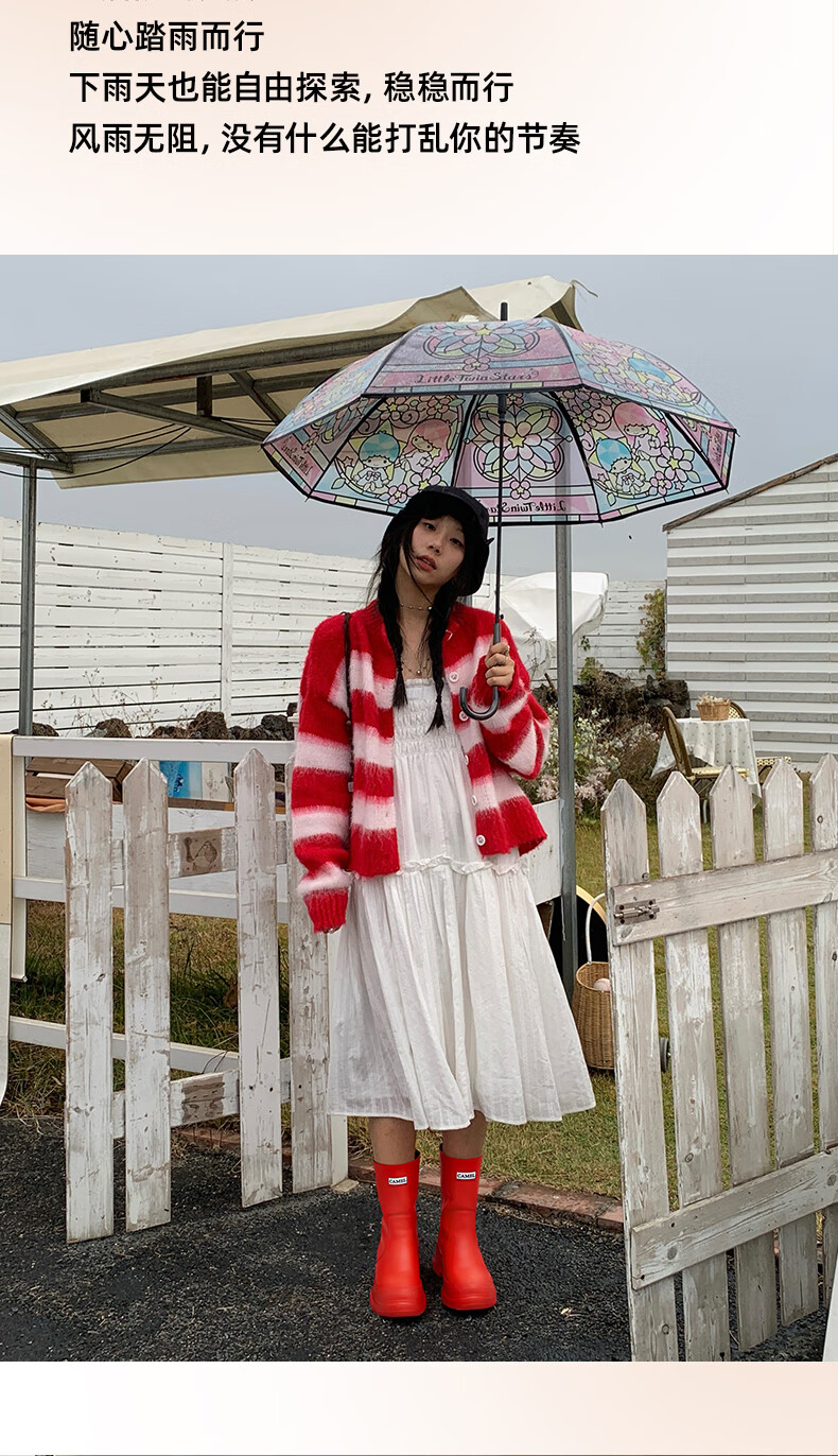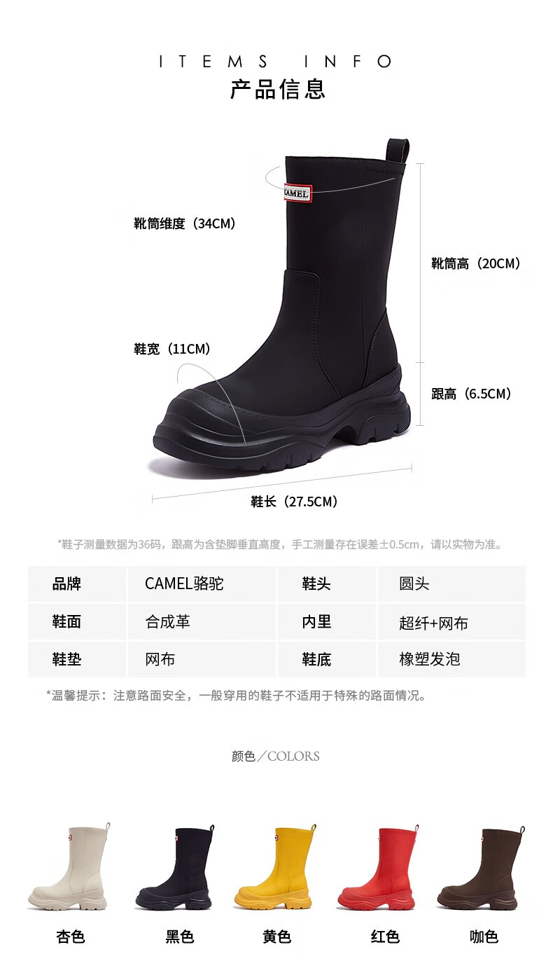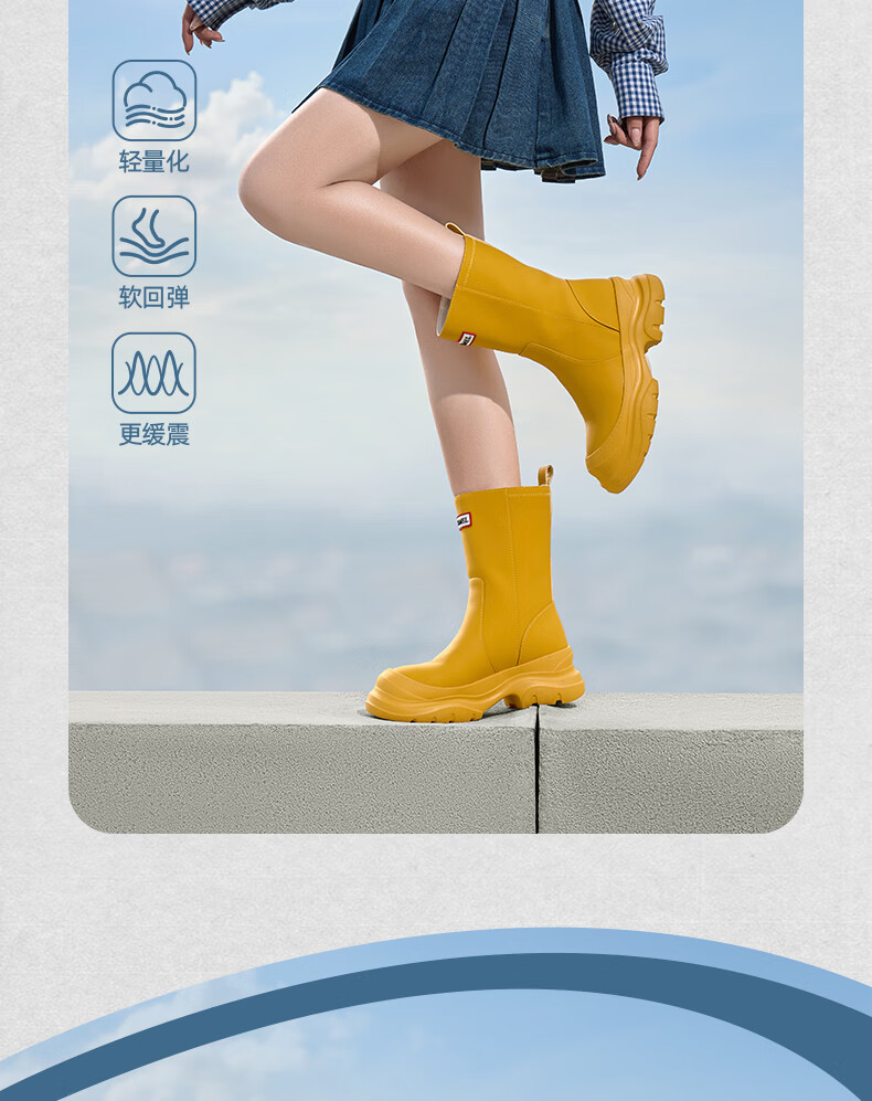 骆驼(CAMEL)彩虹雨靴女晴雨两穿轻盈户外休闲短靴 L25W577027 黄色 37