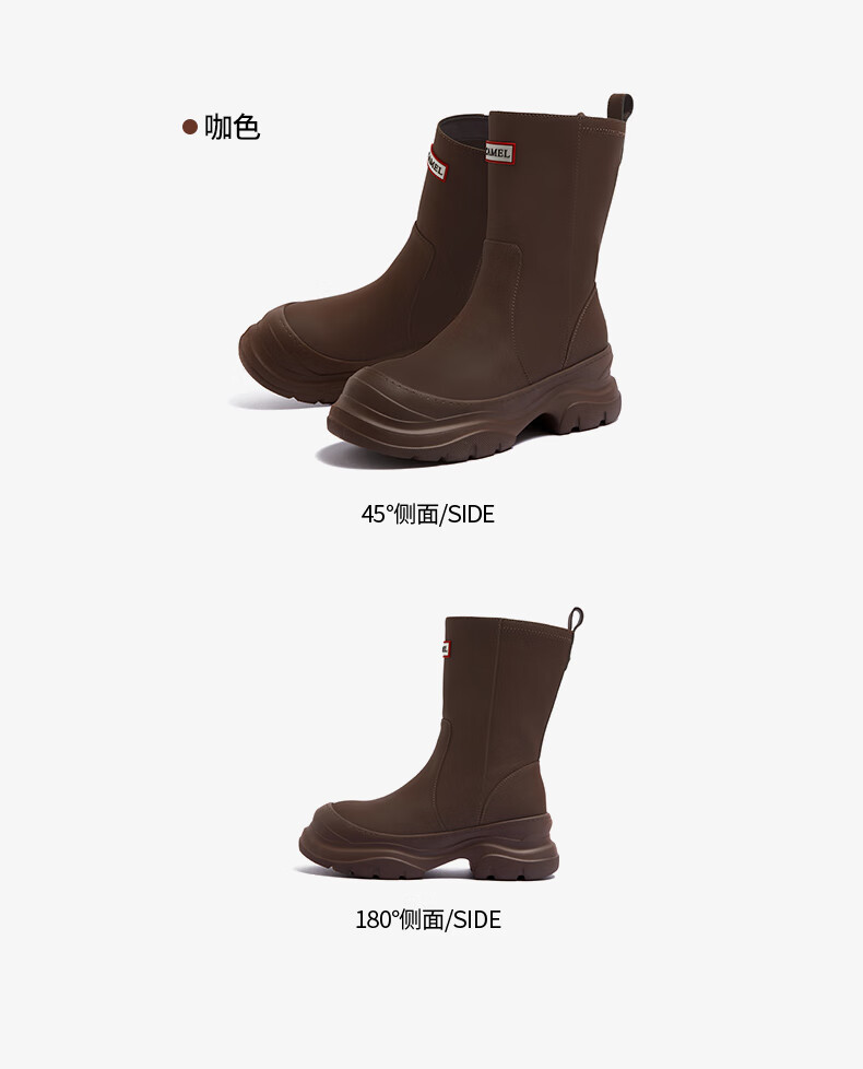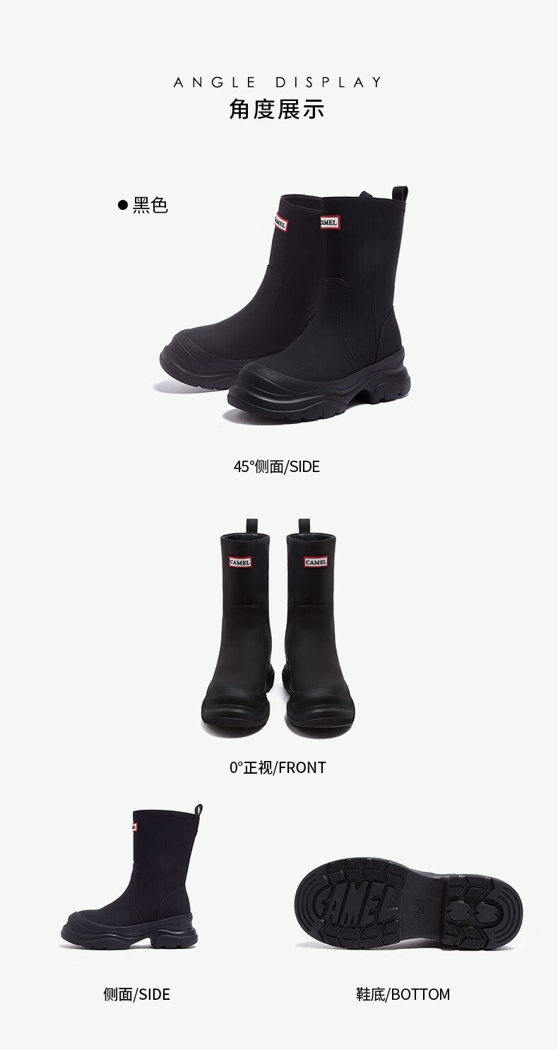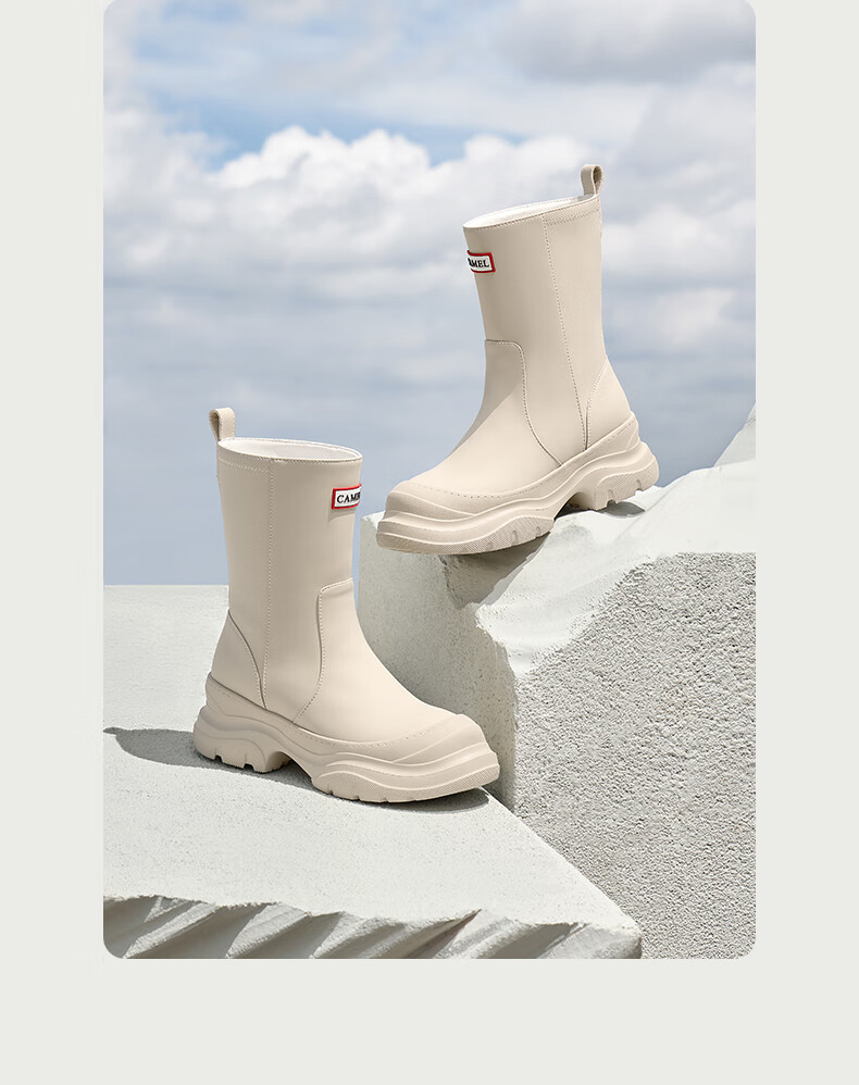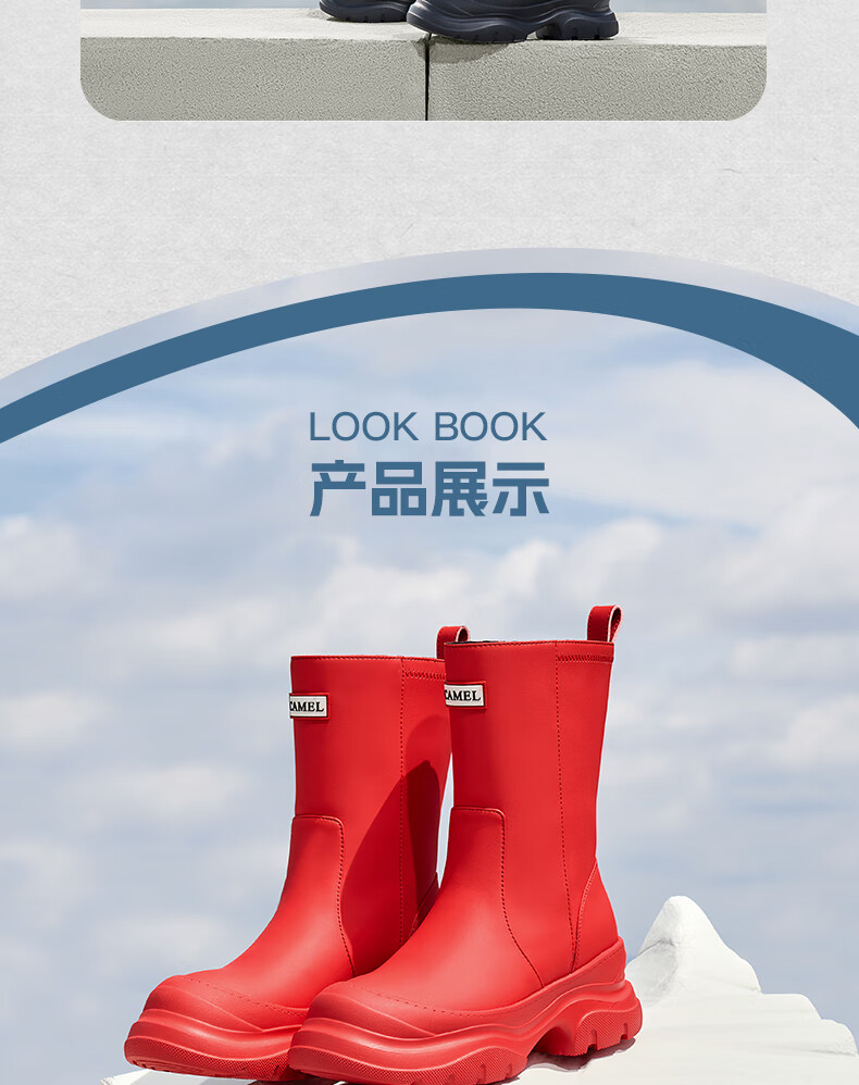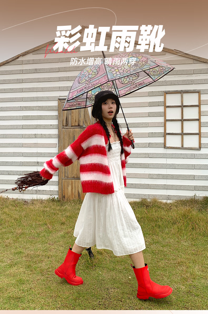 骆驼(CAMEL)彩虹雨靴女晴雨两穿轻盈户外休闲短靴 L25W577027 黄色 37