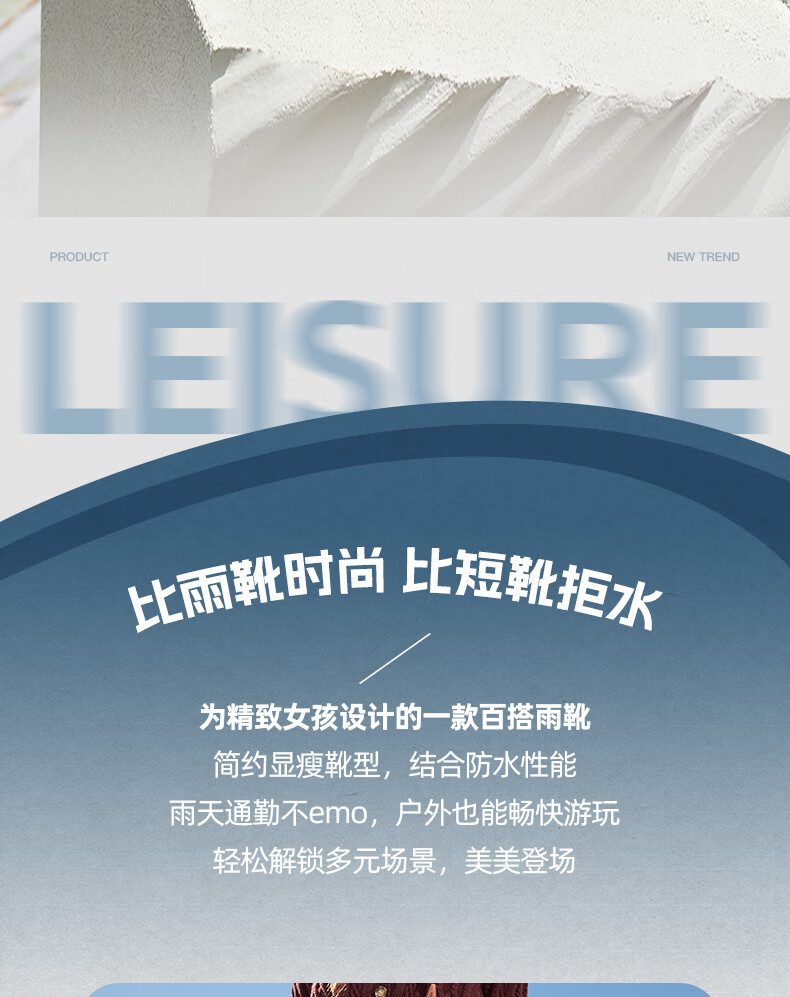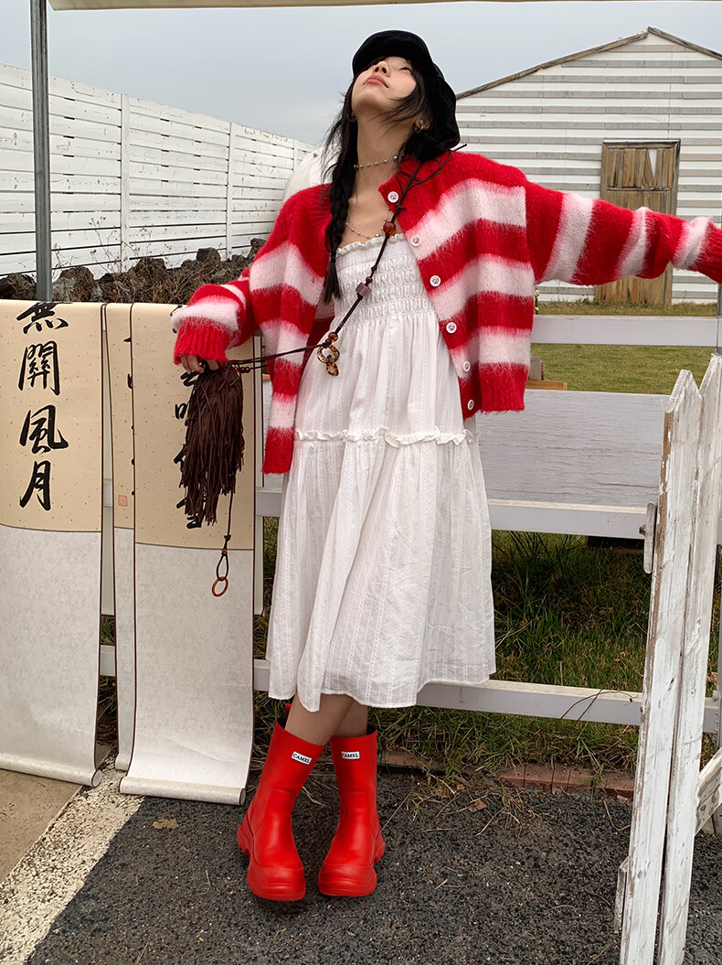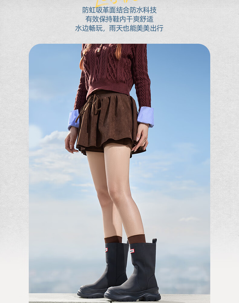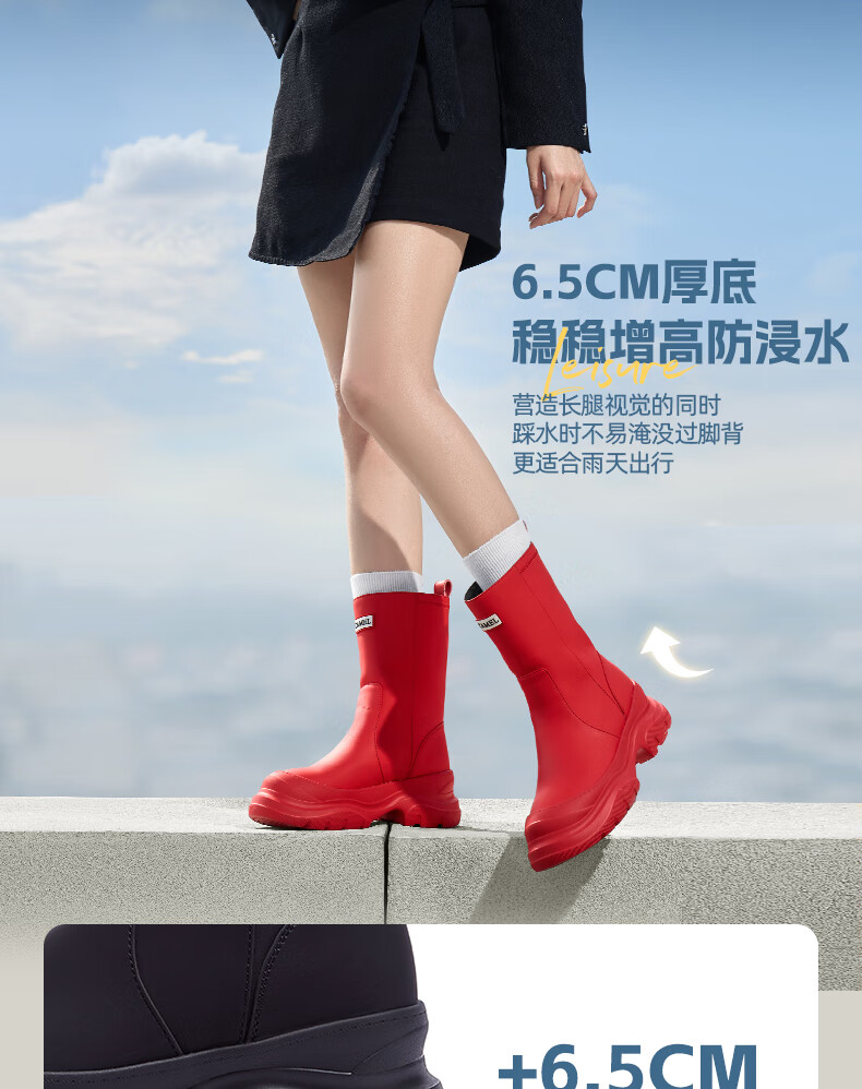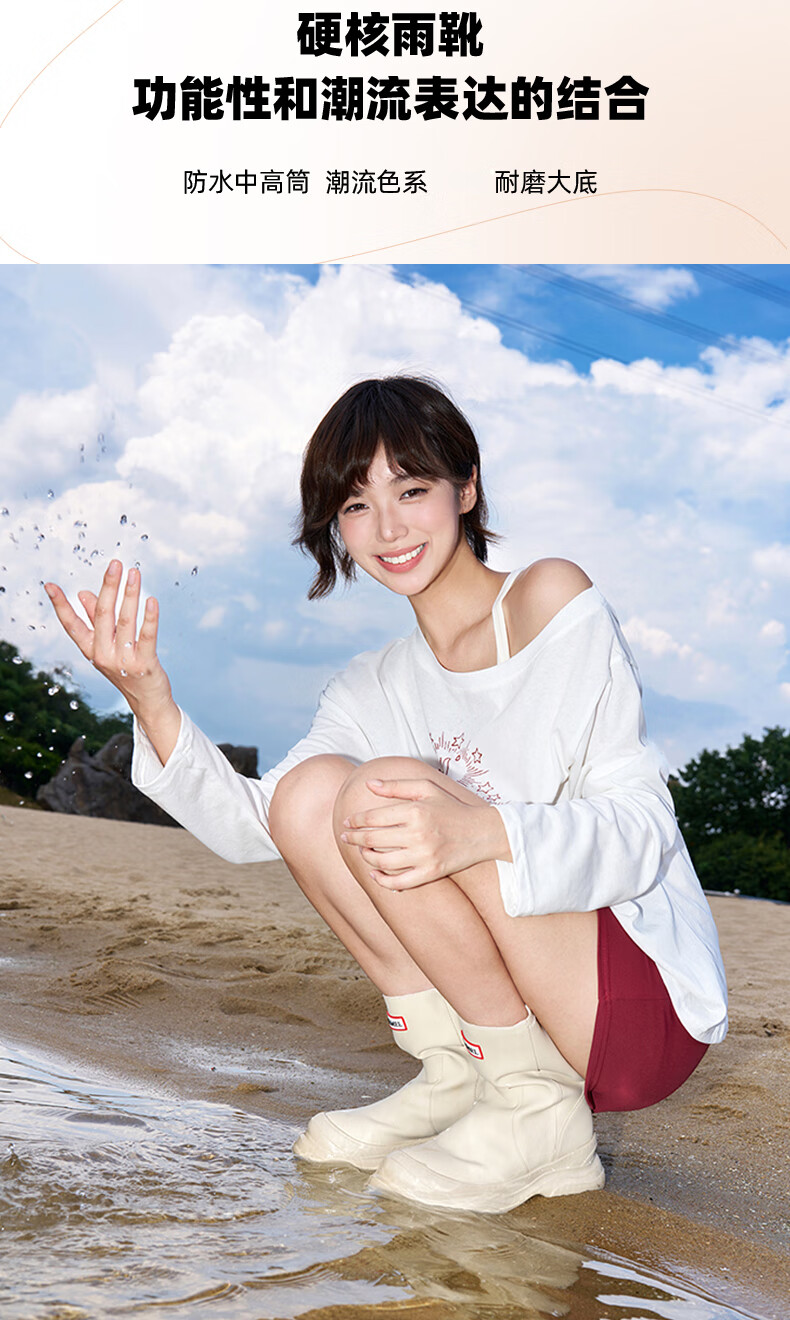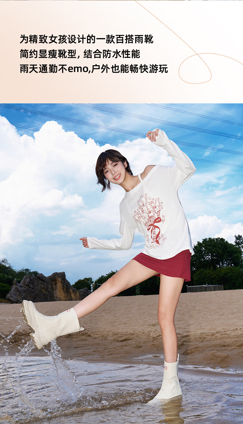 骆驼(CAMEL)彩虹雨靴女晴雨两穿轻盈户外休闲短靴 L25W577027 黄色 37