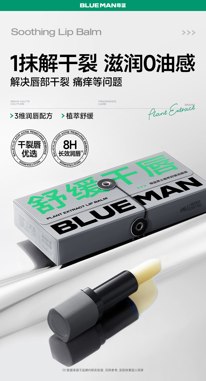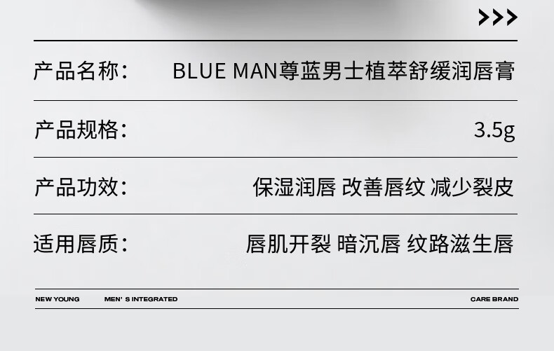 尊蓝(PRIME BLUE)男士专用植萃舒缓润滋润补水防干裂脱皮润唇膏 3.5g 润唇膏 3.5g