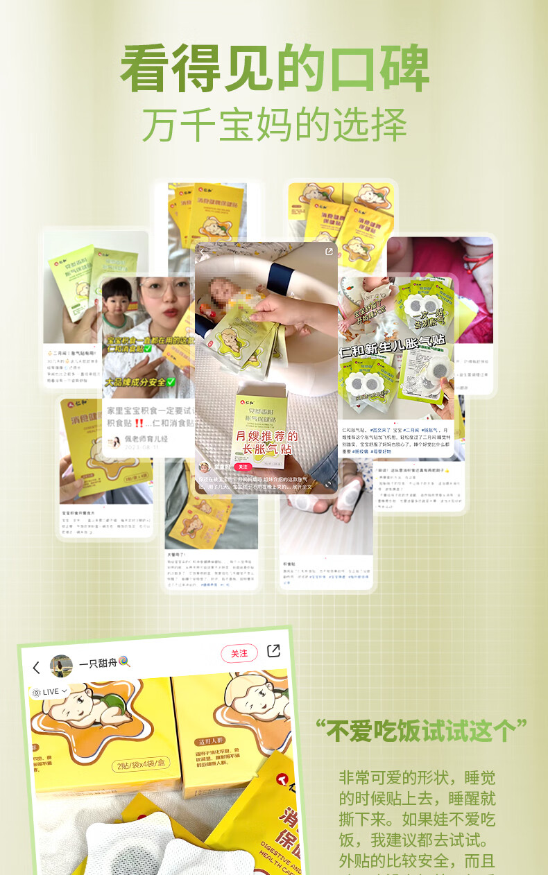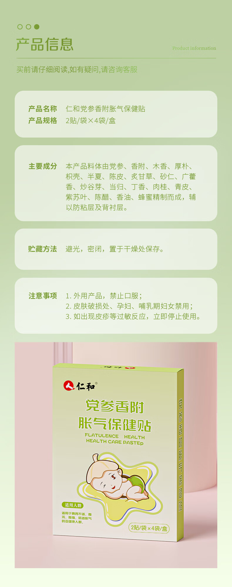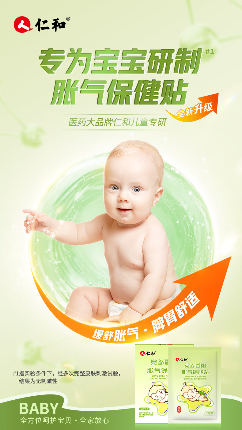 仁和胀气贴婴儿新生儿0-3个月小儿肠胀气贴宝宝肚脐贴防胀气两盒装