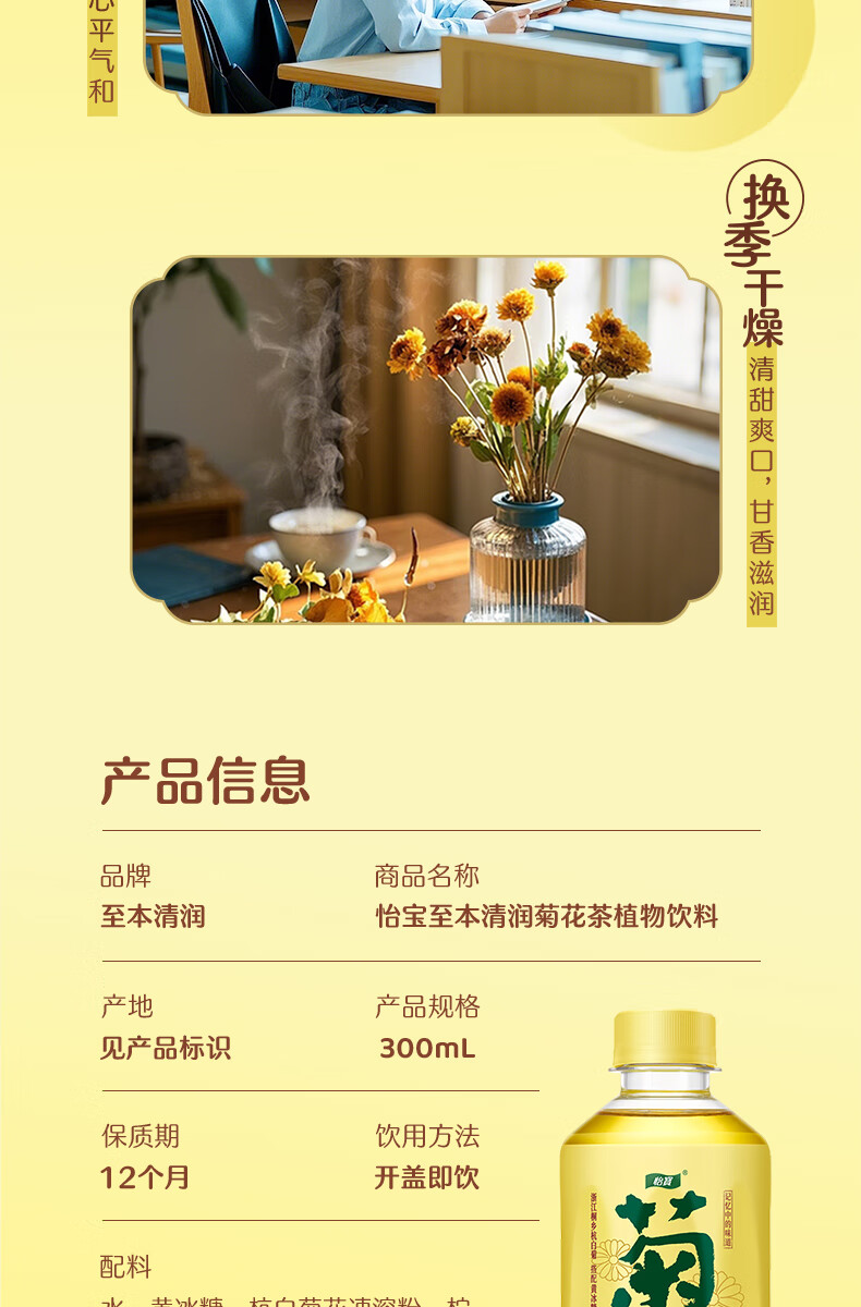 怡宝至本清润菊花茶植物饮料300ml*6瓶/小包装尝鲜装 迷你分享装