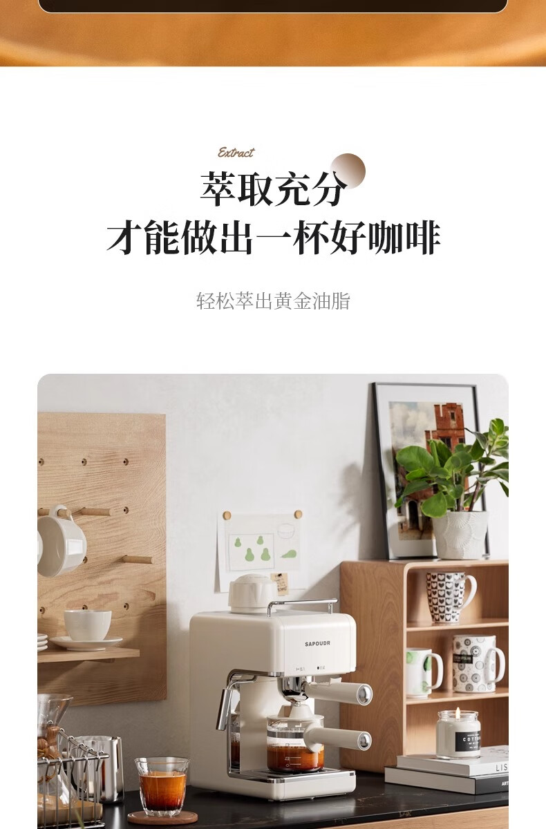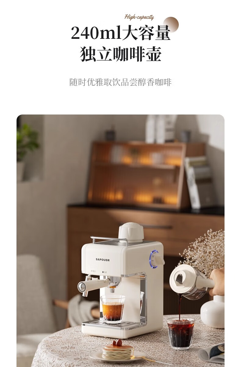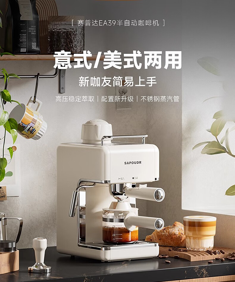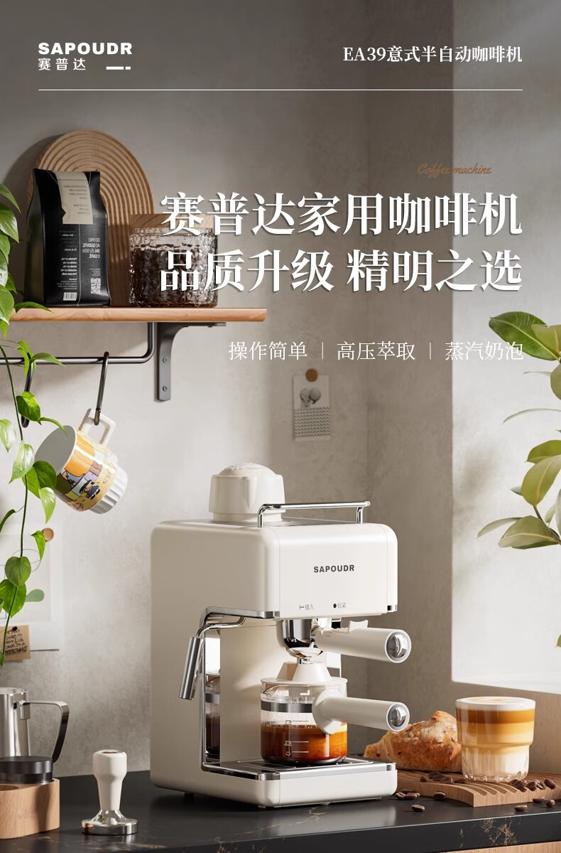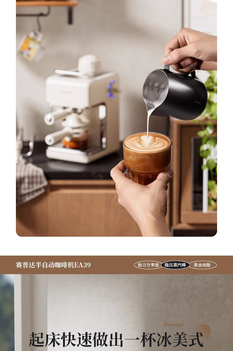 赛普达【政府补贴】EA39家用全自动咖啡机小型意式拉花打奶泡美式小白入门易学半全自动咖啡机 米白色