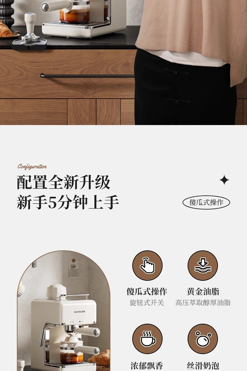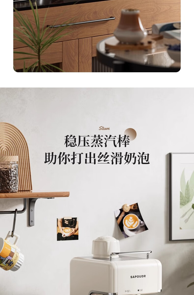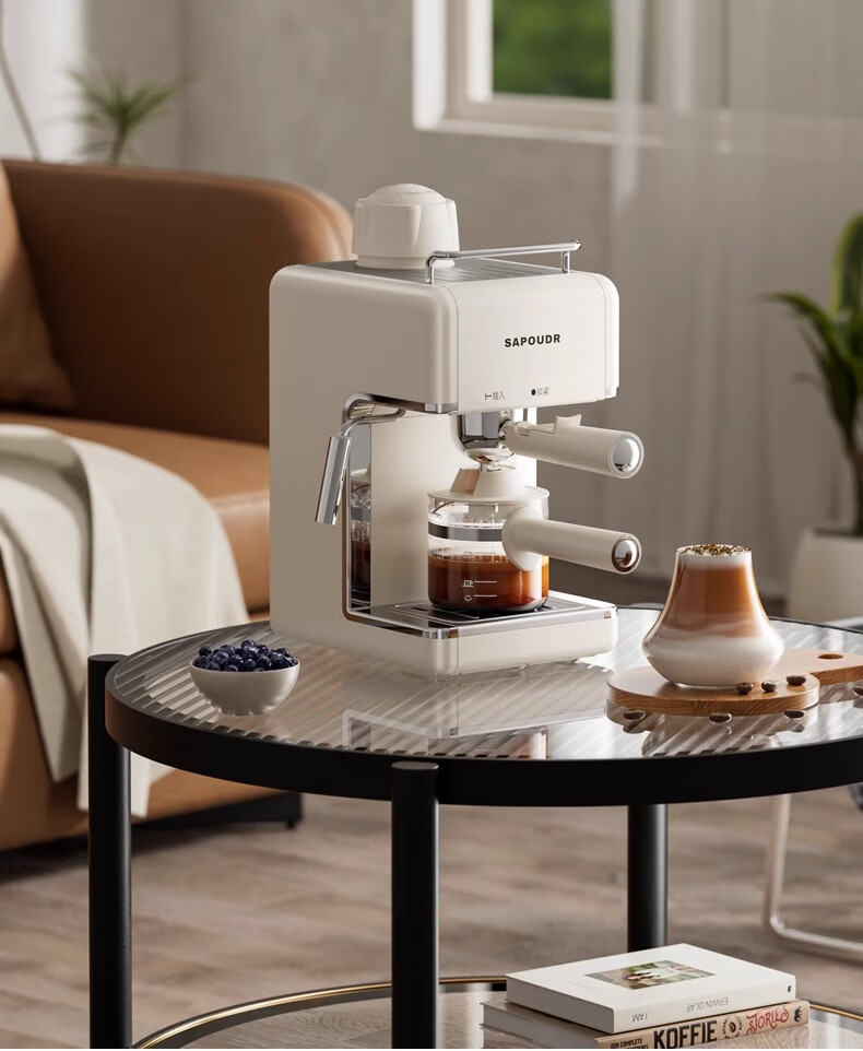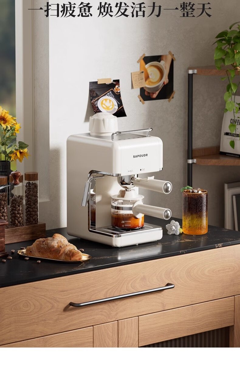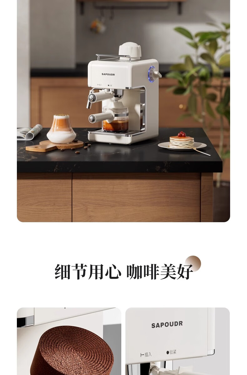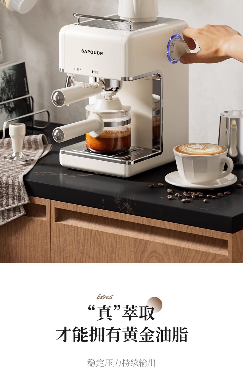 赛普达【政府补贴】EA39家用全自动咖啡机小型意式拉花打奶泡美式小白入门易学半全自动咖啡机 米白色