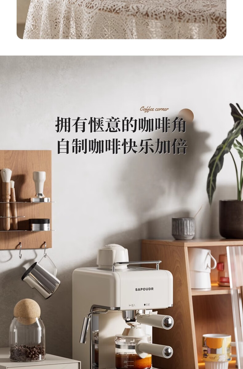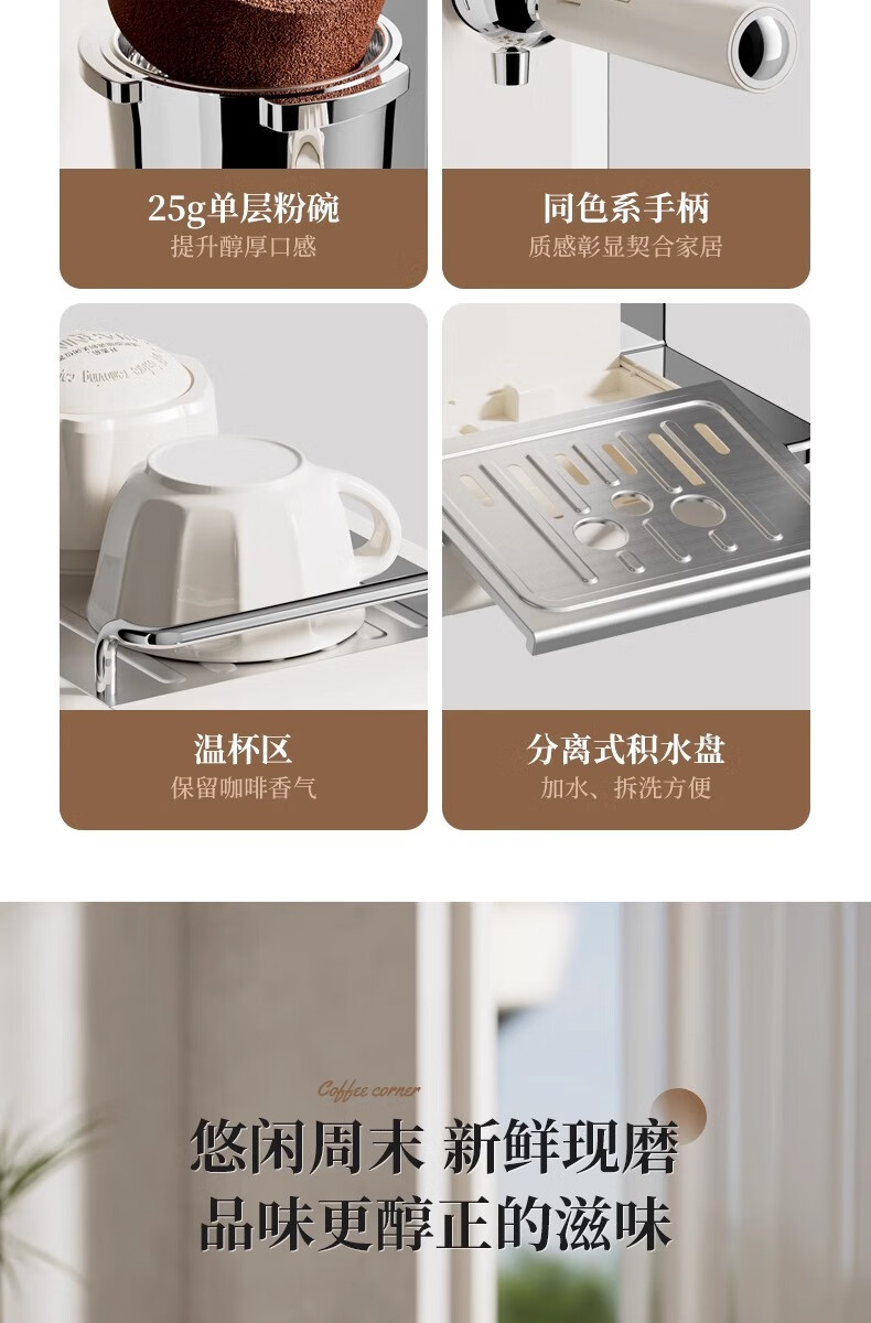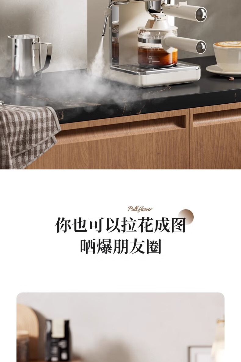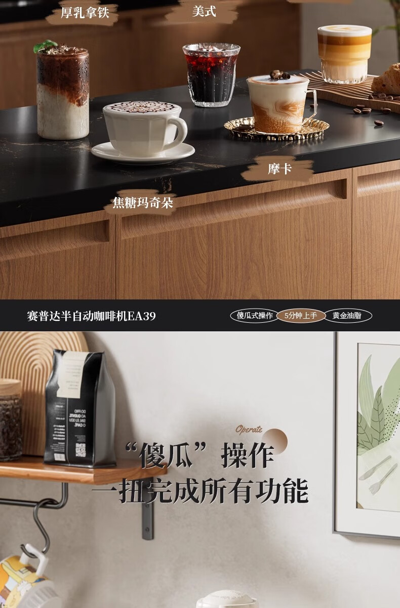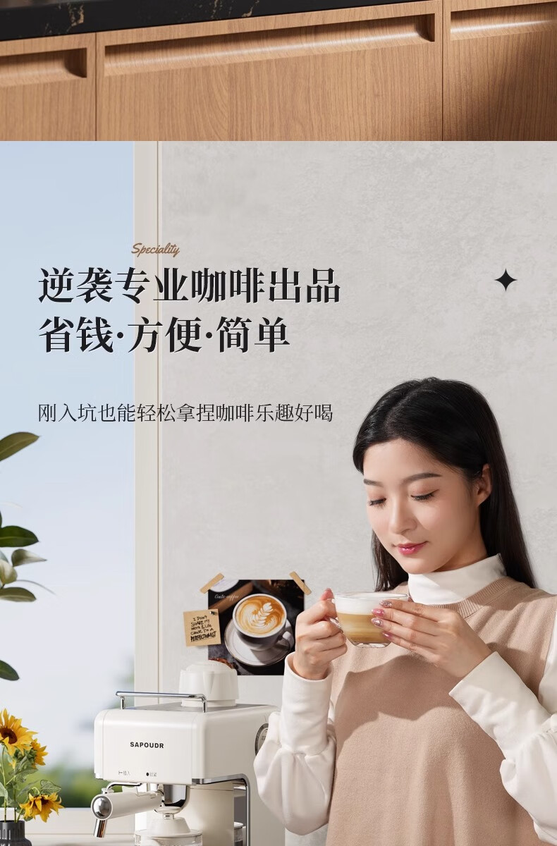 赛普达【政府补贴】EA39家用全自动咖啡机小型意式拉花打奶泡美式小白入门易学半全自动咖啡机 米白色