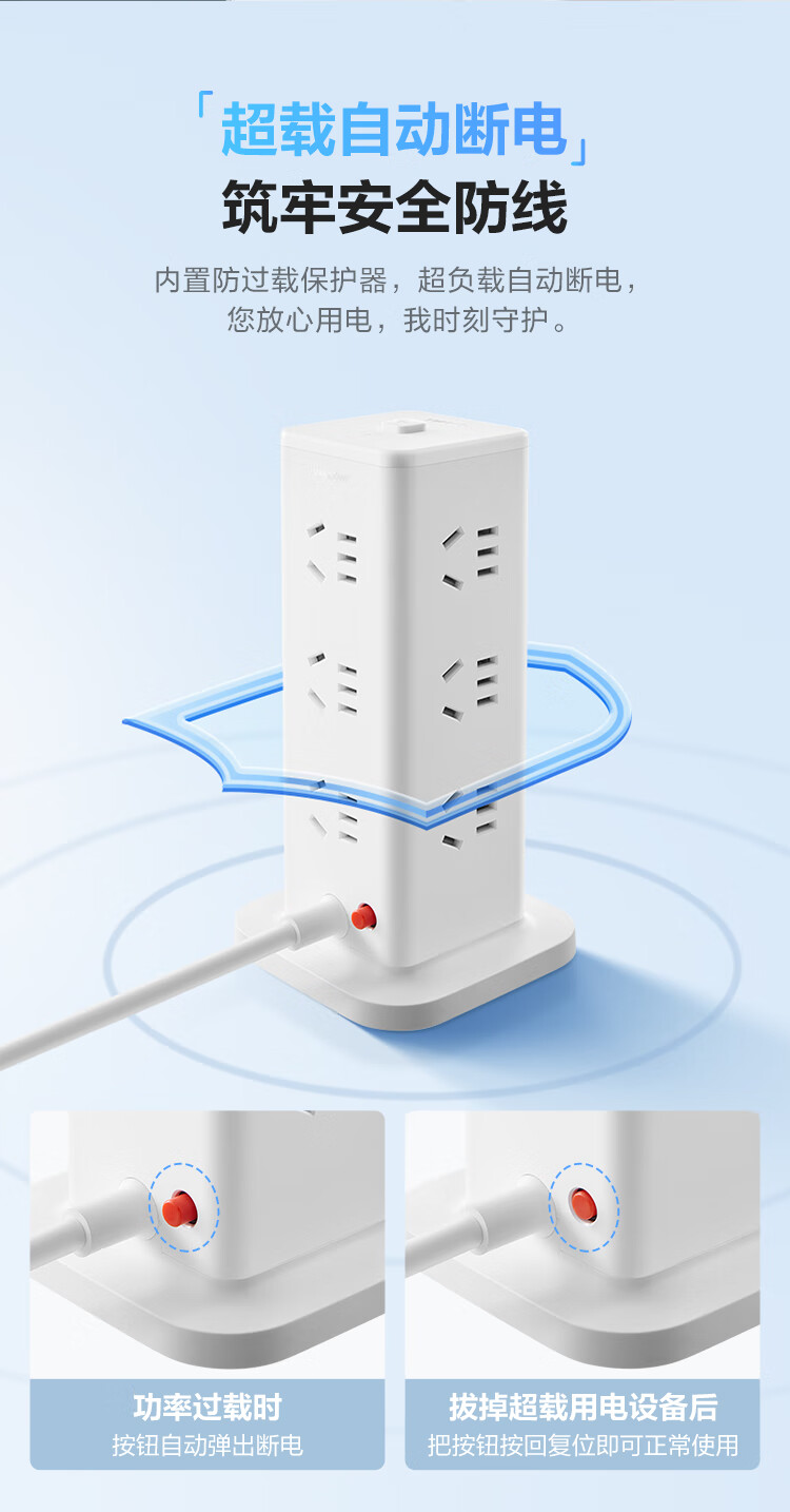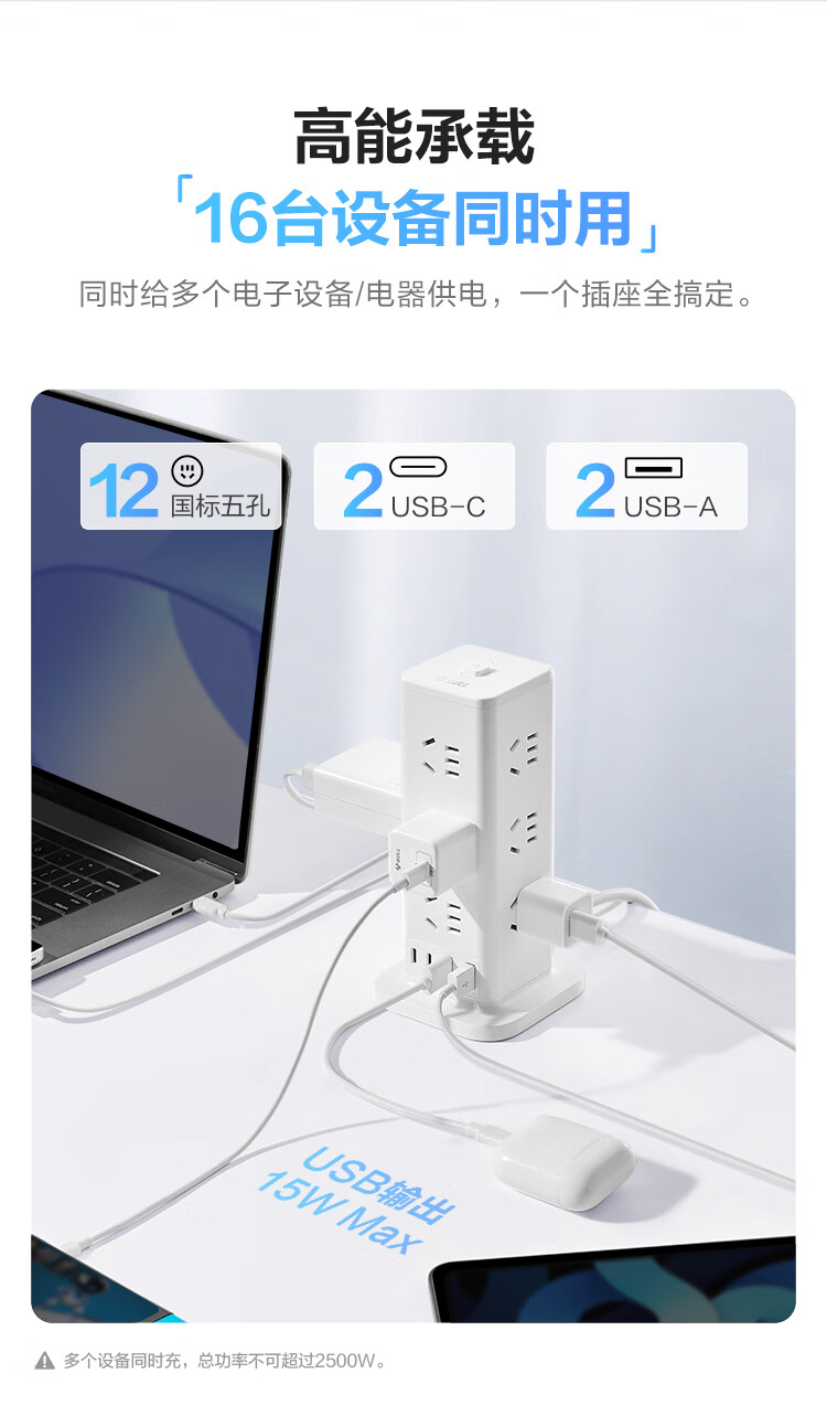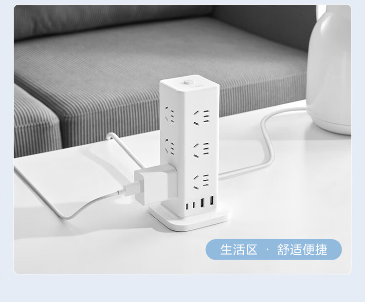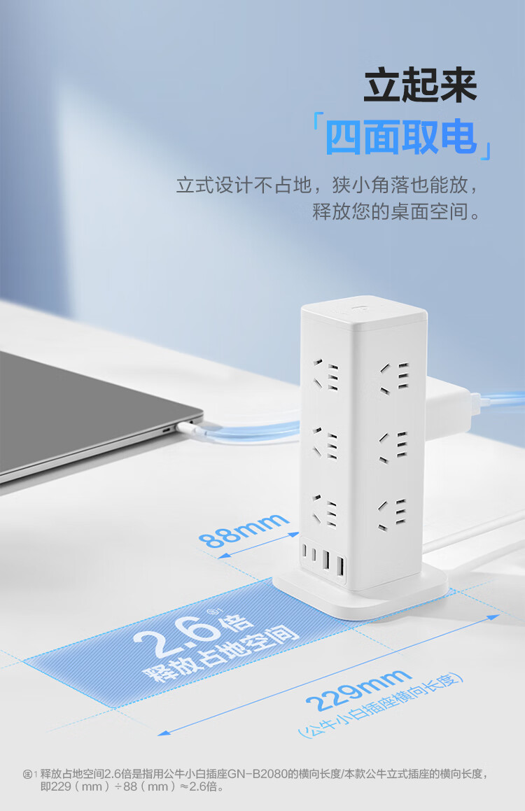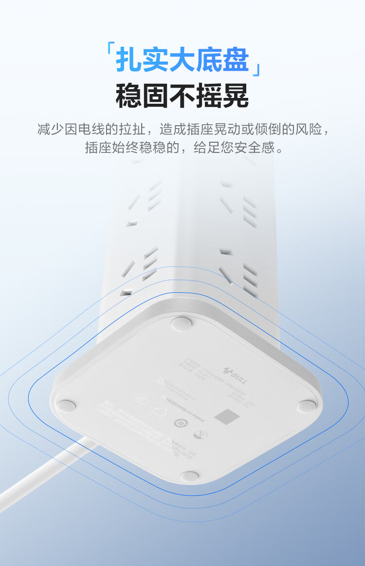 公牛(BULL)公牛立式USB过载保护插座/插线板/接线板/排插 12位总控开关+2A2C 全长1.6米 GNV-UL1012U 白色