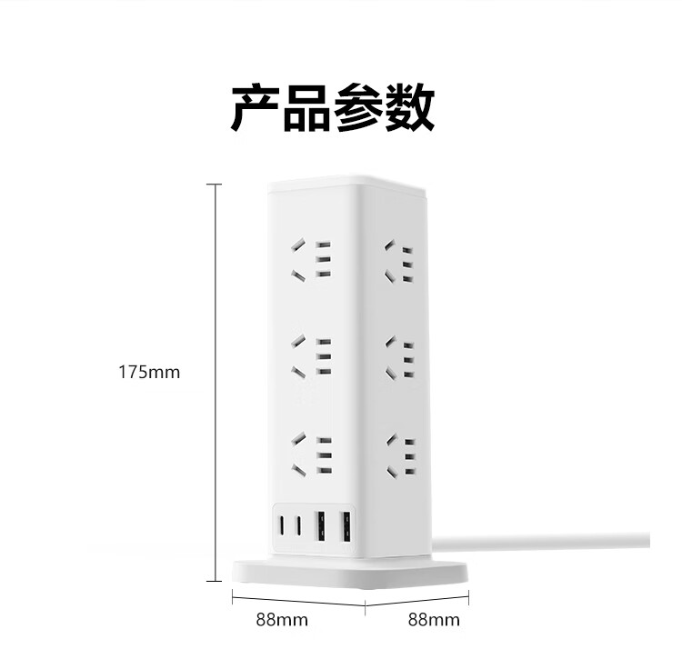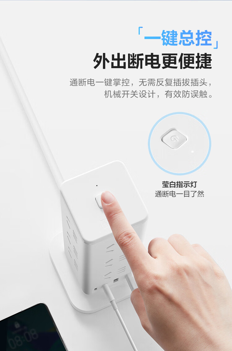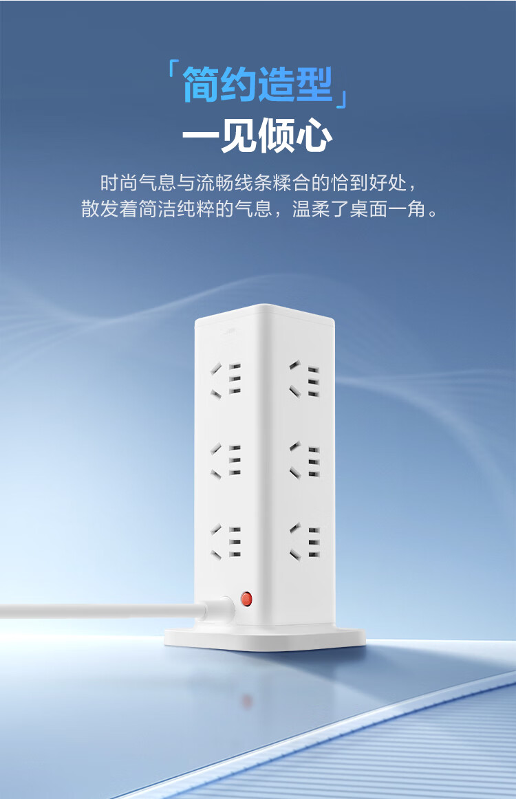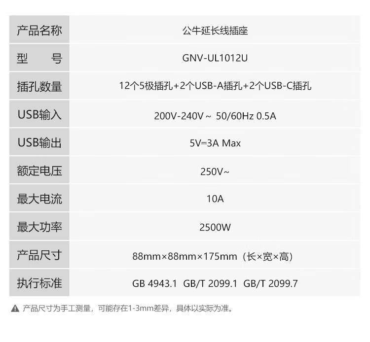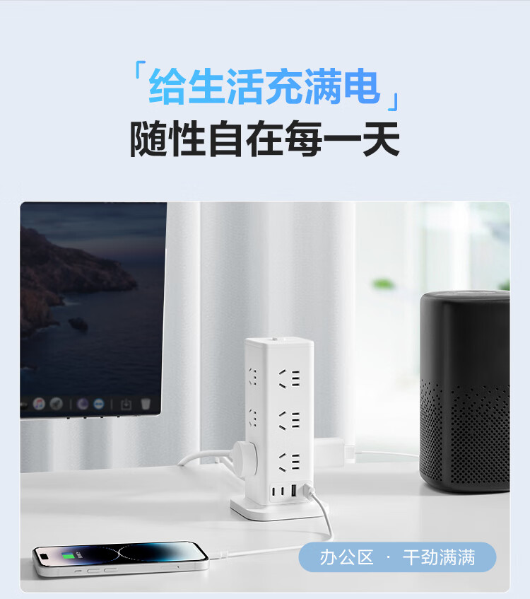 公牛(BULL)公牛立式USB过载保护插座/插线板/接线板/排插 12位总控开关+2A2C 全长1.6米 GNV-UL1012U 白色