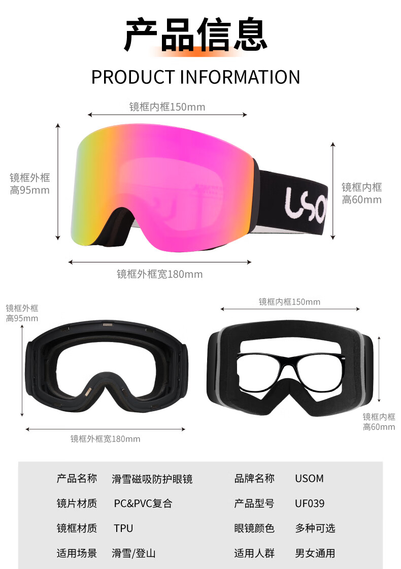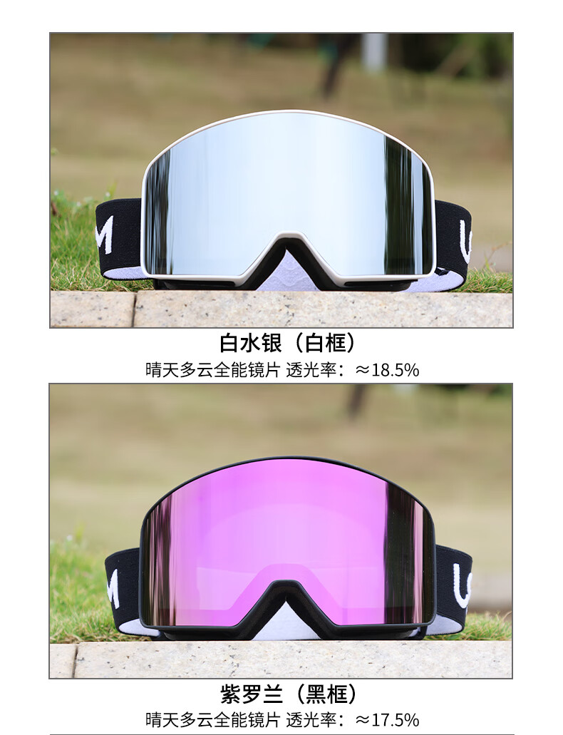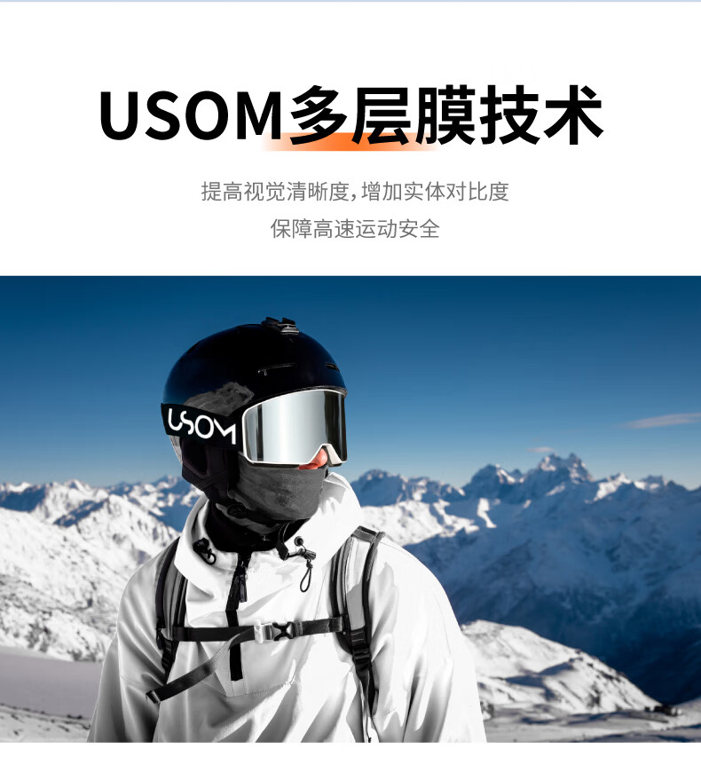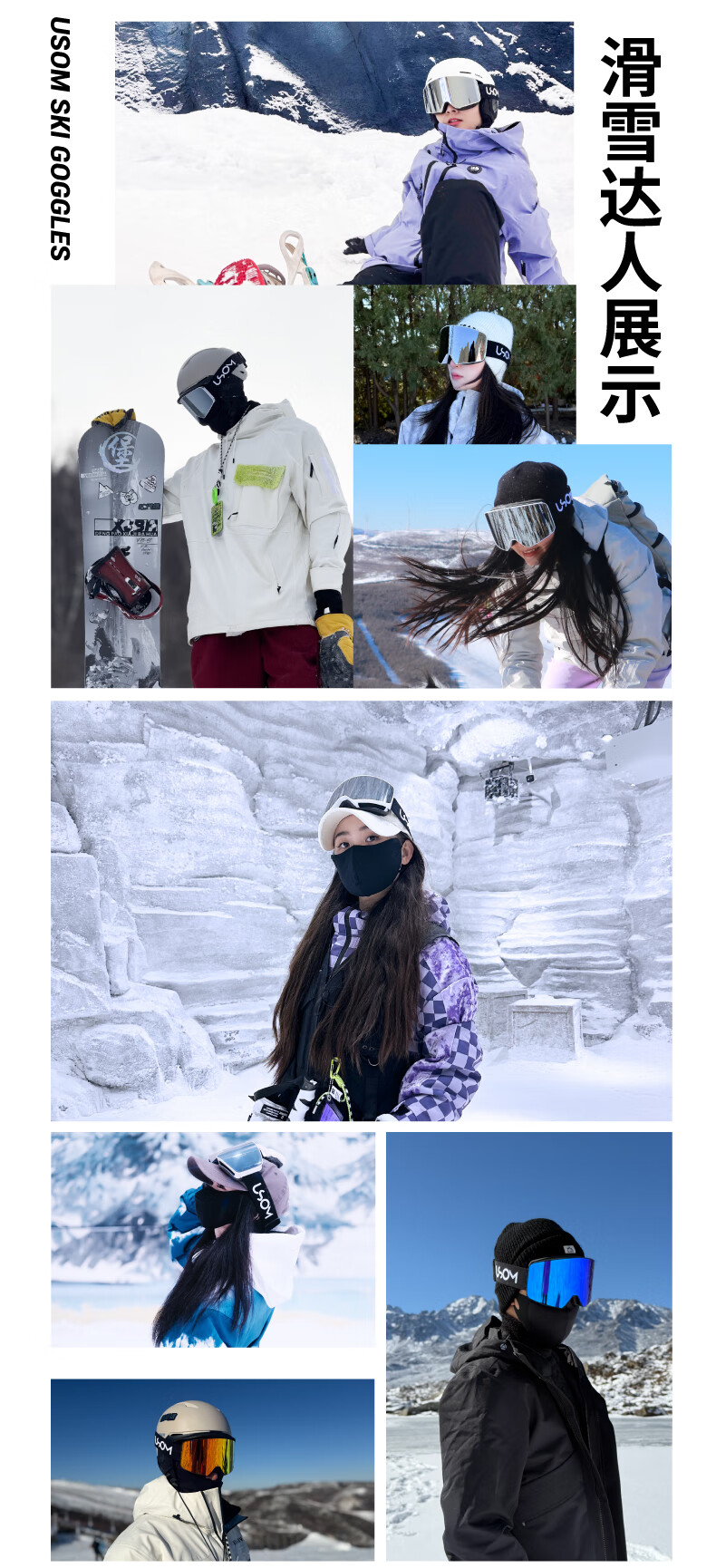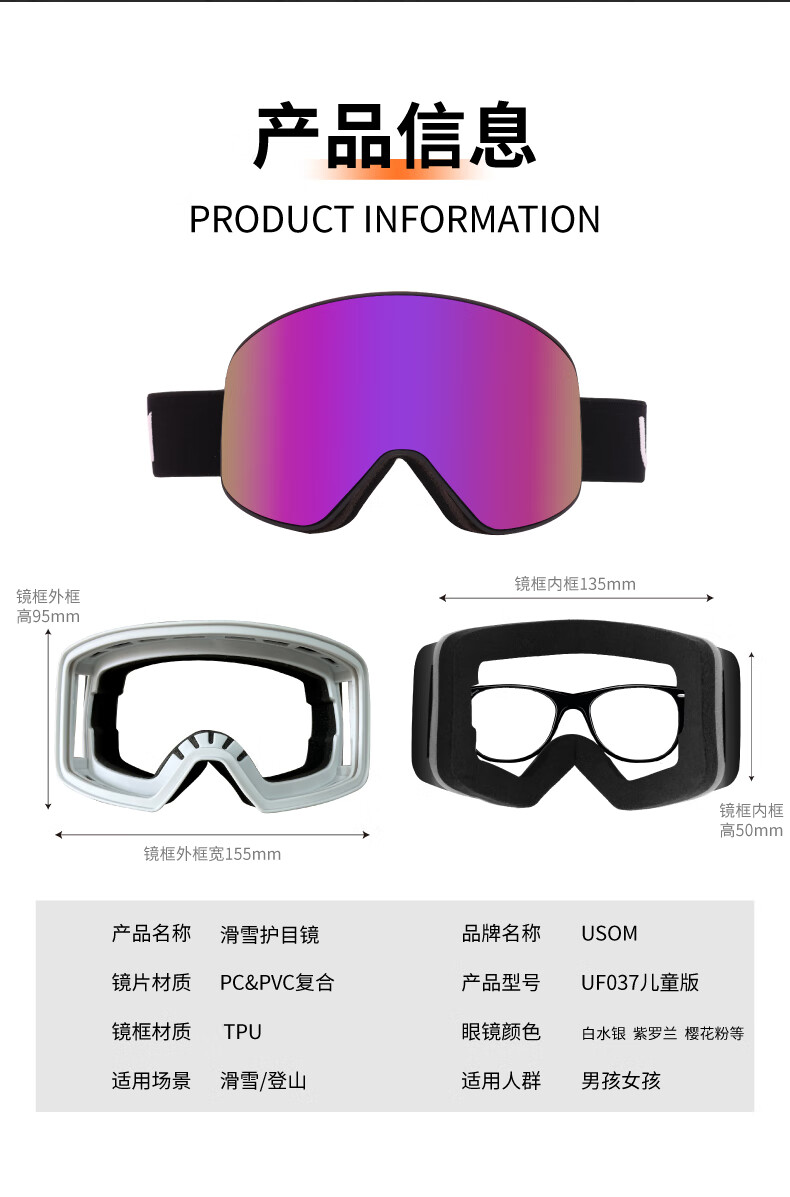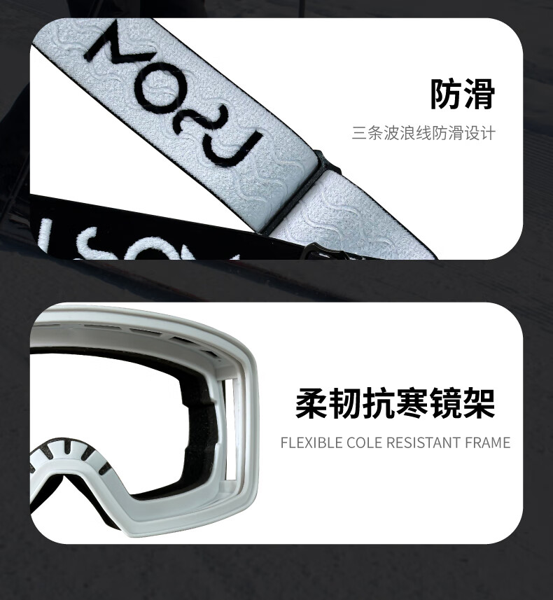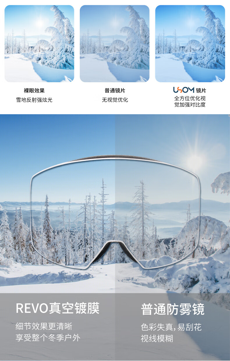 USOM滑雪镜双层防雾防紫外线 高山滑雪护目镜可卡近视 白水银
