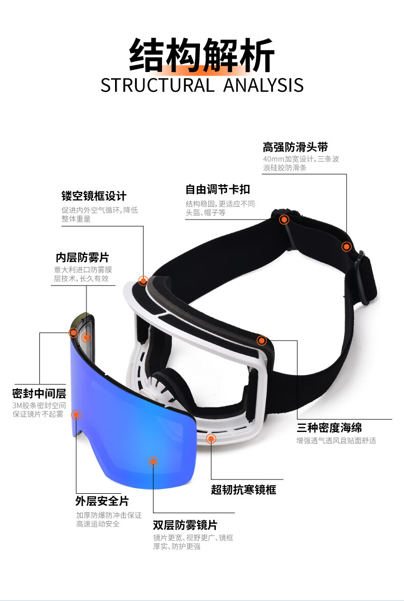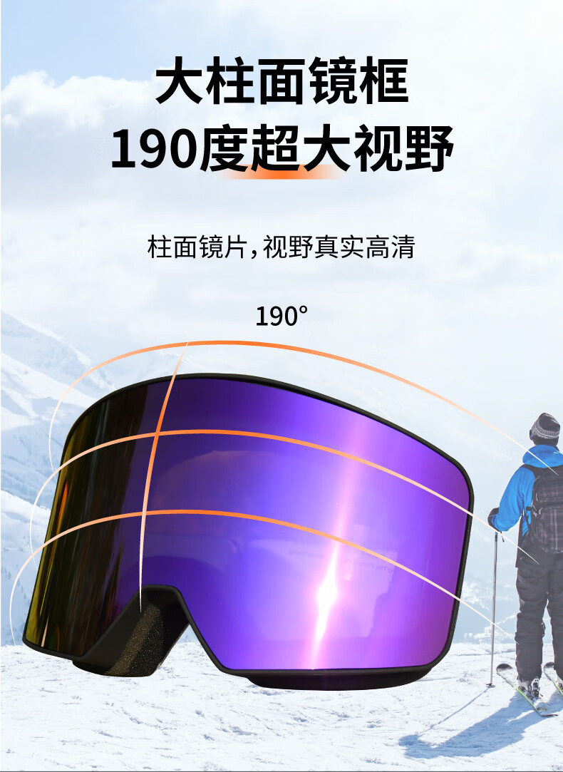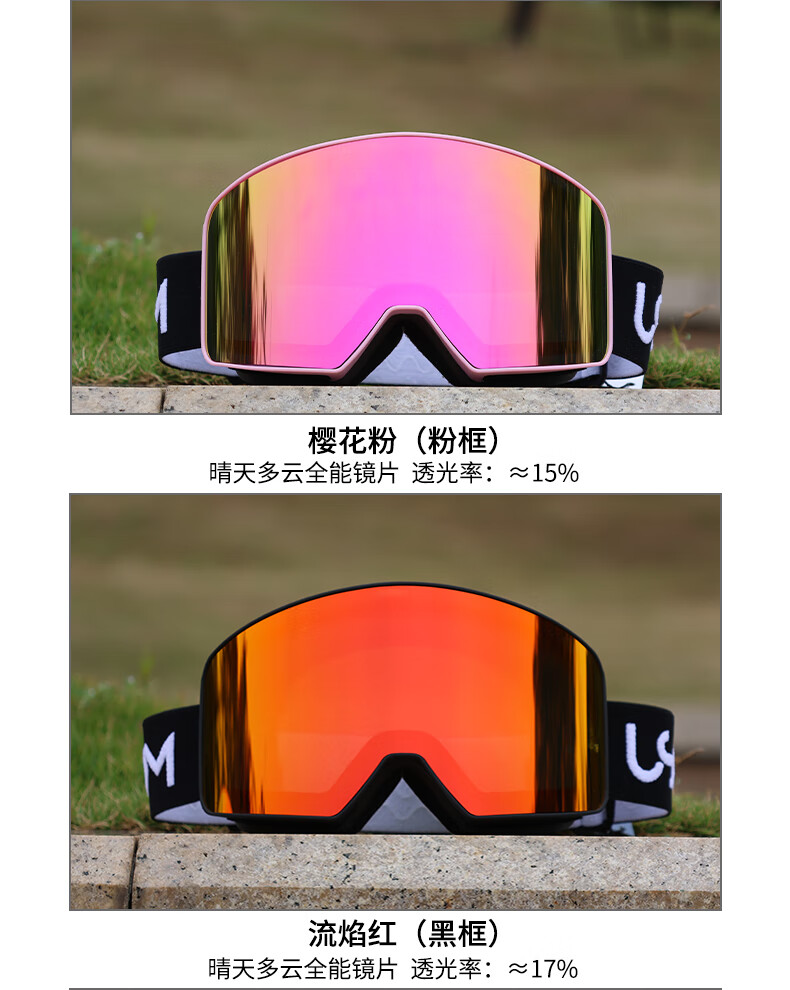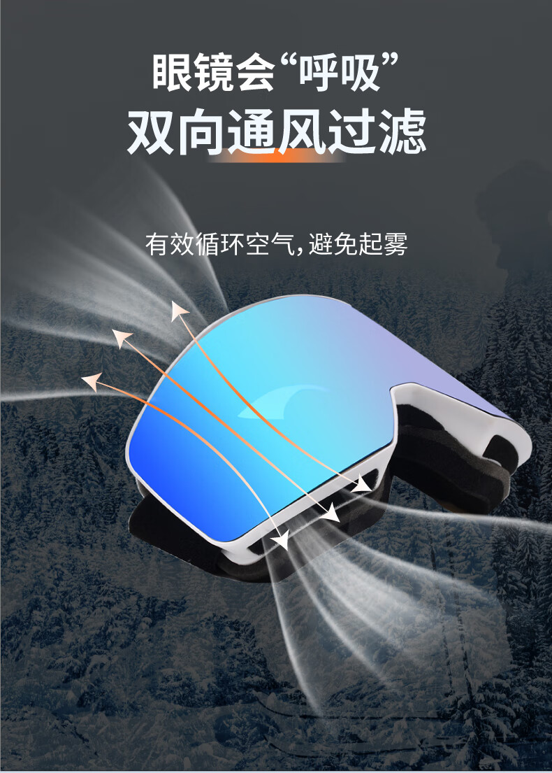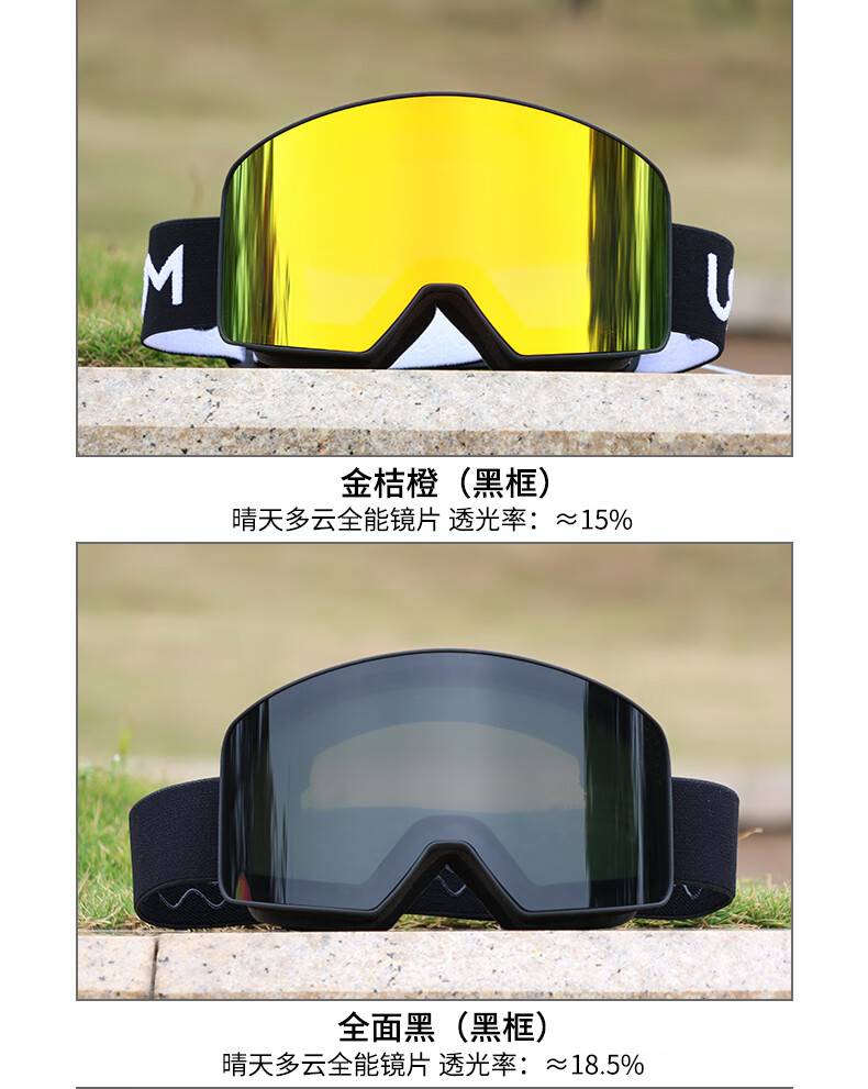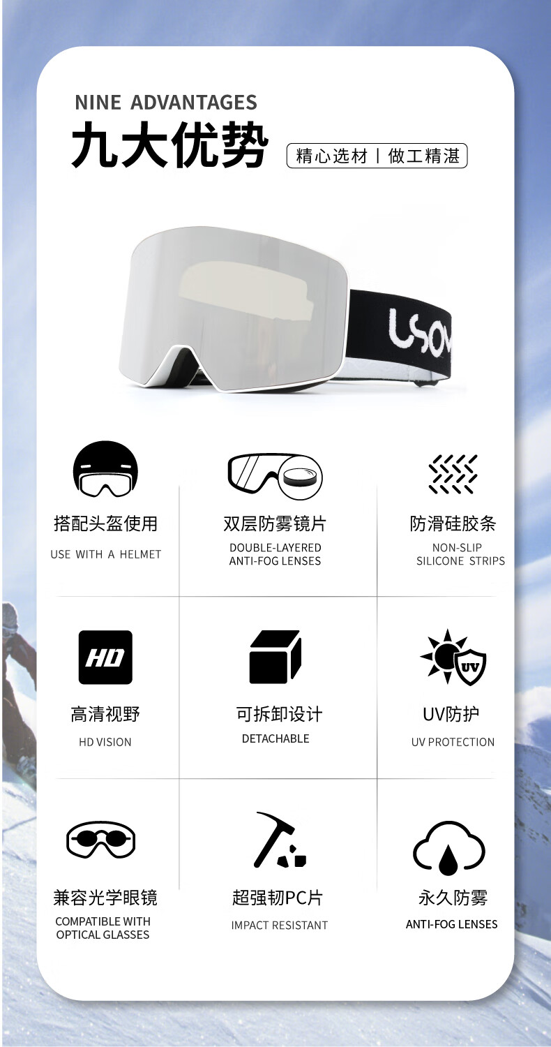 USOM滑雪镜双层防雾防紫外线 高山滑雪护目镜可卡近视 白水银