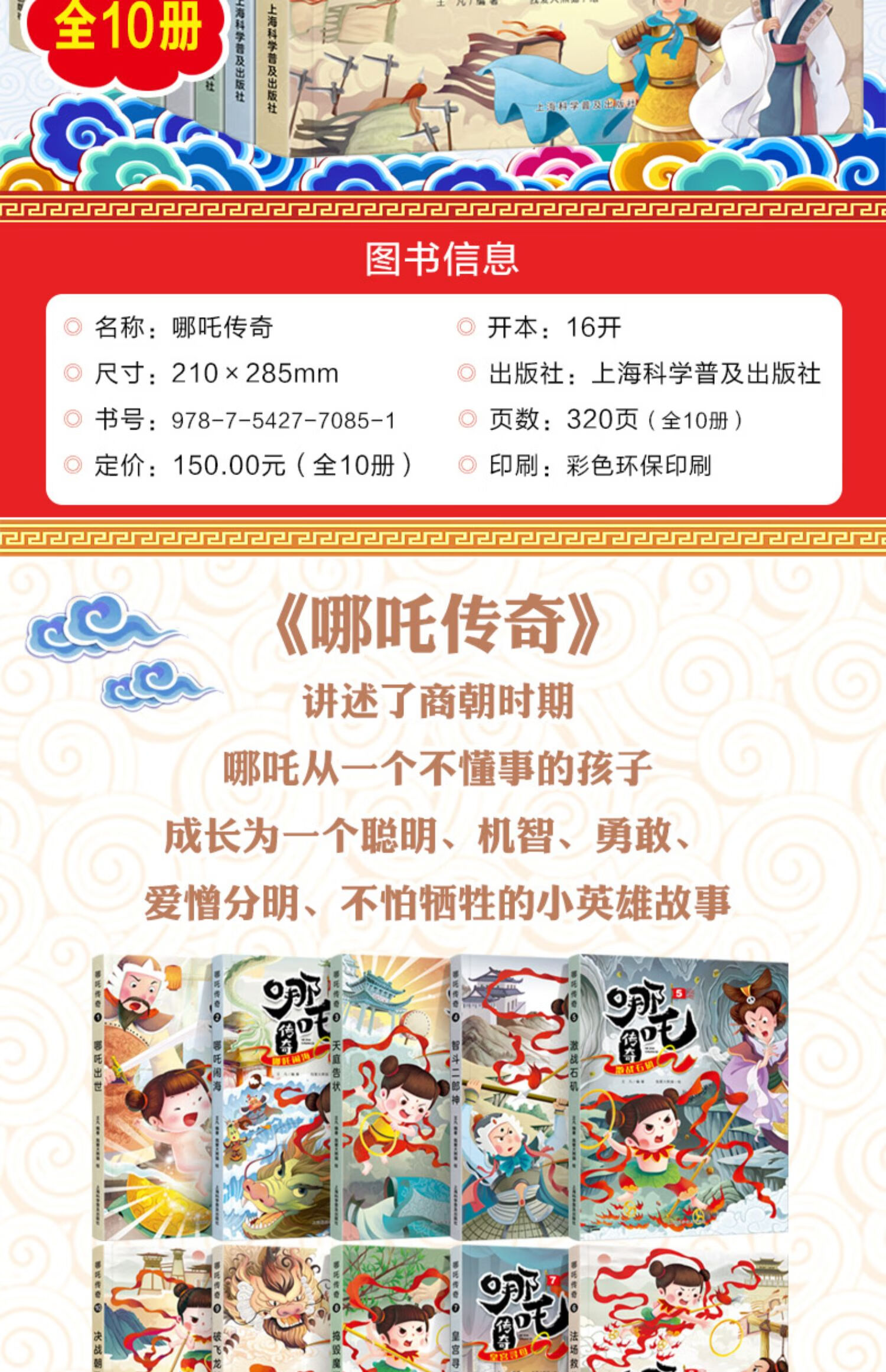 10册中国动画经典哪吒传奇故事绘本书一年级课外书二三年级读物儿童书籍7-10岁儿童绘本故事书 哪咤传奇故事绘本书【10册】 无规格