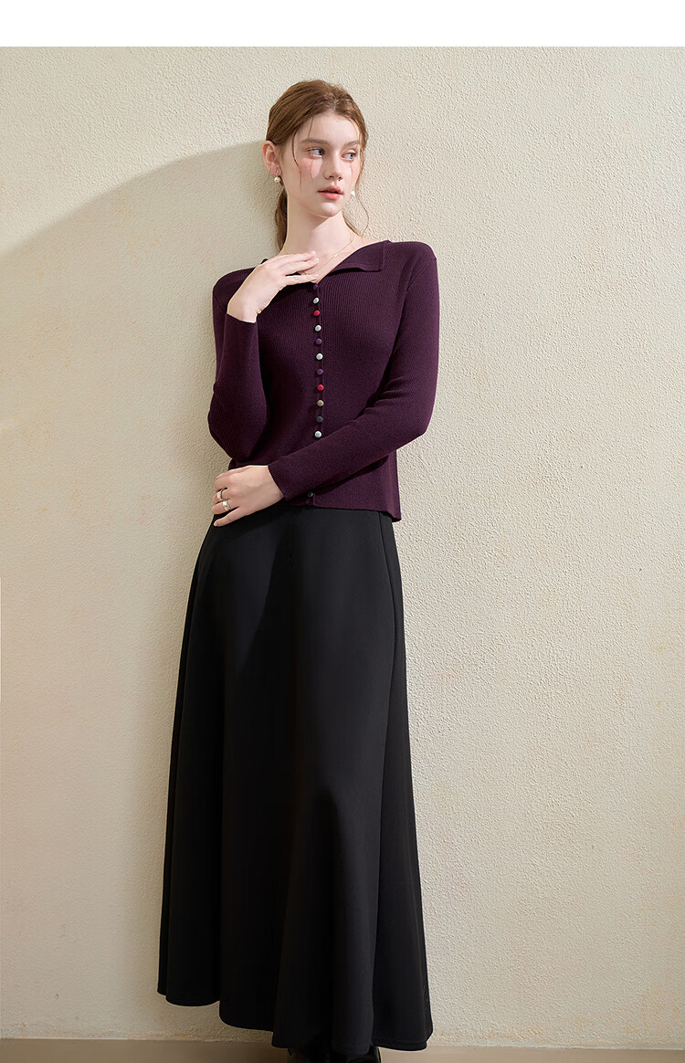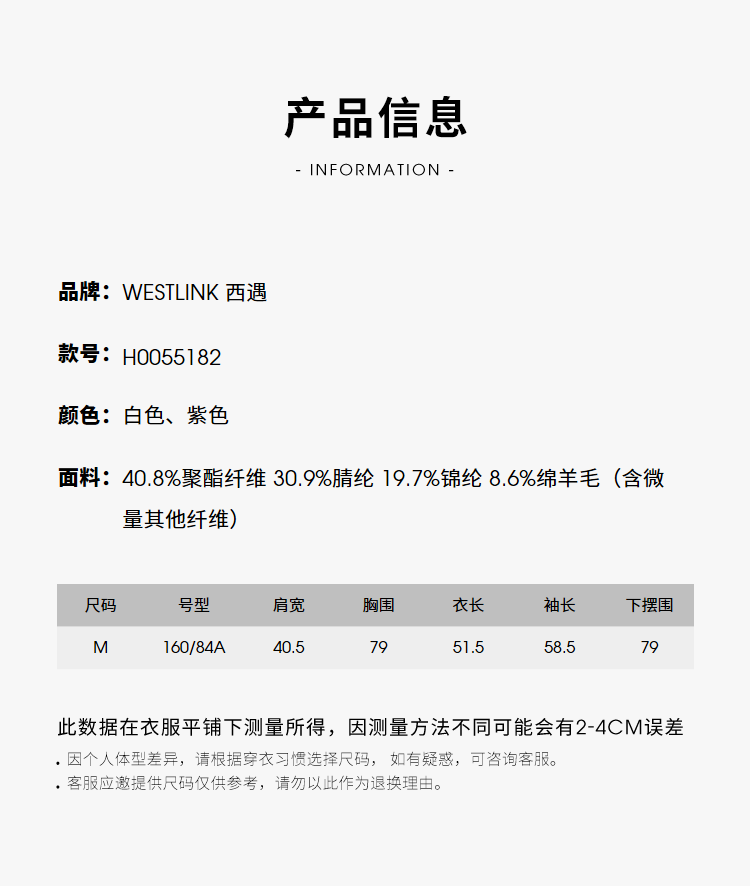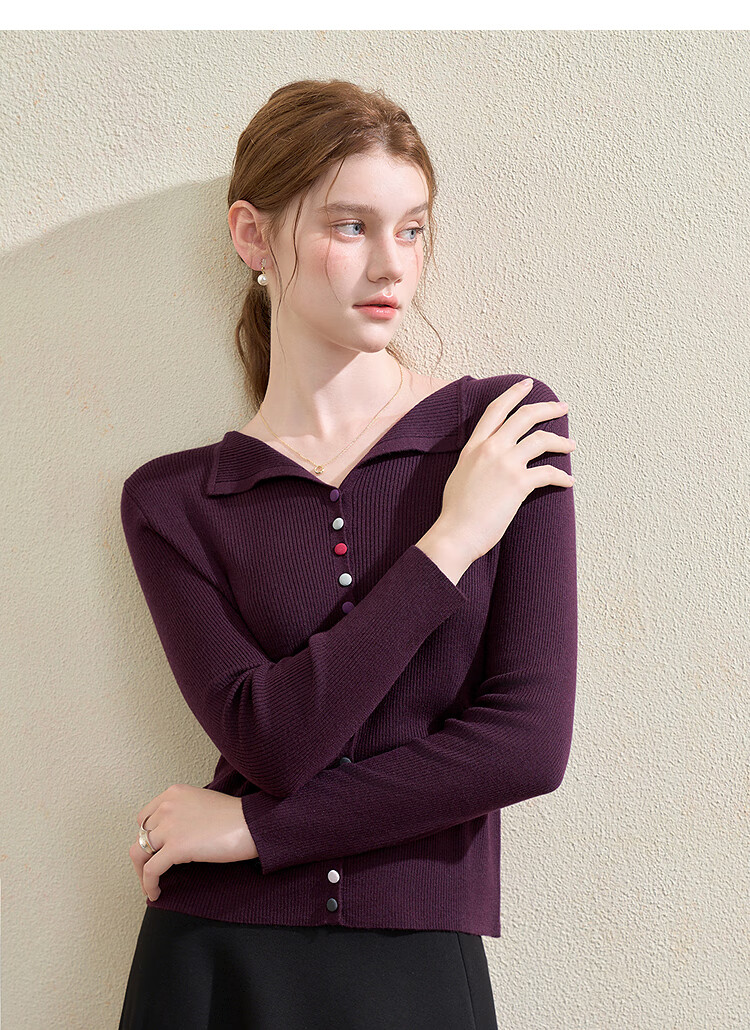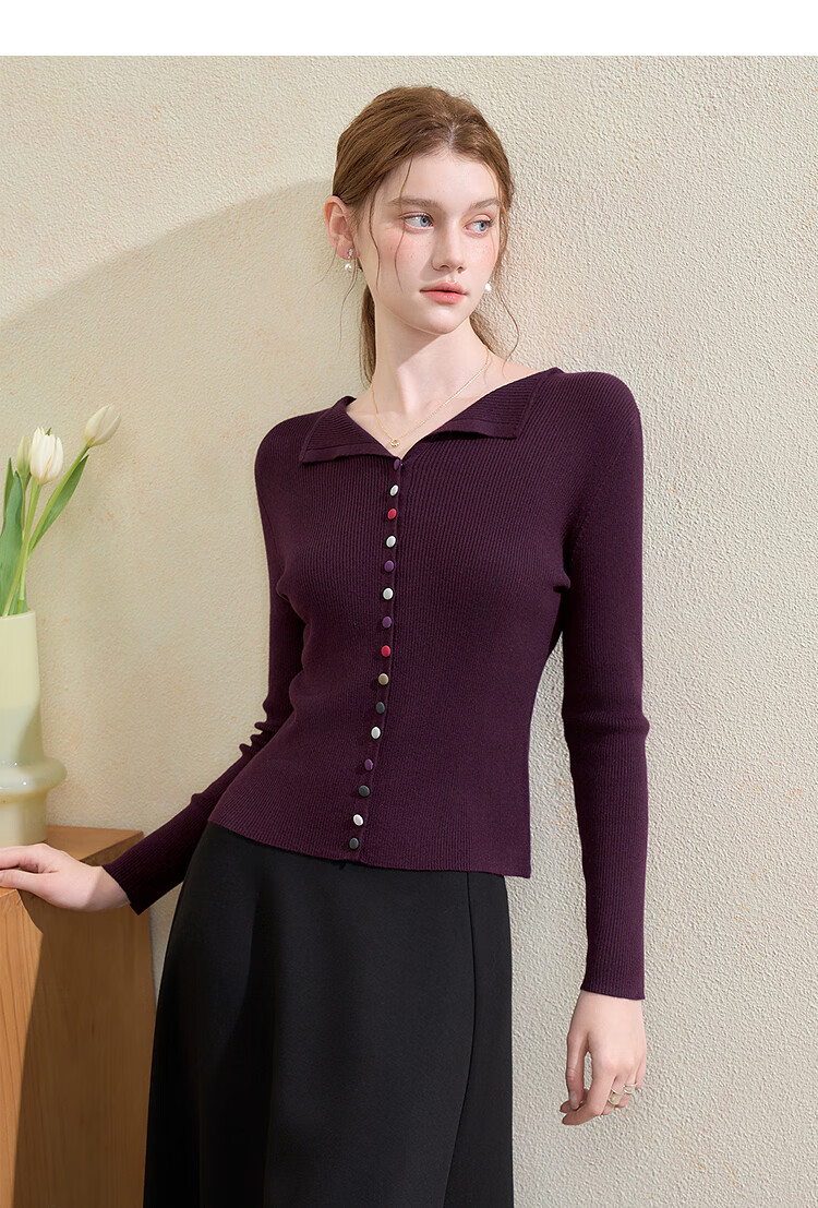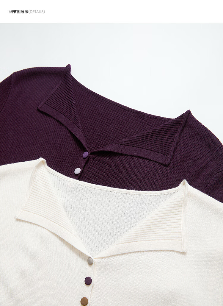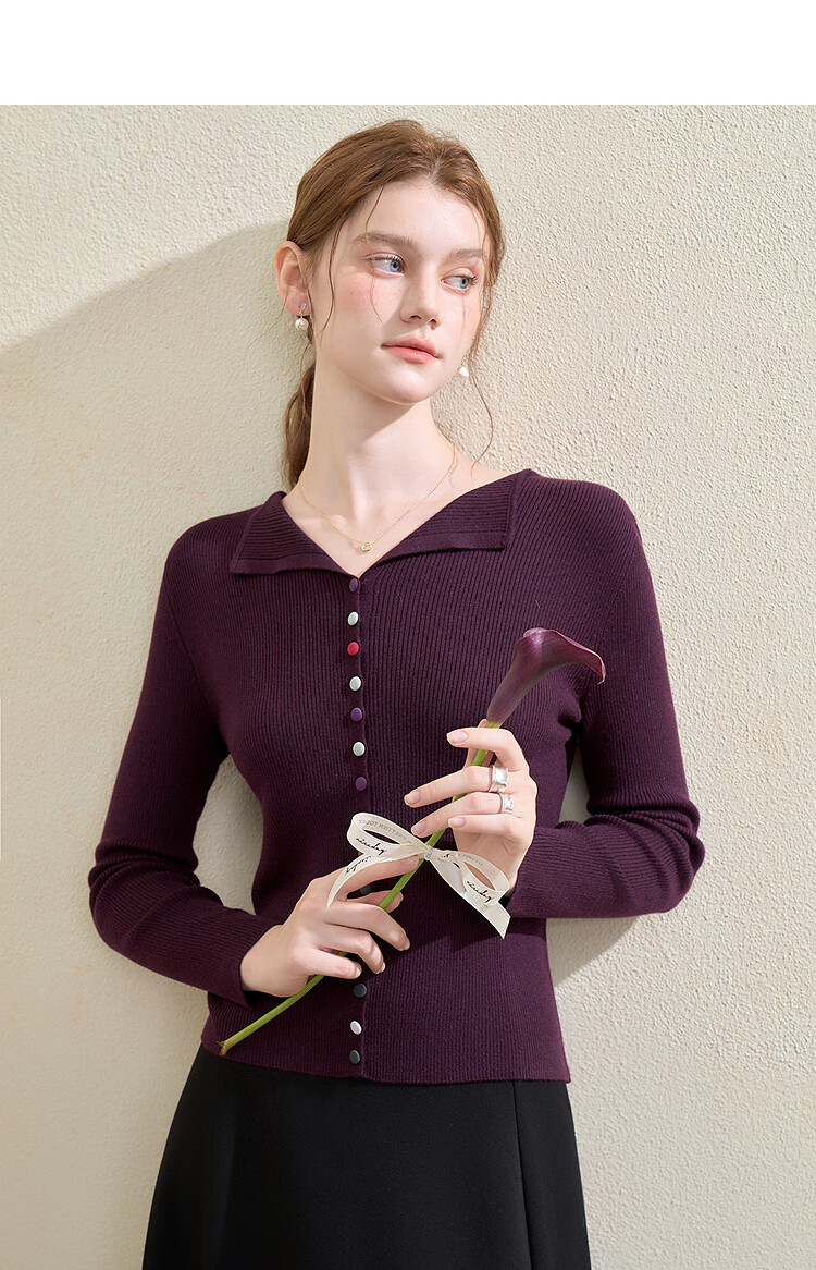 西遇(Westlink)西遇彩色纽扣长袖针织衫女2025秋季新款温柔翻领软糯打底衫上衣 白色 M (160)