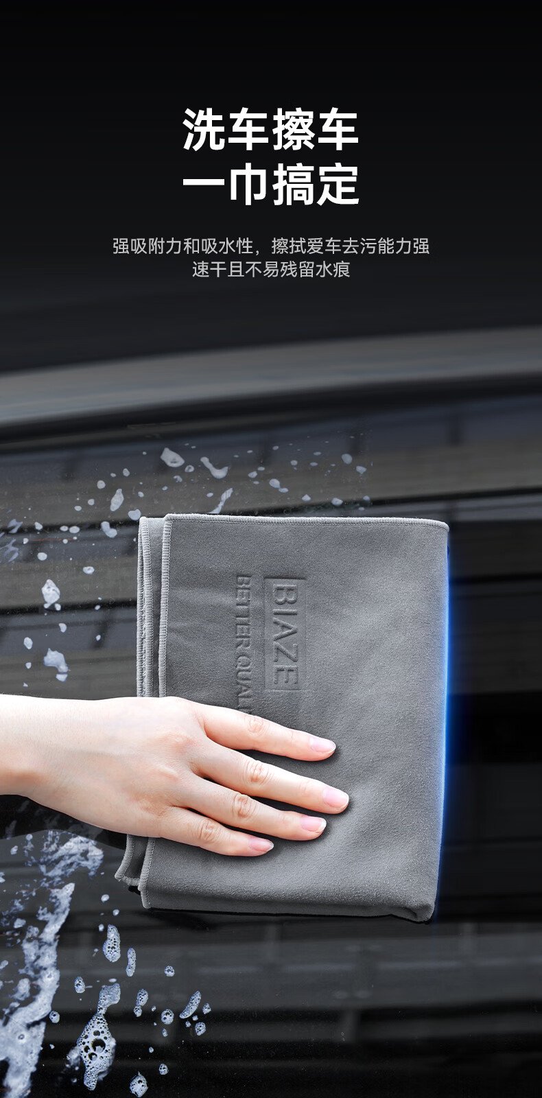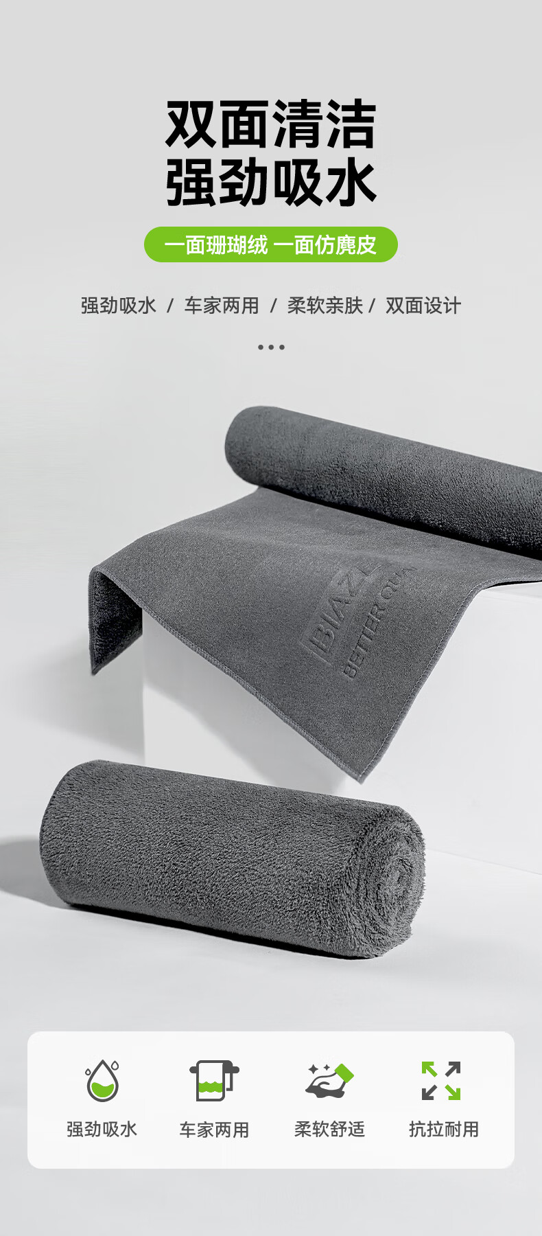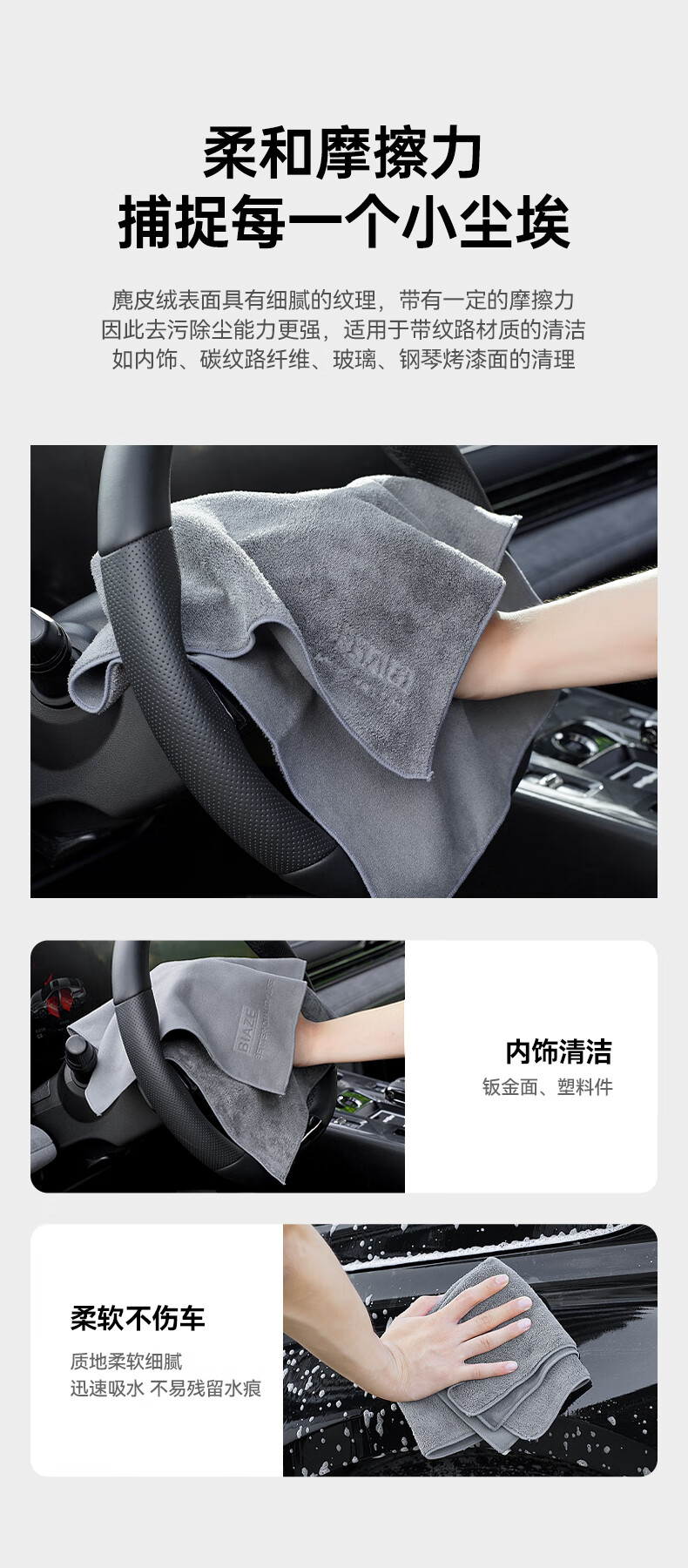 毕亚兹洗车毛巾擦车巾抹布专用车用毛巾麂皮绒加厚吸水无痕适用小米洗车