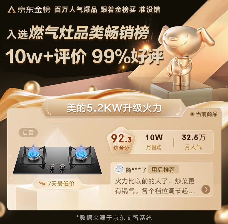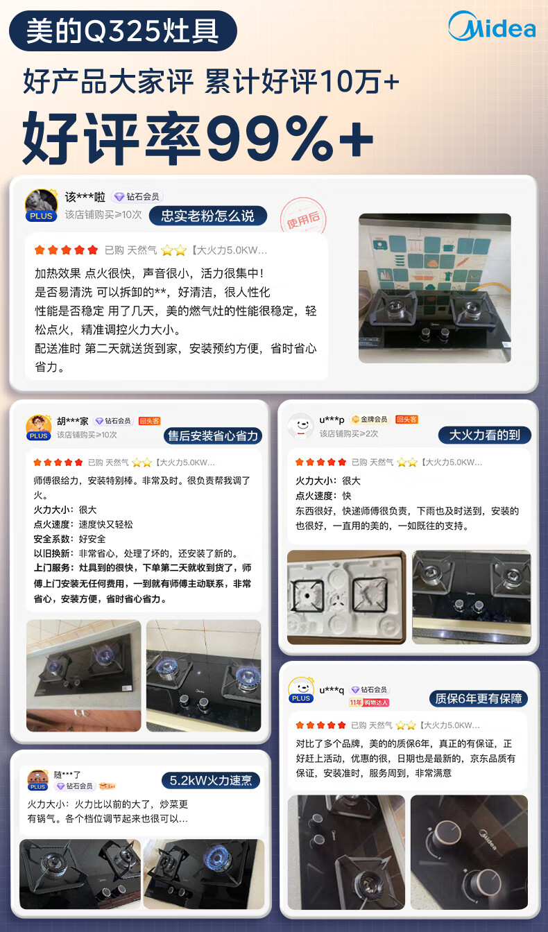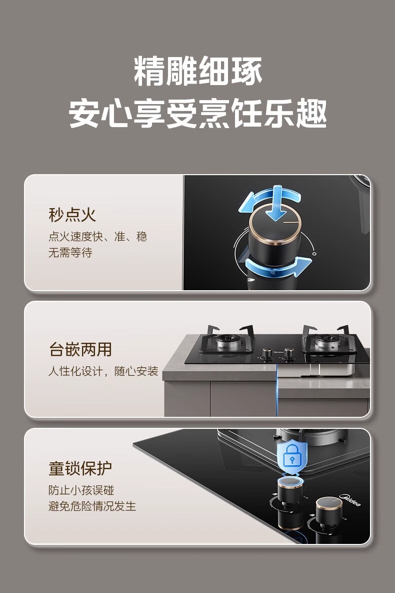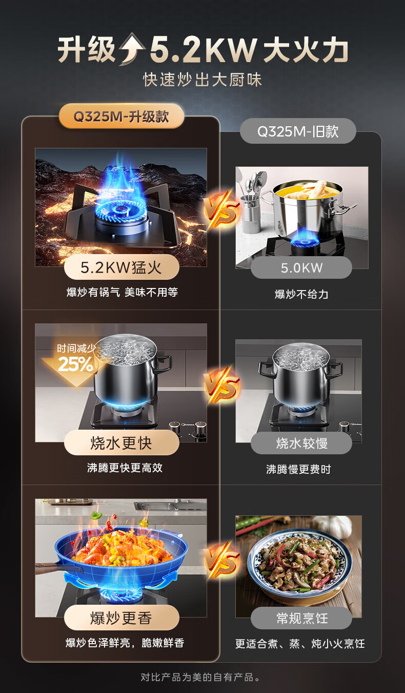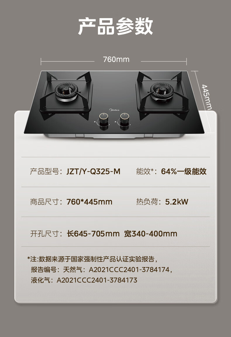 美的(Midea)【国家补贴立减20%】燃气灶天然气 家用5.2kW猛火灶台嵌两用 64%热效率 可调节底盘 Q325-M 升级