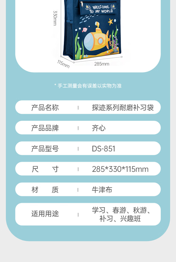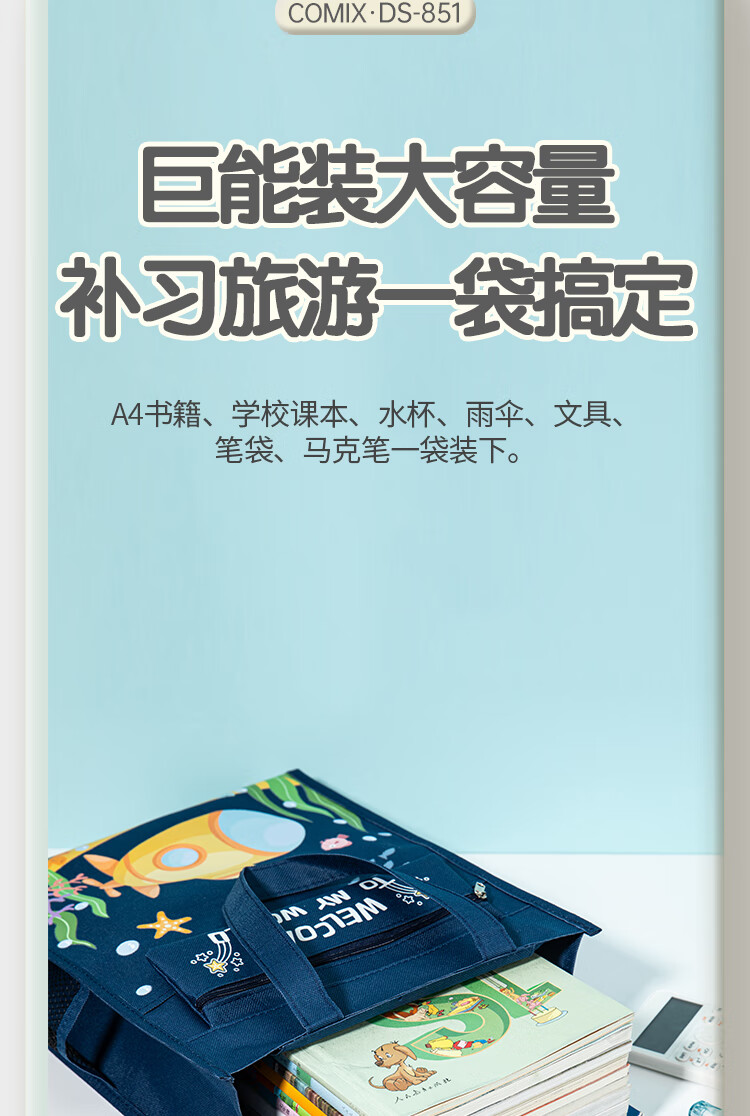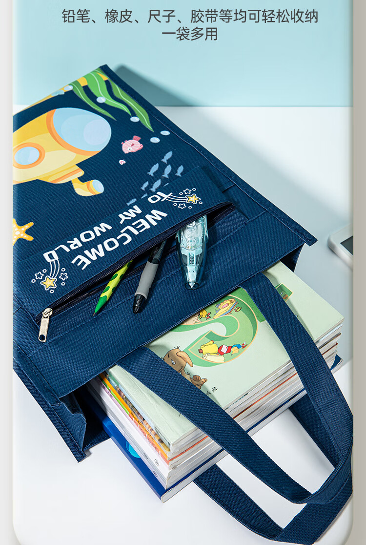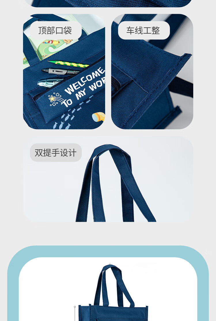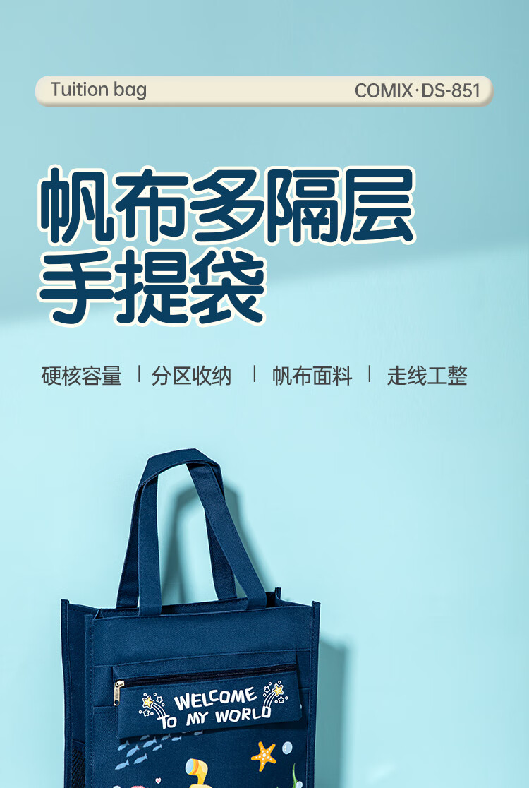 齐心(COMIX)学生补习袋 探迹系列耐磨多功能手提袋拎书带 儿童课外美术补课书包 蓝色男女孩礼物DS-851蓝