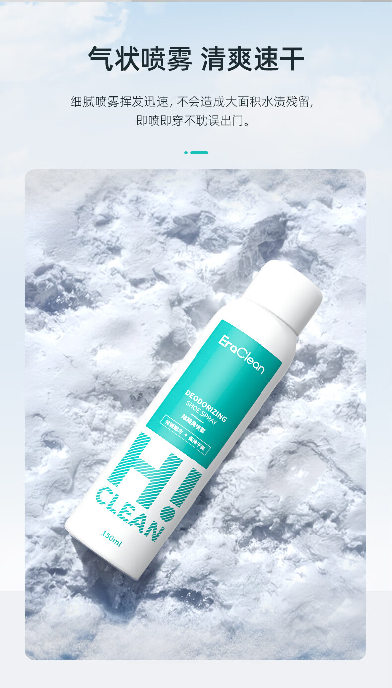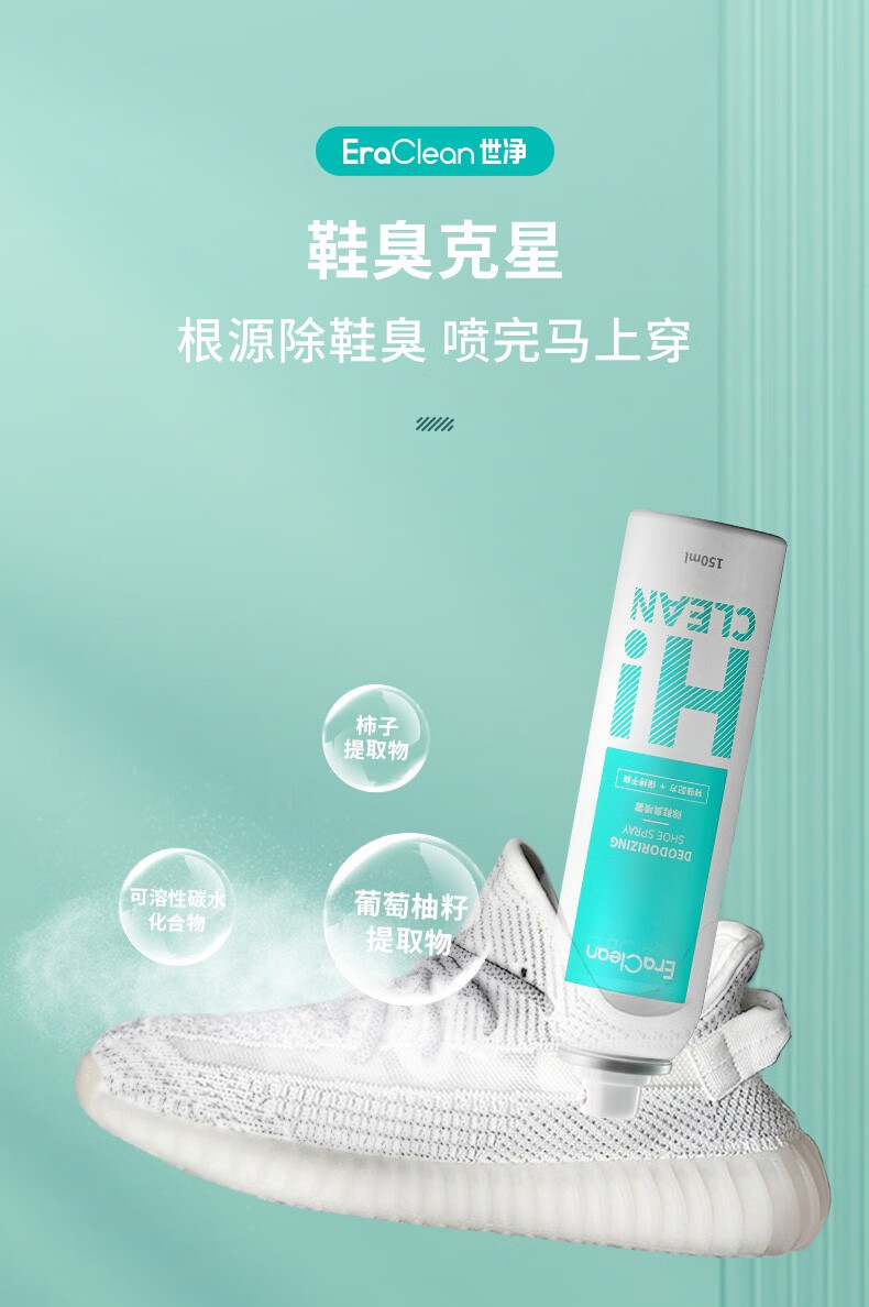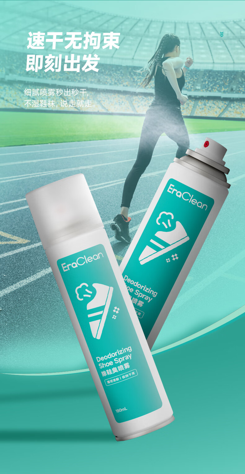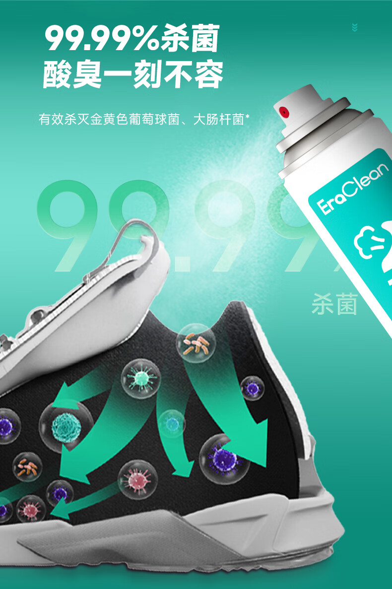 EraClean鞋子除臭杀菌喷雾银离子杀菌除臭喷雾鞋子除味剂杀菌抗菌 【两瓶装】小白鞋清洗剂