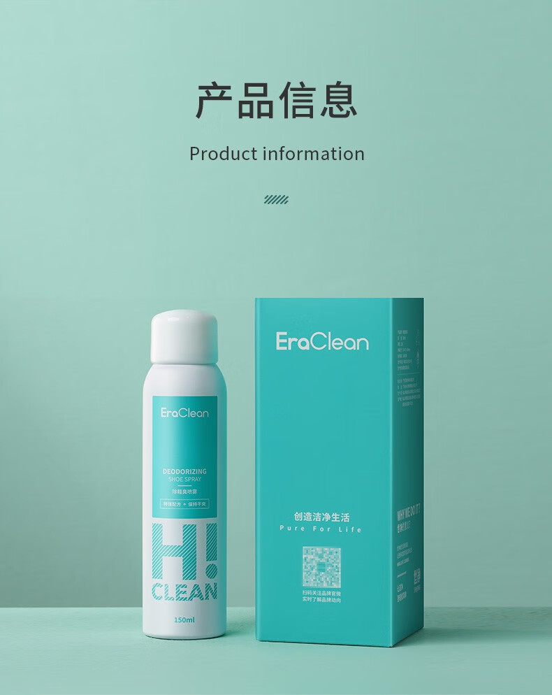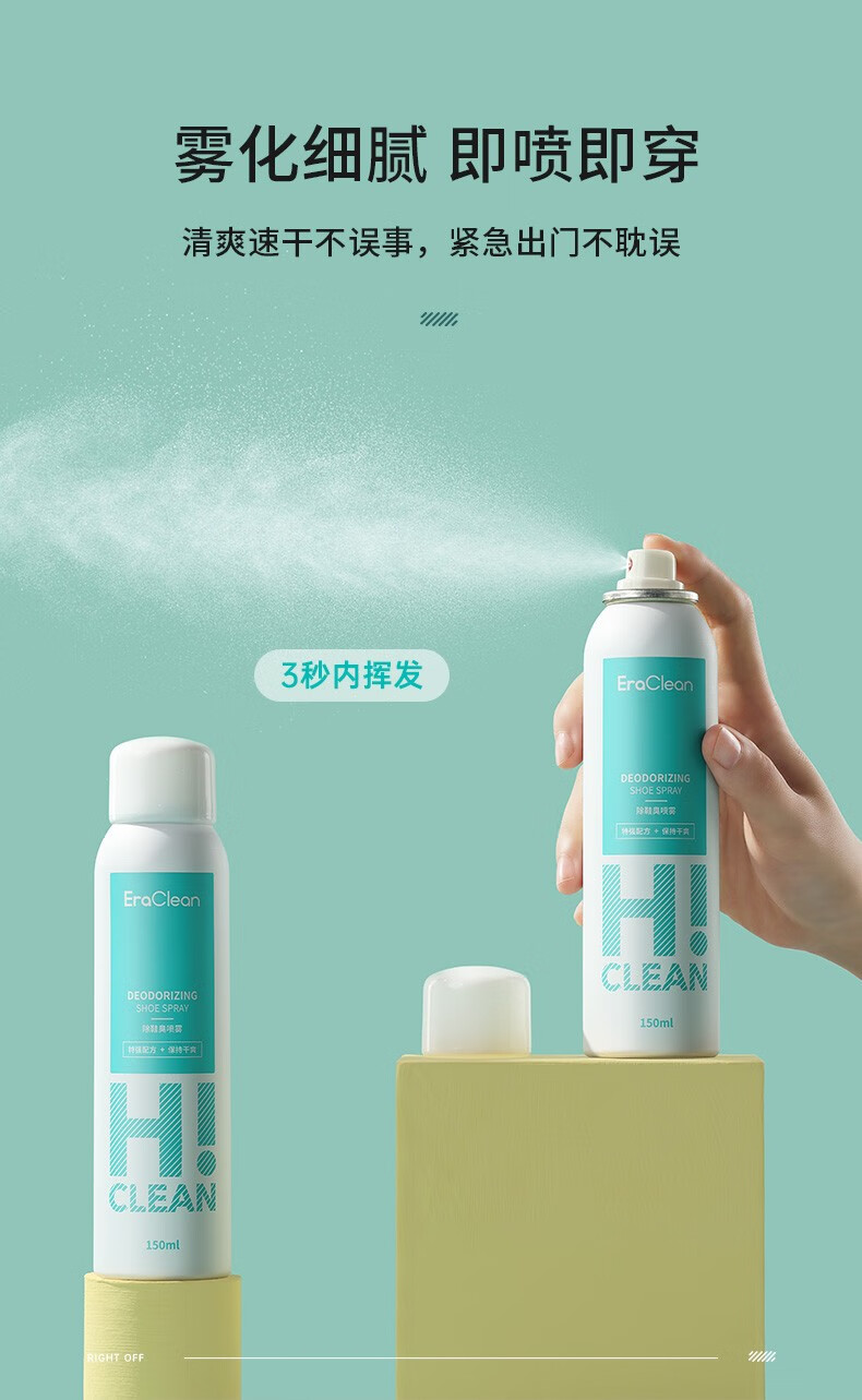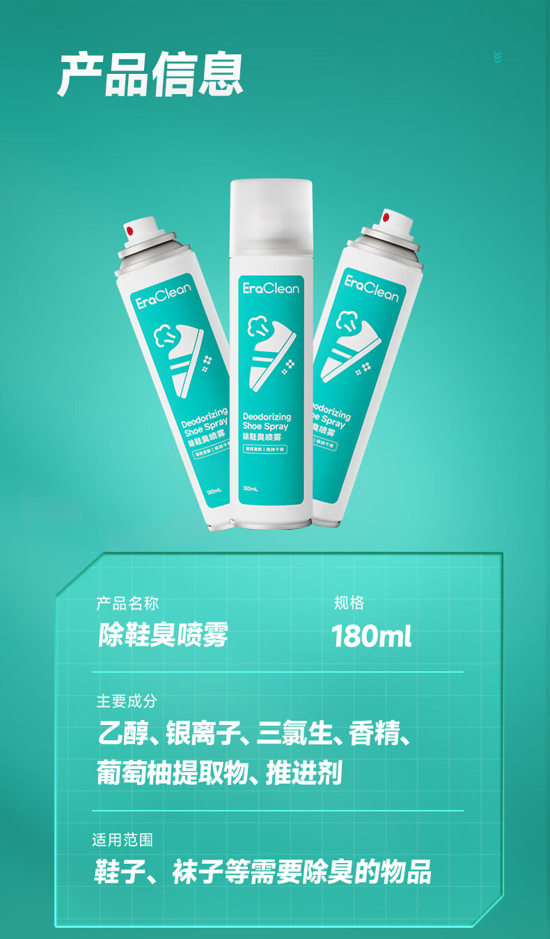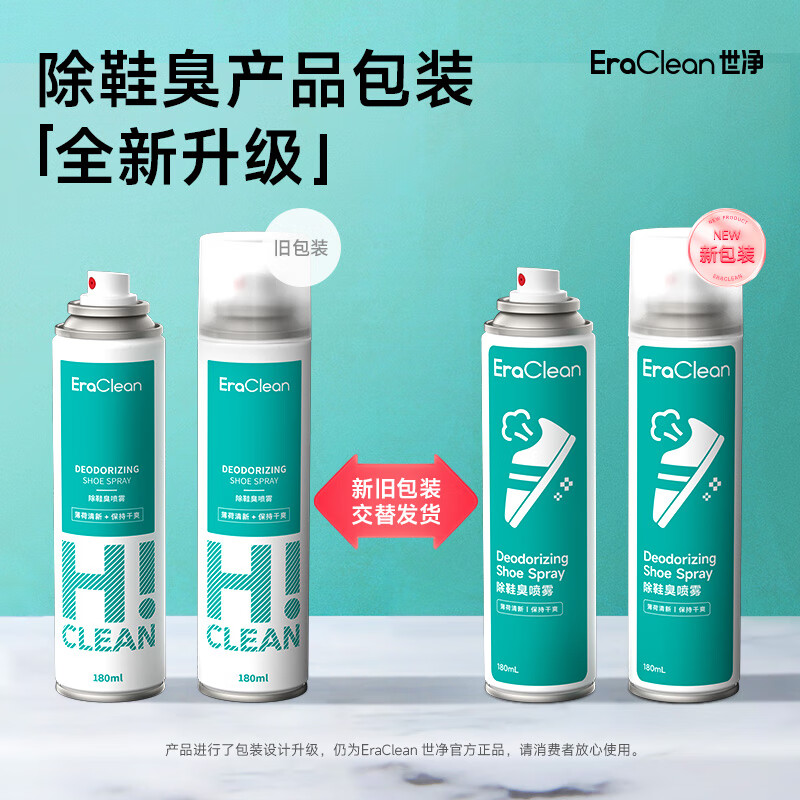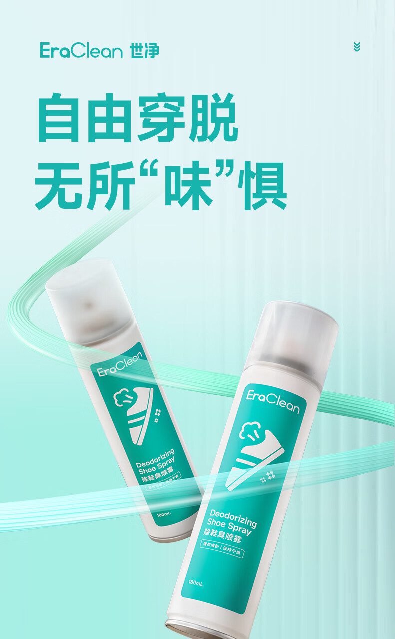 EraClean鞋子除臭杀菌喷雾银离子杀菌除臭喷雾鞋子除味剂杀菌抗菌 【两瓶装】小白鞋清洗剂