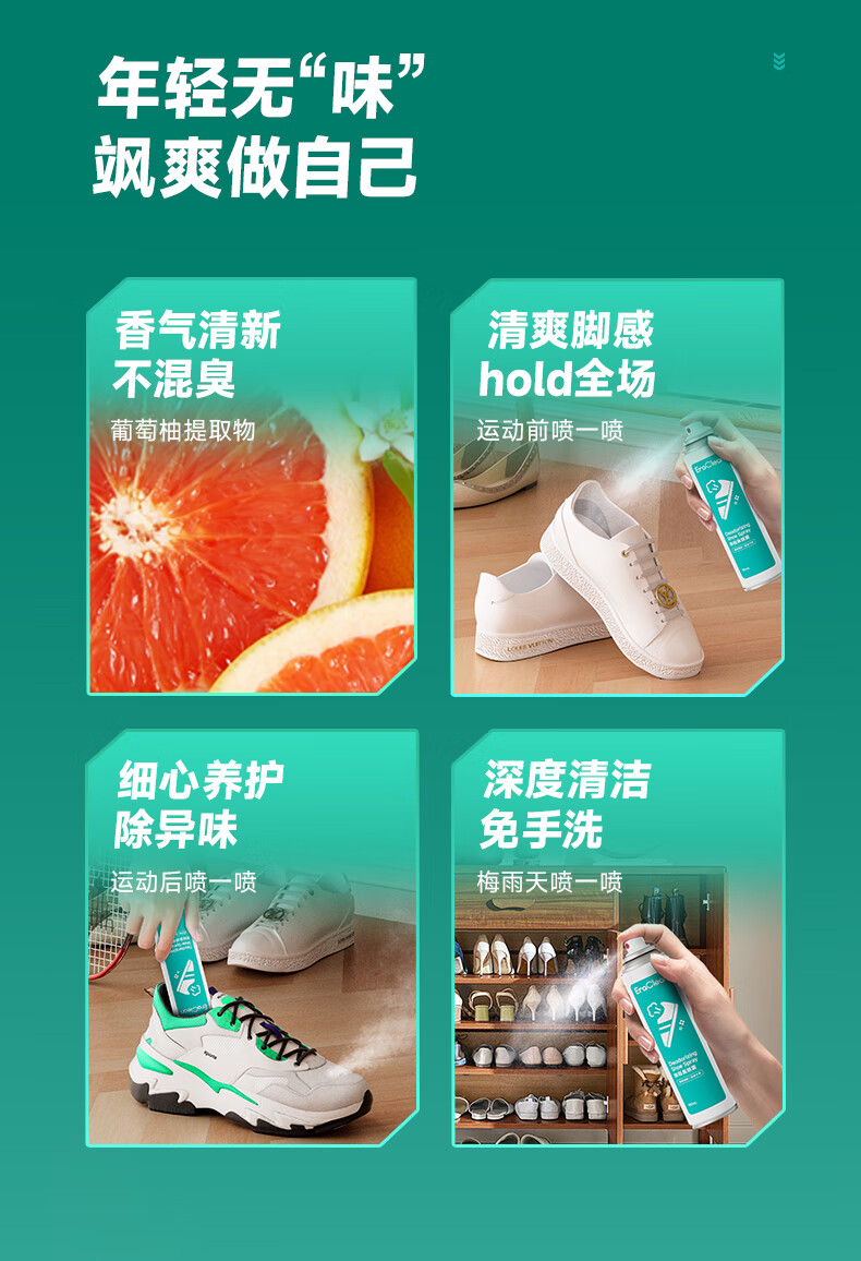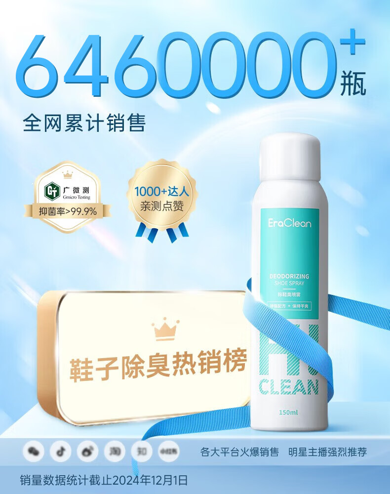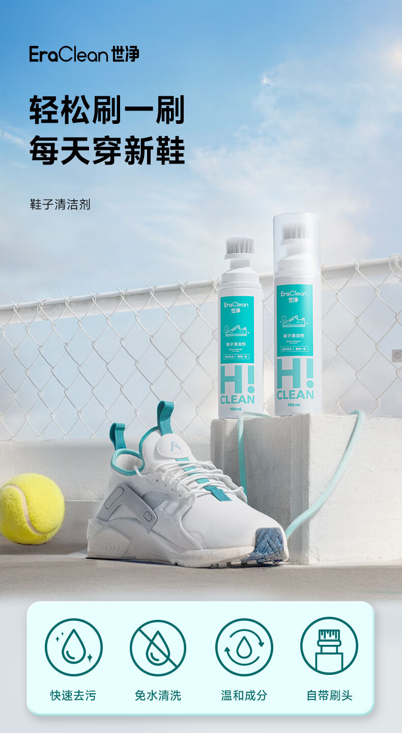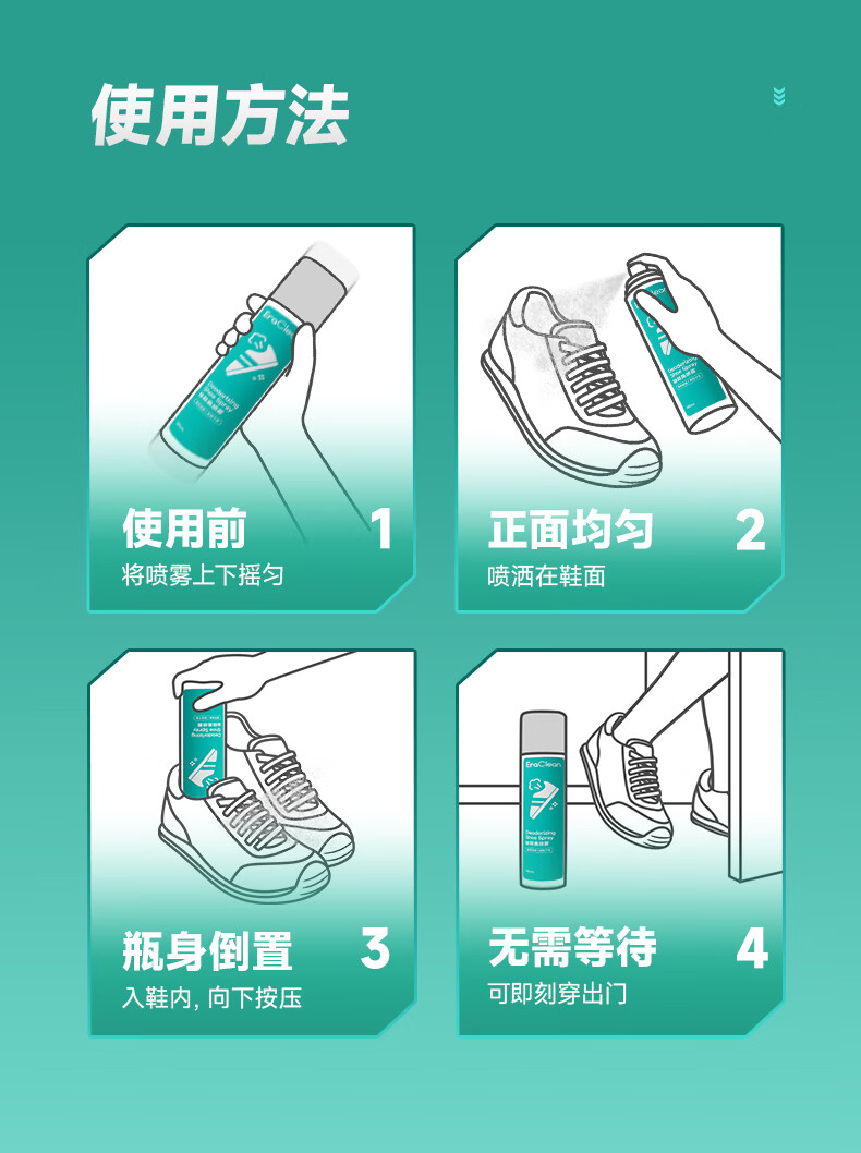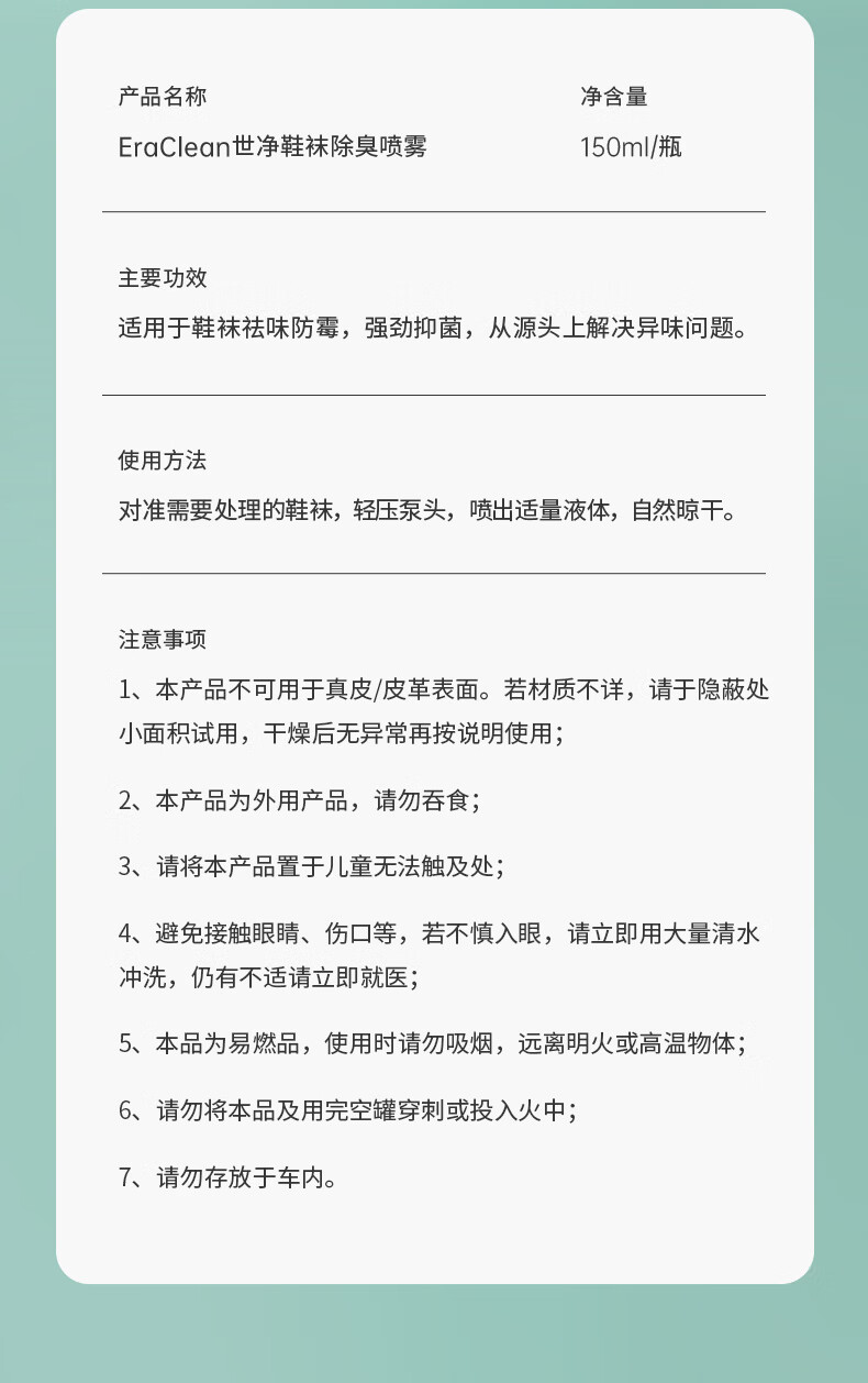 EraClean鞋子除臭杀菌喷雾银离子杀菌除臭喷雾鞋子除味剂杀菌抗菌 【两瓶装】小白鞋清洗剂