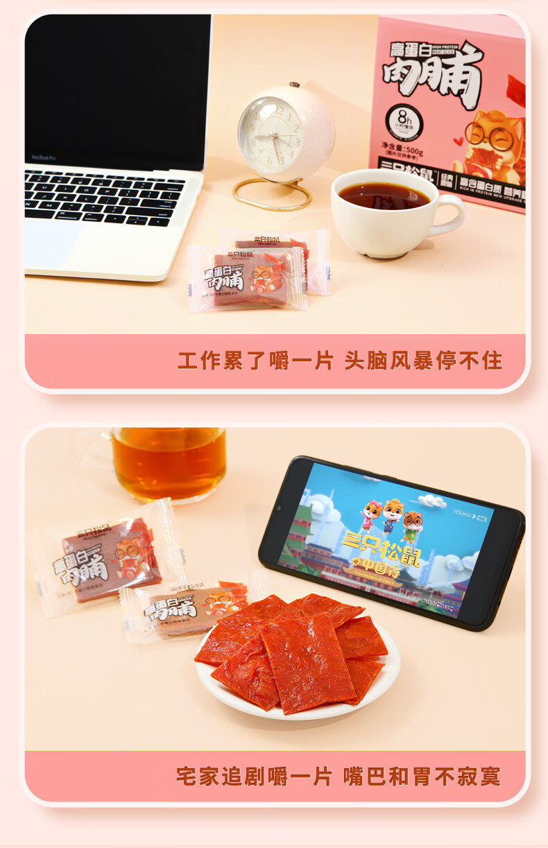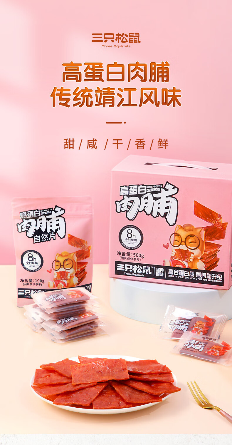 三只松鼠高蛋白肉脯100g袋装休闲零食肉干肉脯鸡猪肉特产小吃靖江风味肉脯