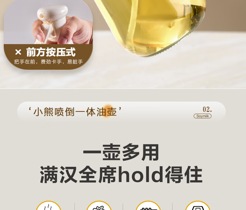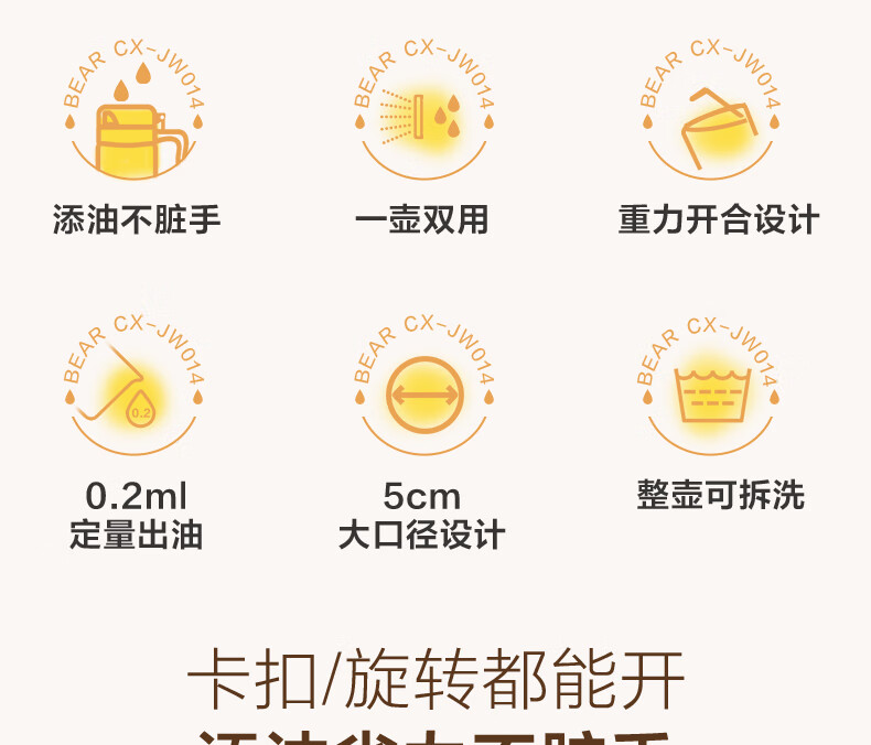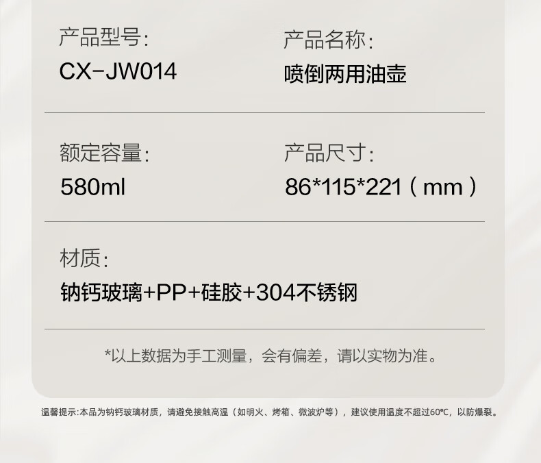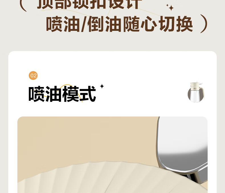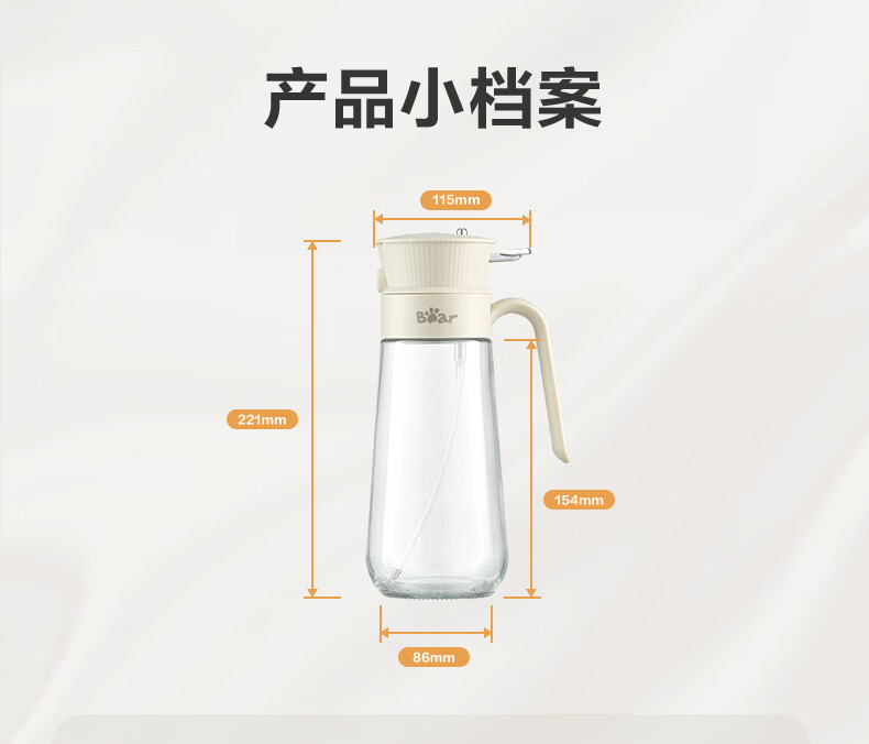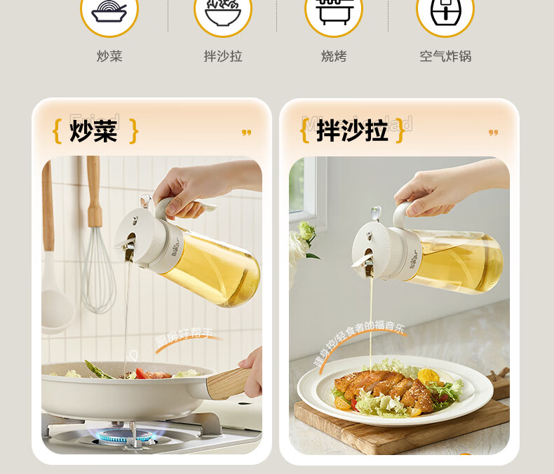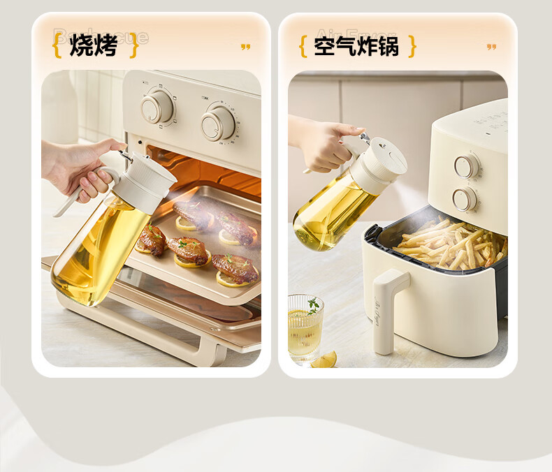 小熊(Bear)油壶喷雾倒油喷油一体 厨房喷油壶雾化 调料瓶玻璃酱油瓶 580mL