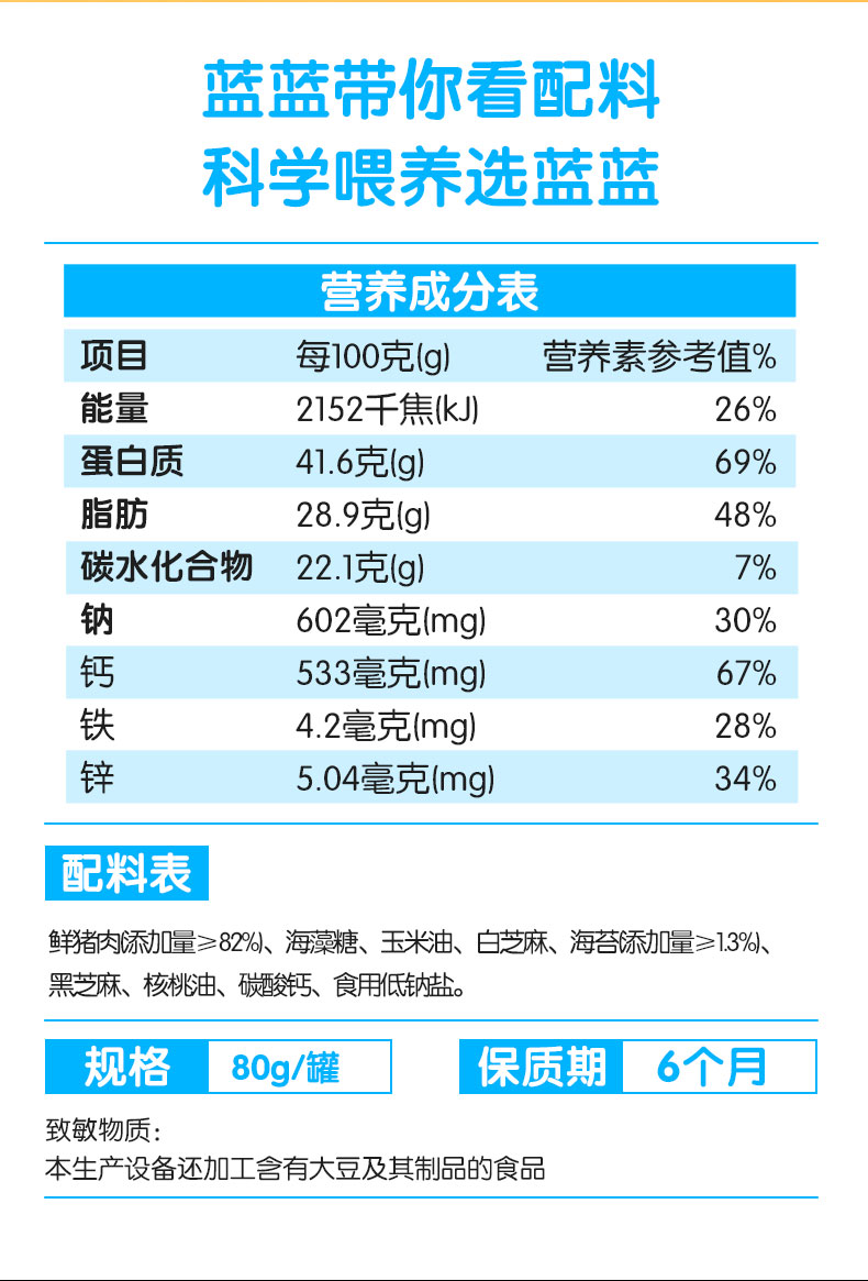 小鹿蓝蓝宝宝肉松海苔80g儿童零食儿童肉松拌饭拌面料鲜猪肉调味佐餐