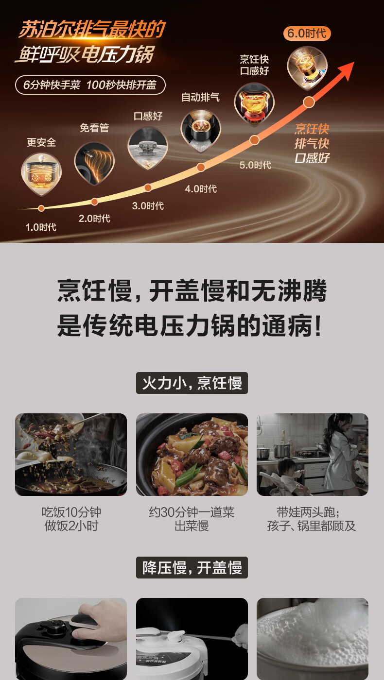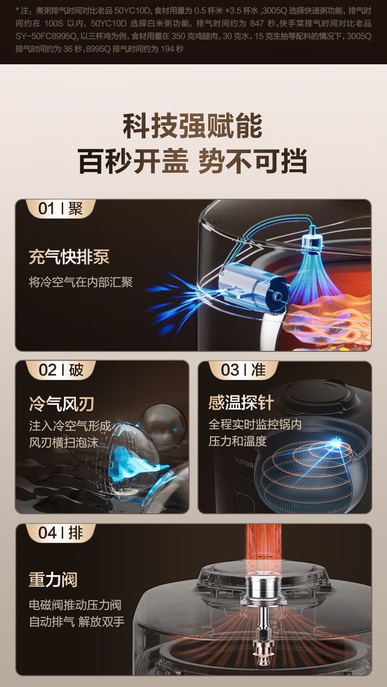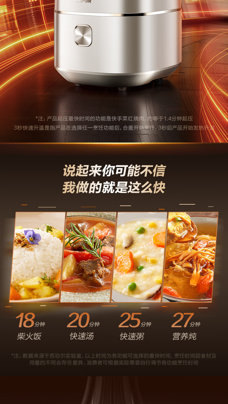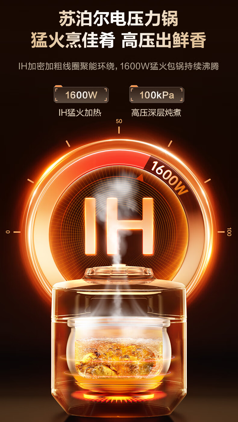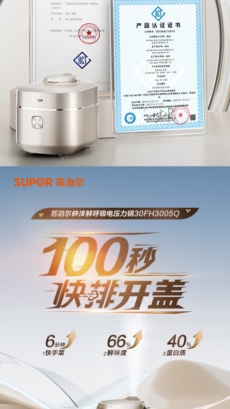 苏泊尔(SUPOR)快排100系列电压力锅3L 鲜呼吸IH猛火 精钢316L球釜内胆2-4人家用高压锅SY-30FH3005Q