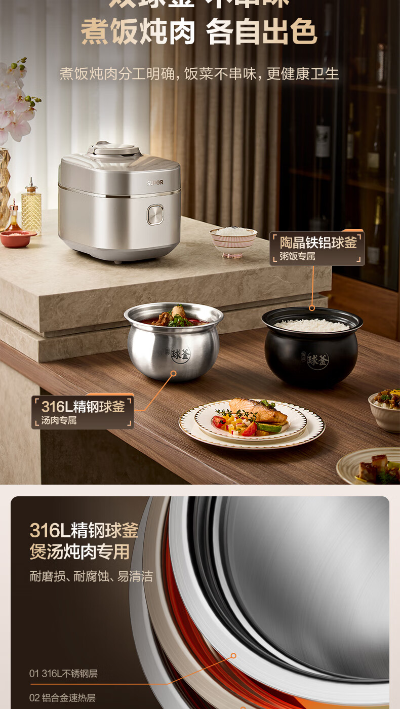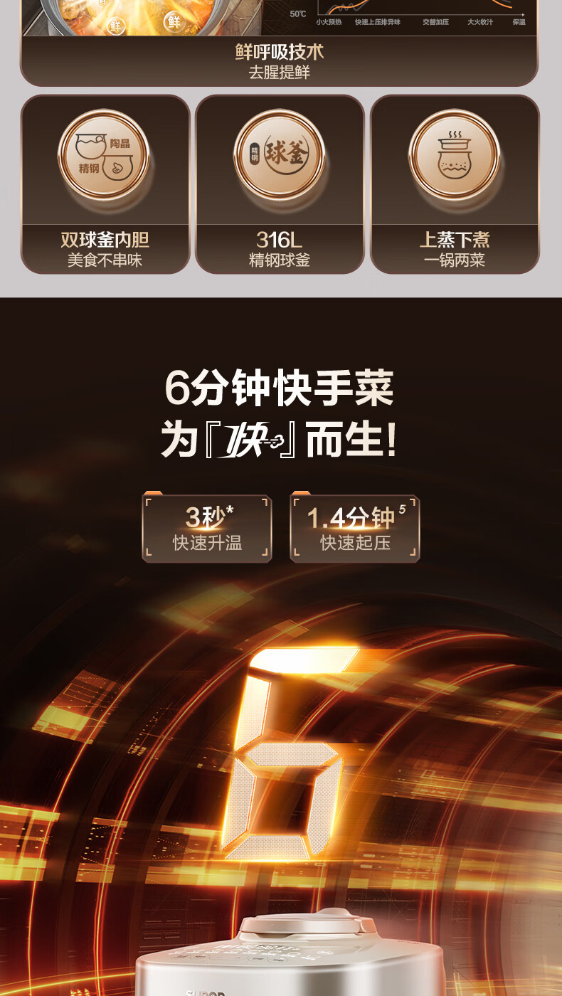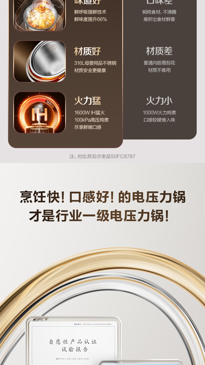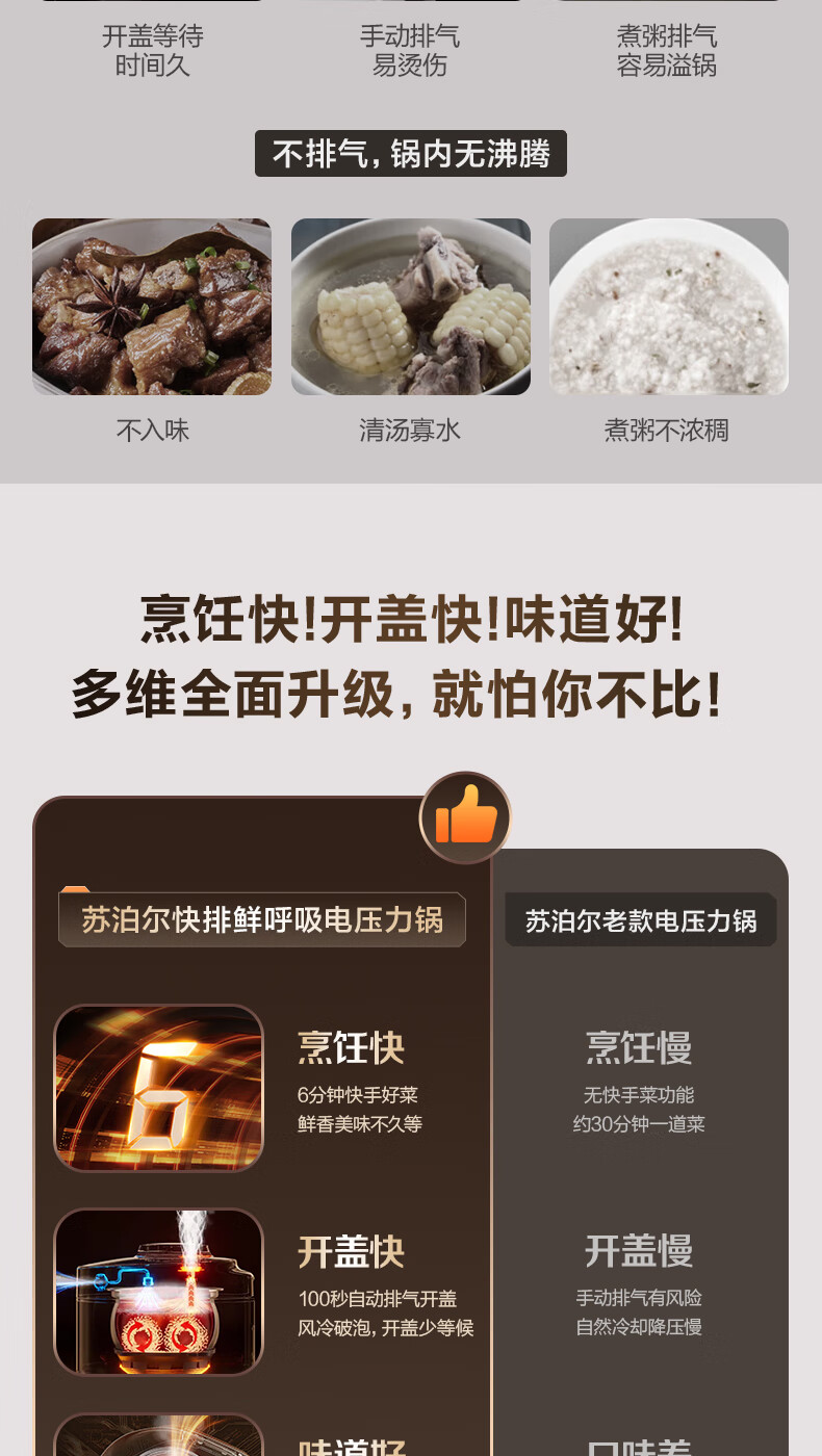 苏泊尔(SUPOR)快排100系列电压力锅3L 鲜呼吸IH猛火 精钢316L球釜内胆2-4人家用高压锅SY-30FH3005Q