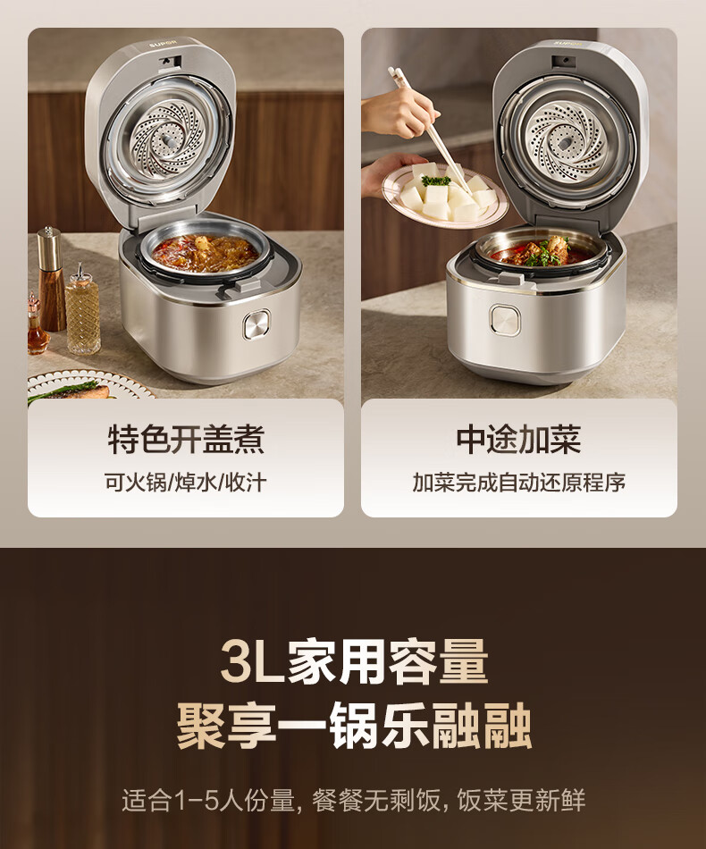 美的(Midea)电饭煲3L家用智能家电电饭锅 IH电磁加热精钢厚釜内胆2-3人一键柴火饭MB-WHS30C96 国家补贴