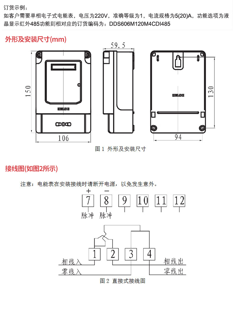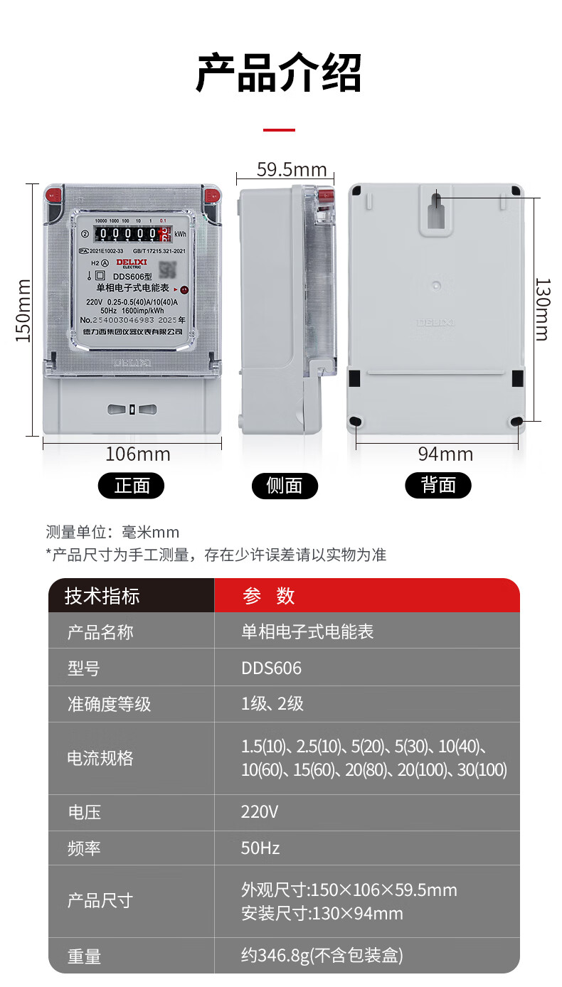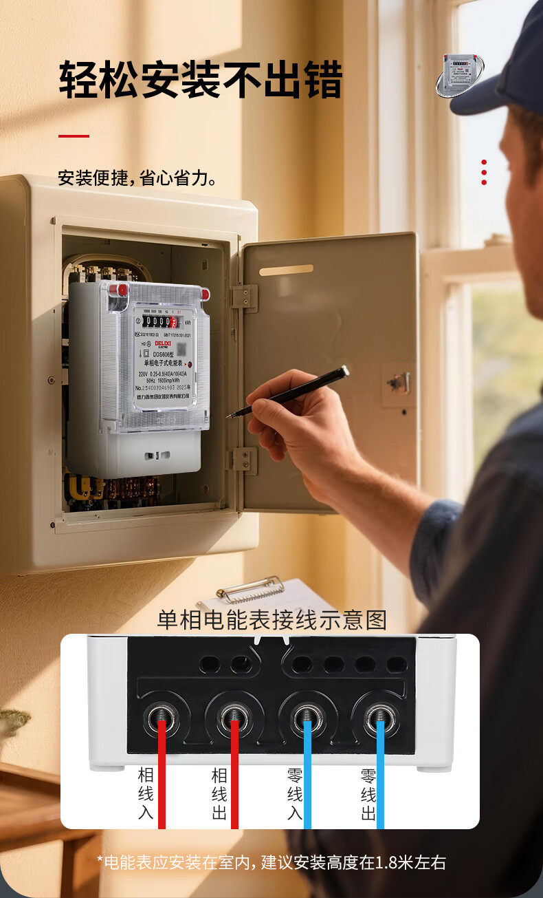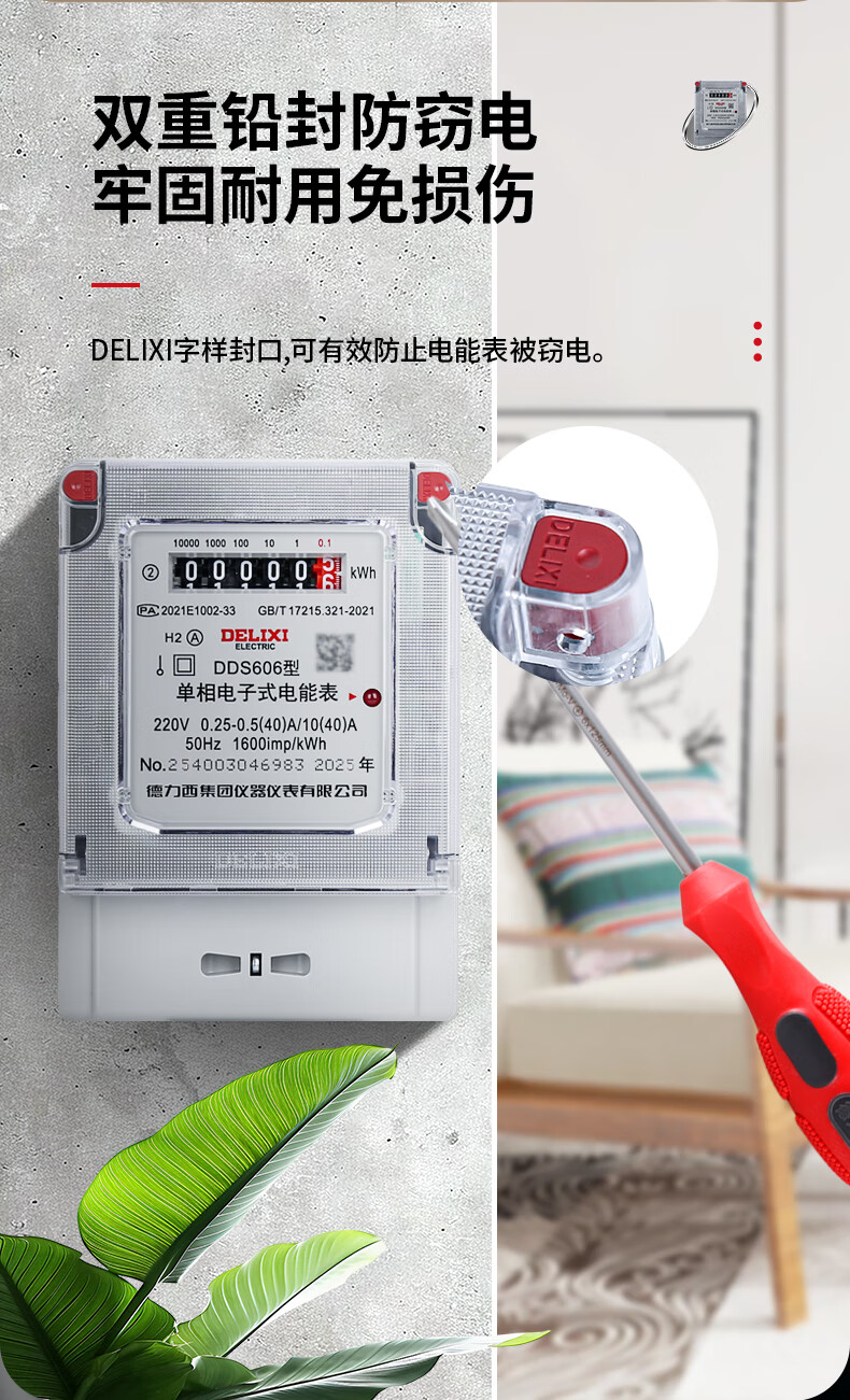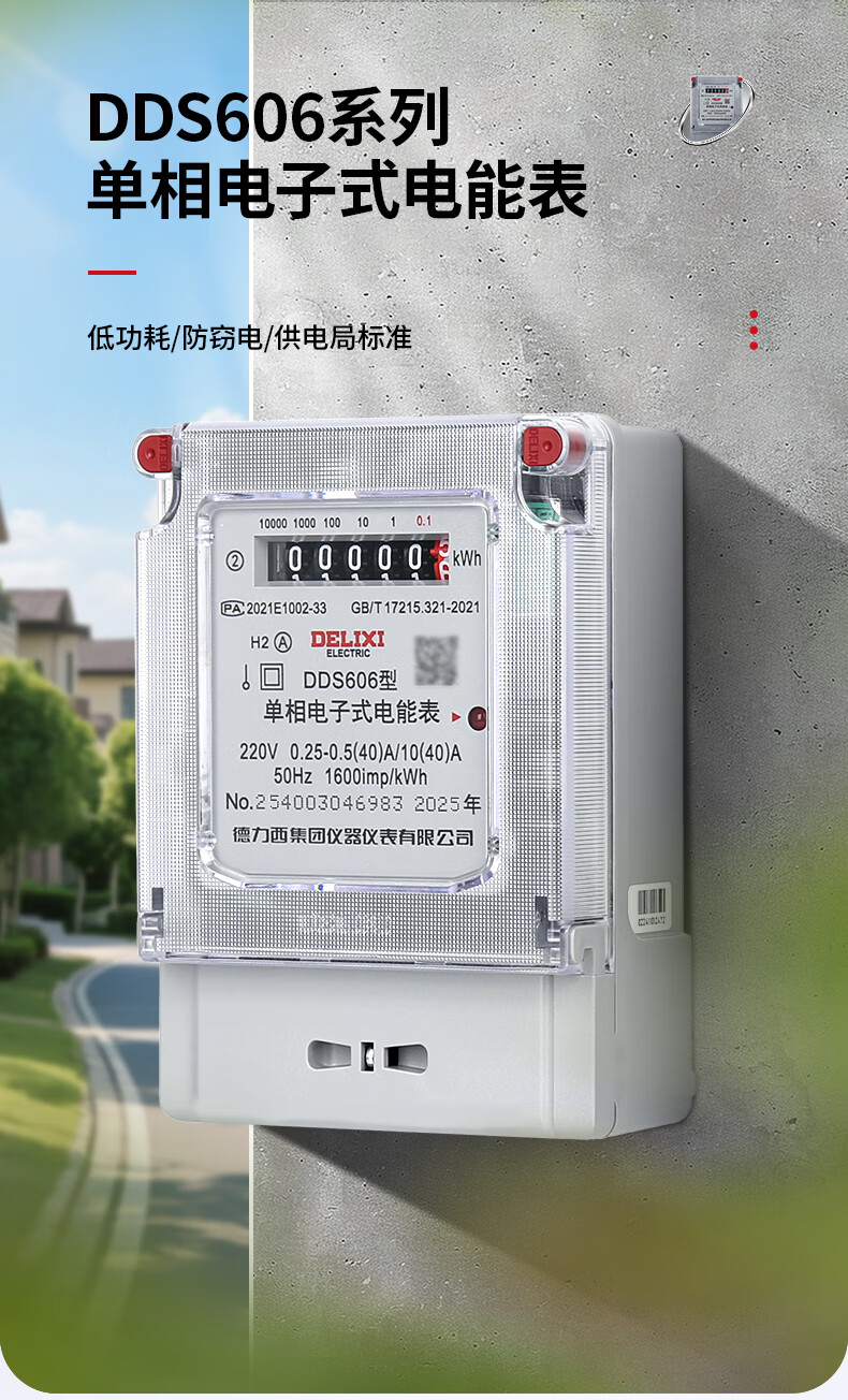 德力西电气电表家用商用出租屋单相电度表DDS606火表 15(60)A