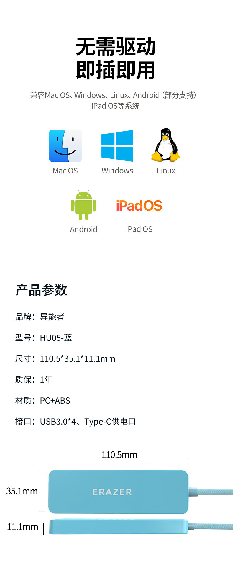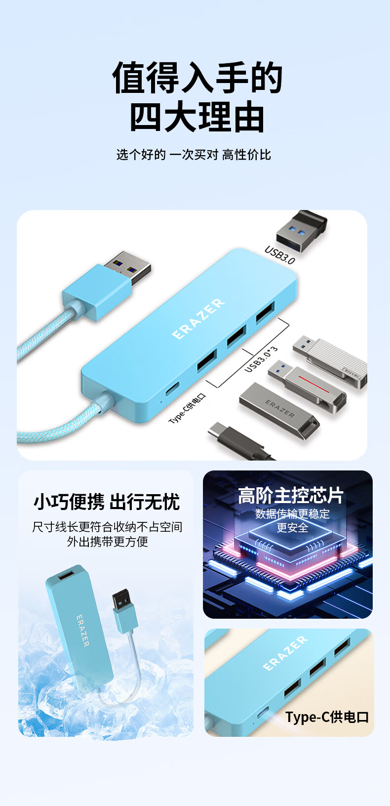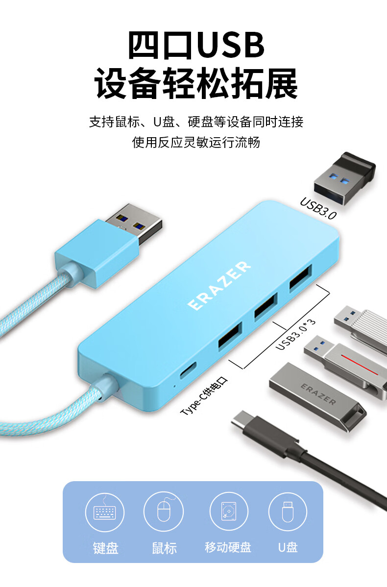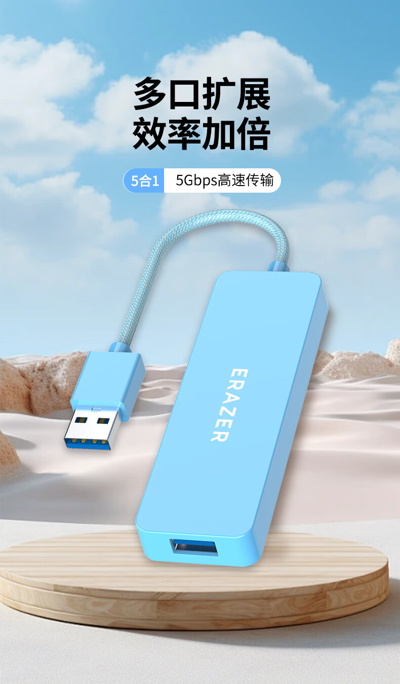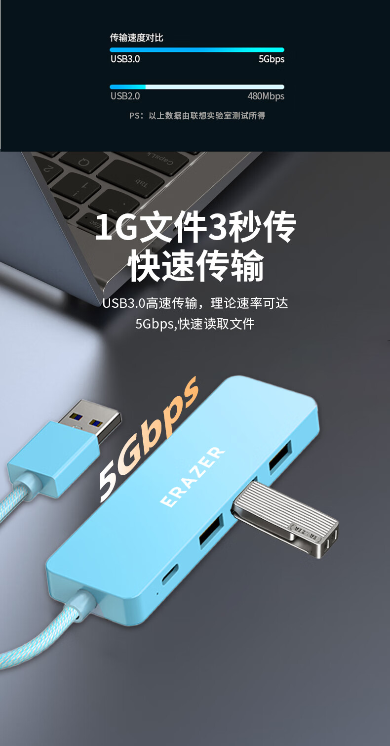 联想生态品牌异能者USB分线器扩展坞高速集线器拓展坞HUB笔记本电脑转换器转接头延长线Type-C供电