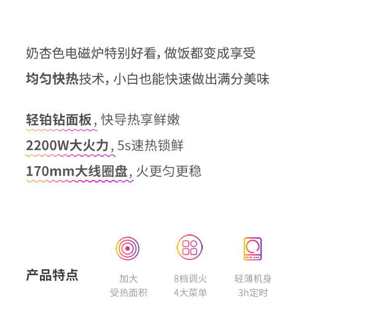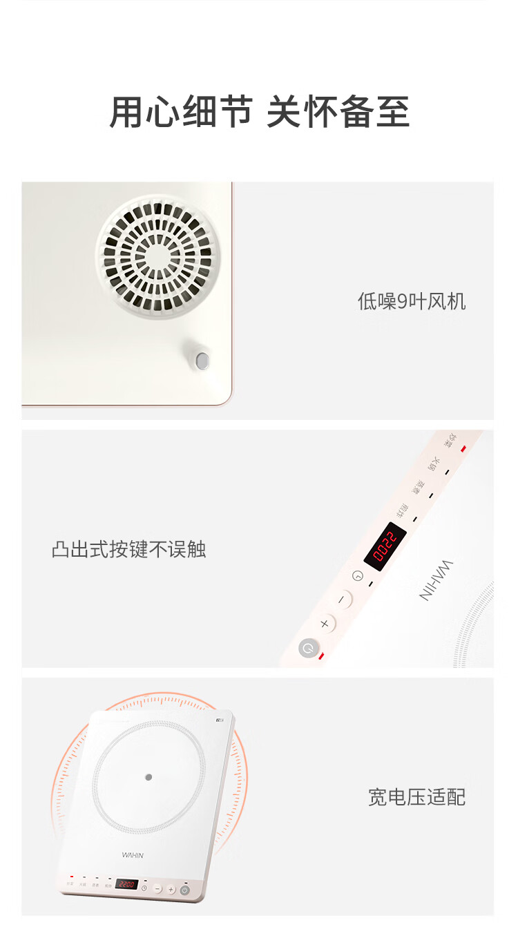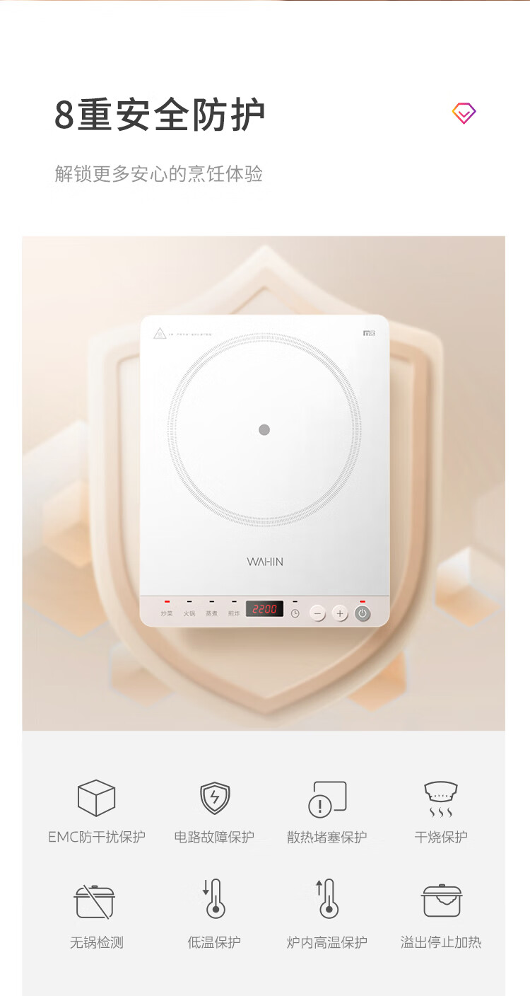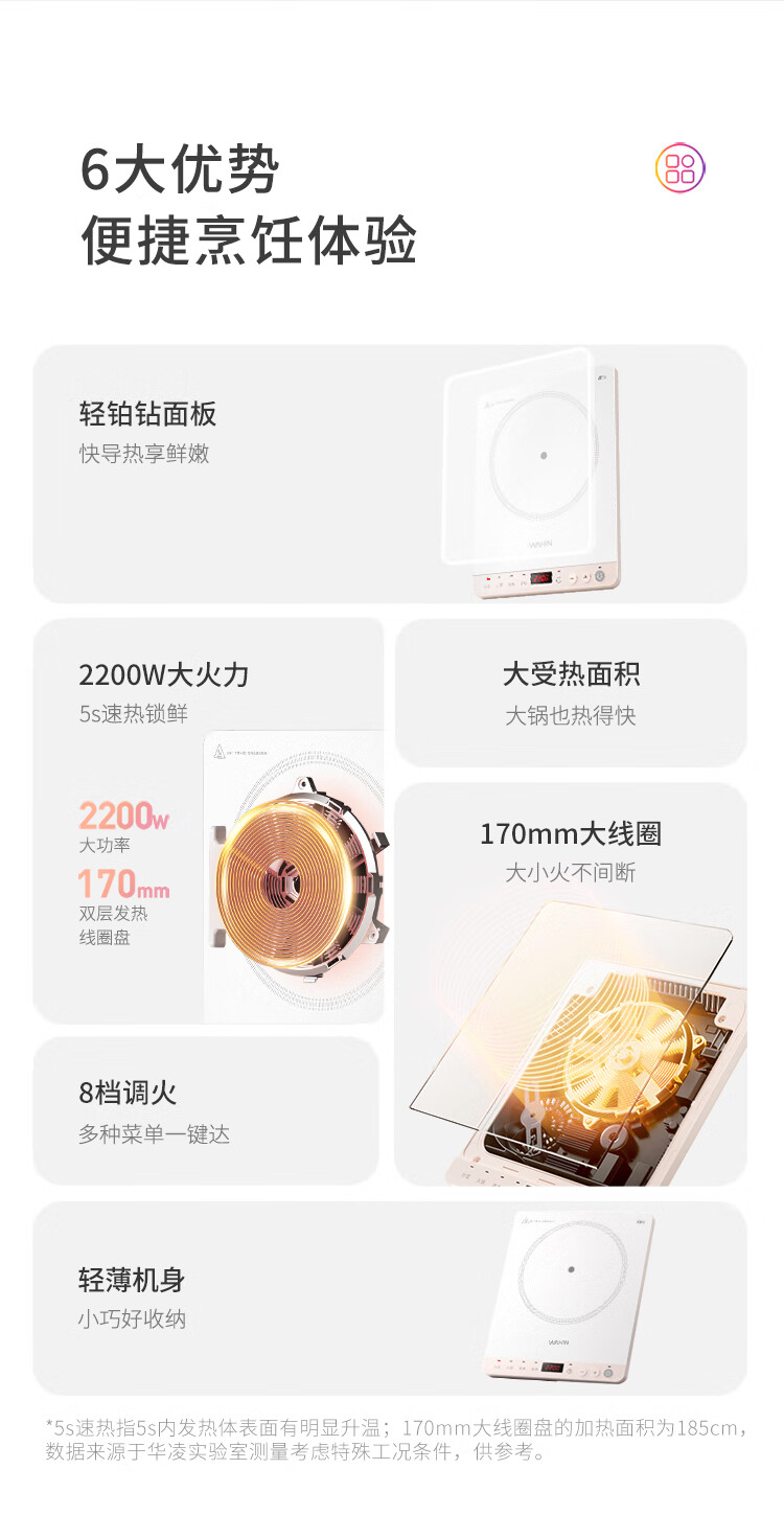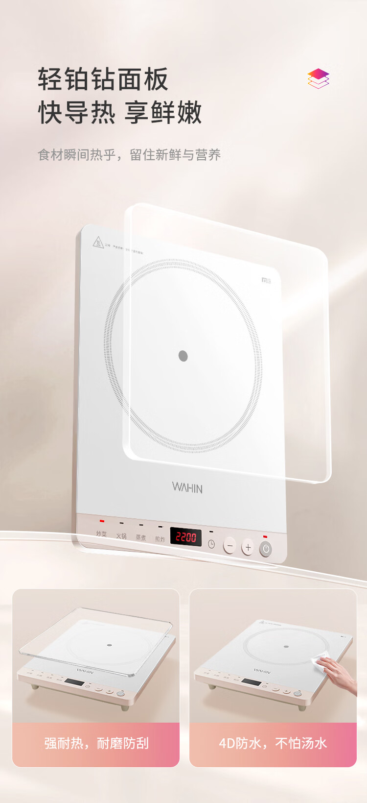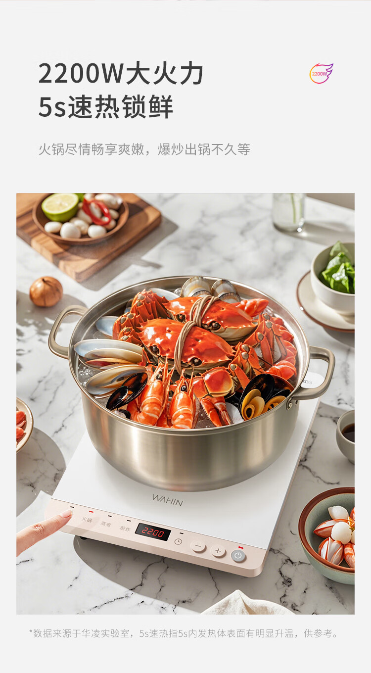 华凌美的出品 电磁炉电陶炉 2200W大功率 轻铂钻 耐用面板八档火力电磁灶火锅炉WH-E22F01