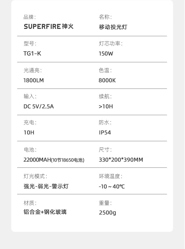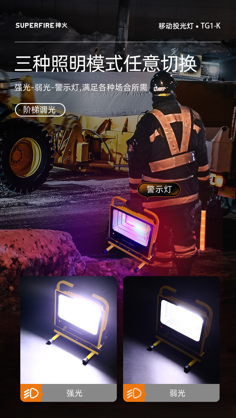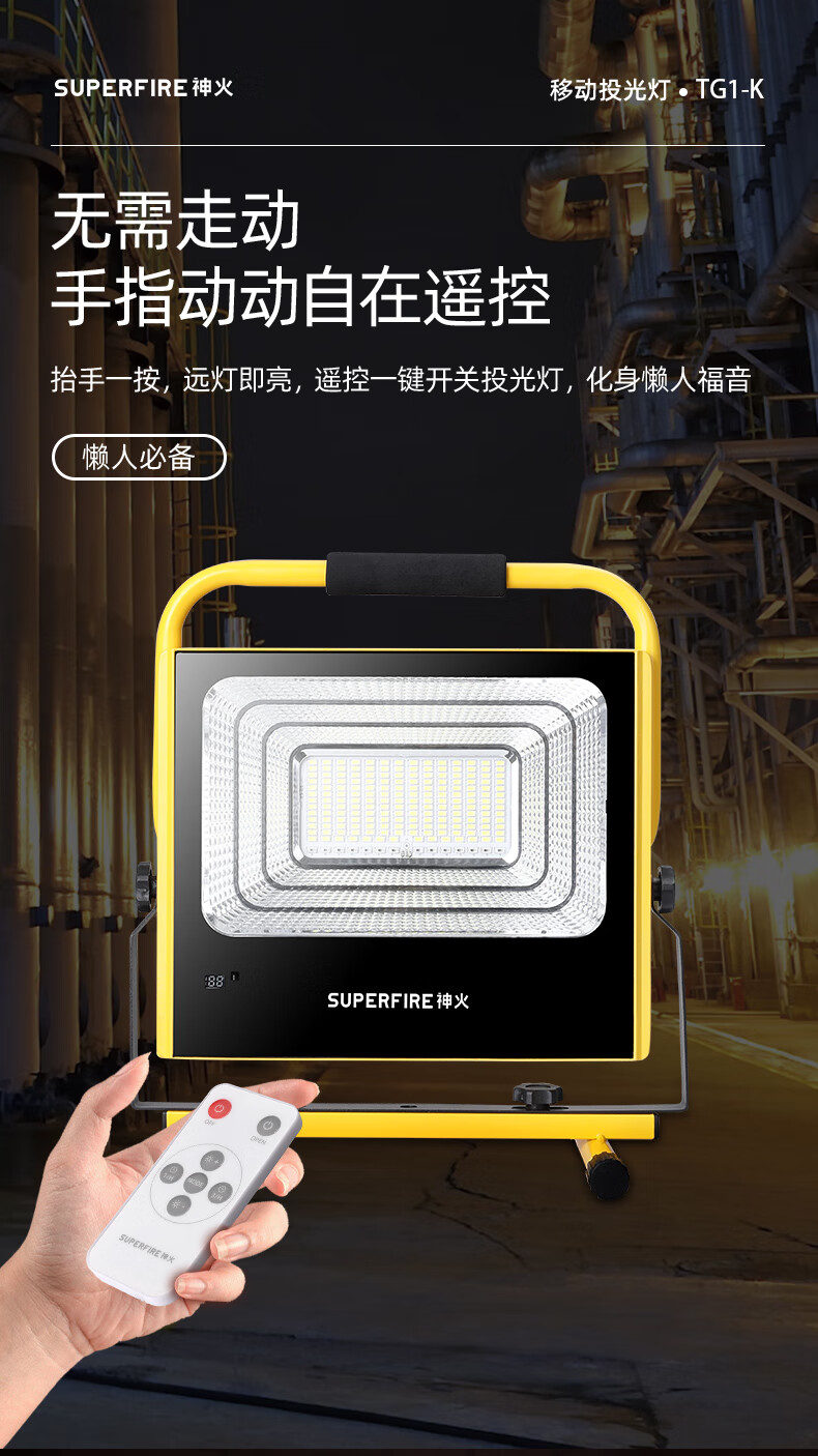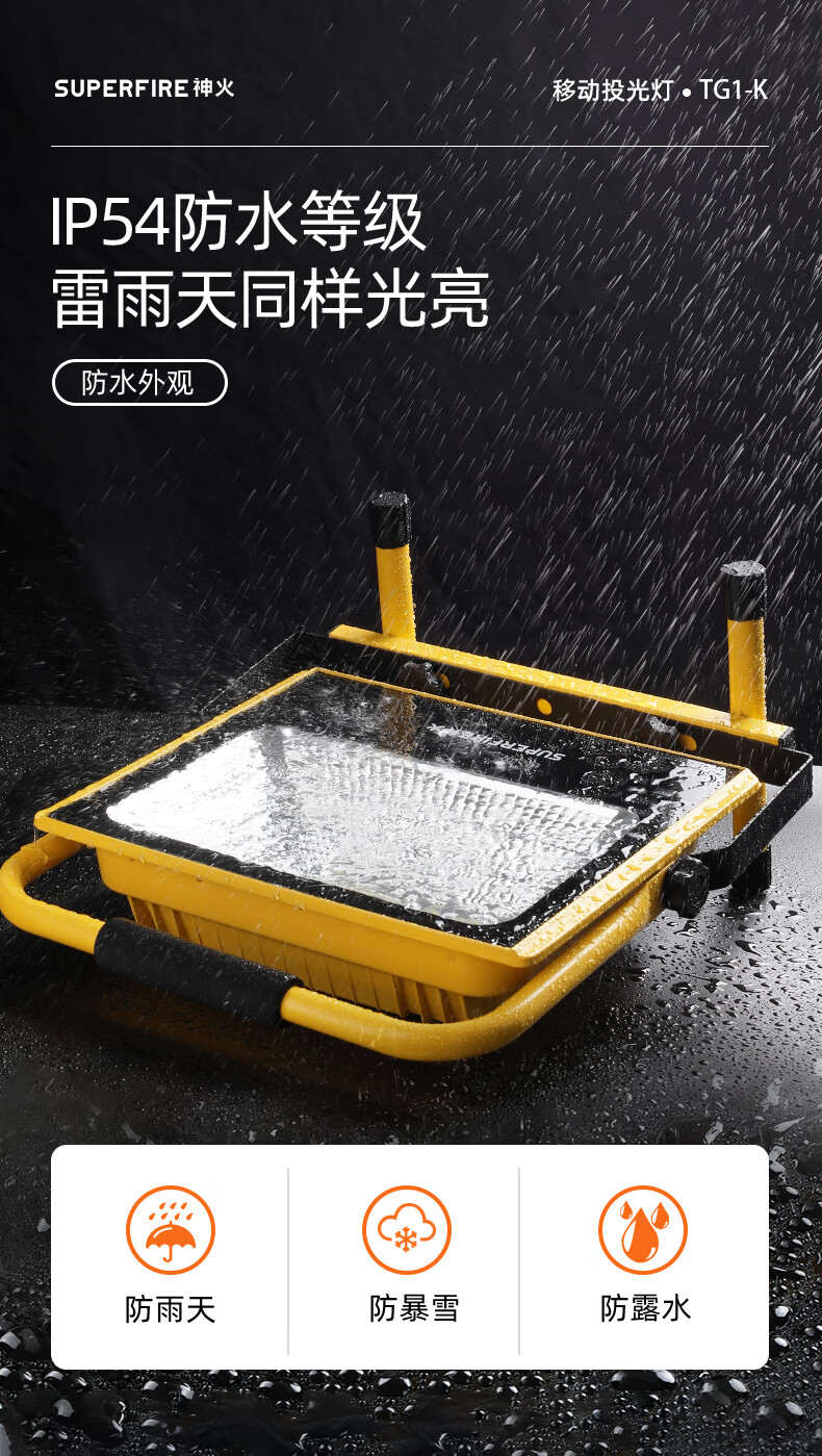 神火(SupFire)TG1-K充电投光灯大功率户外家用照明灯工作灯野营便携手提探照灯