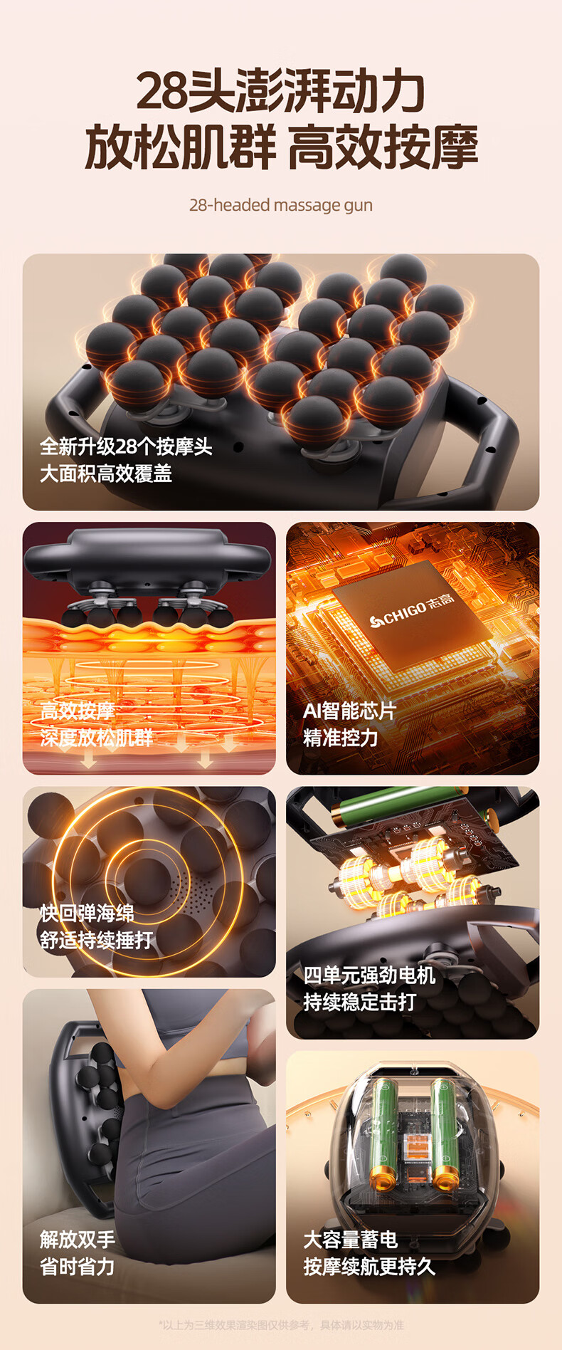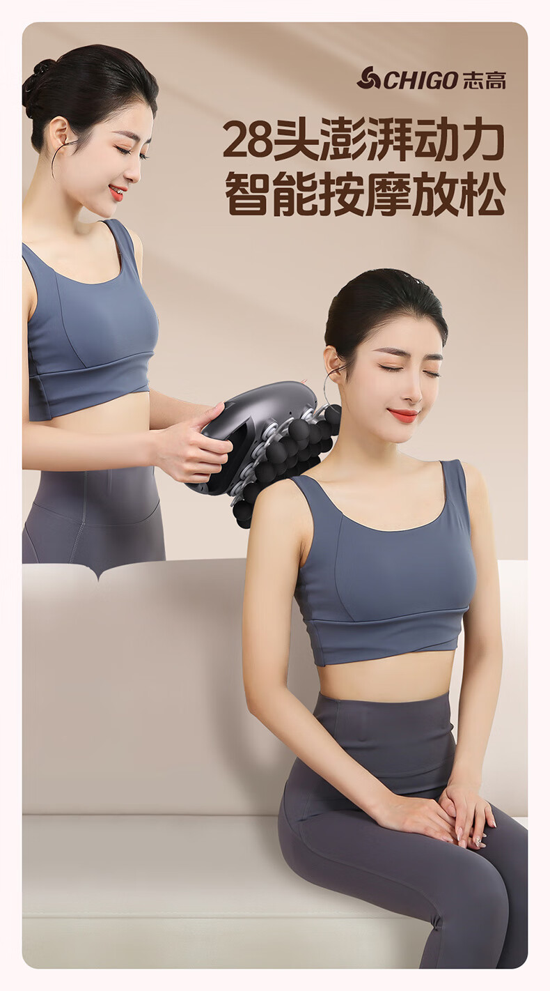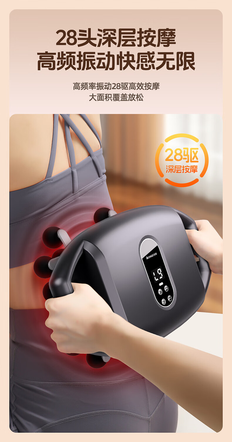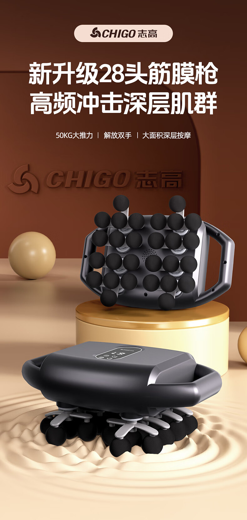 志高(CHIGO)多头筋膜枪肌肉放松按摩神器28头全身颈肩部颈膜枪二十八腰背部小腿电动震动热敷按摩仪生日礼品物 【28头顶配款】9档50kg推力+动力数显锂电池黑 七夕情人节送男女朋友老公老婆节日高档实用