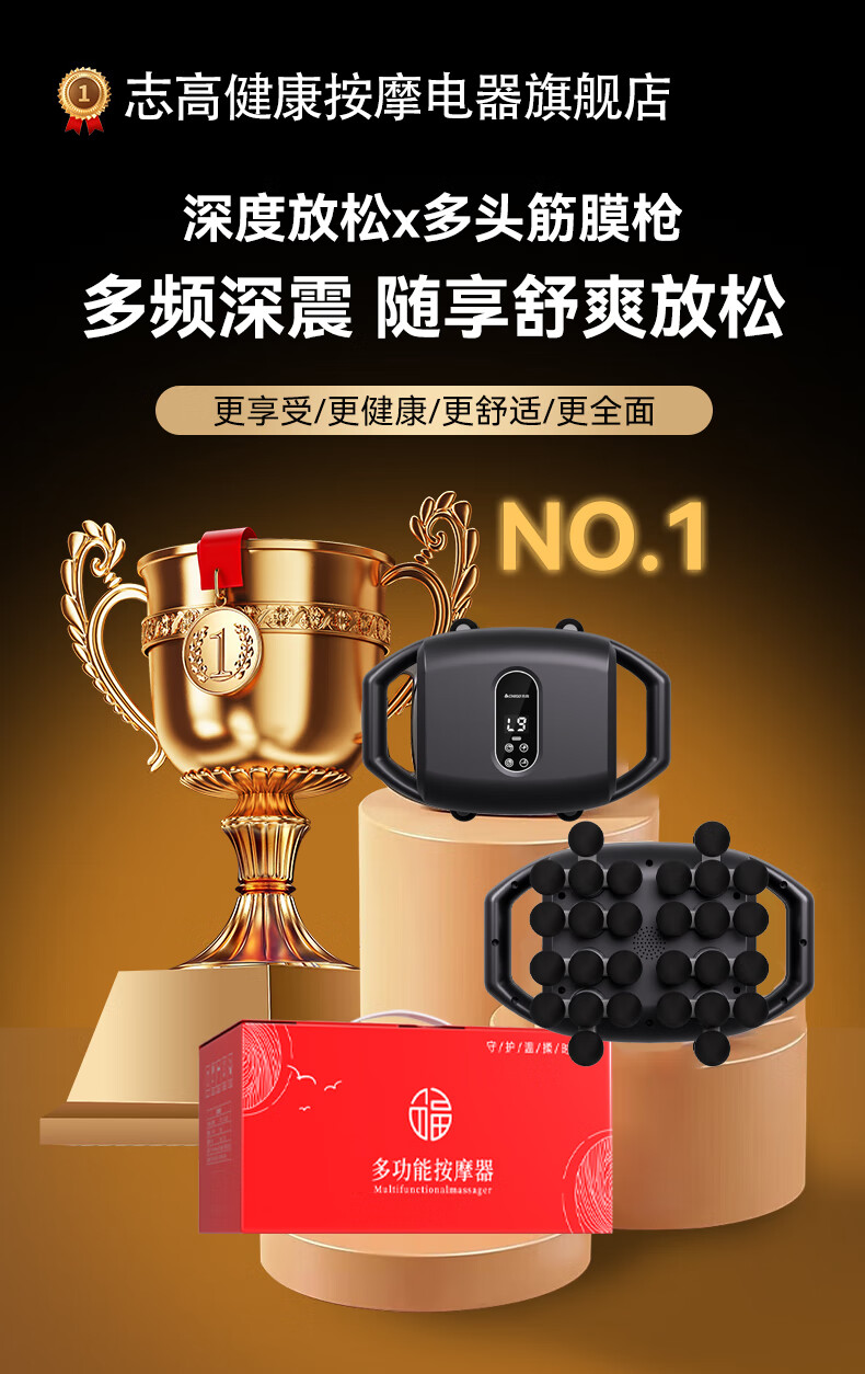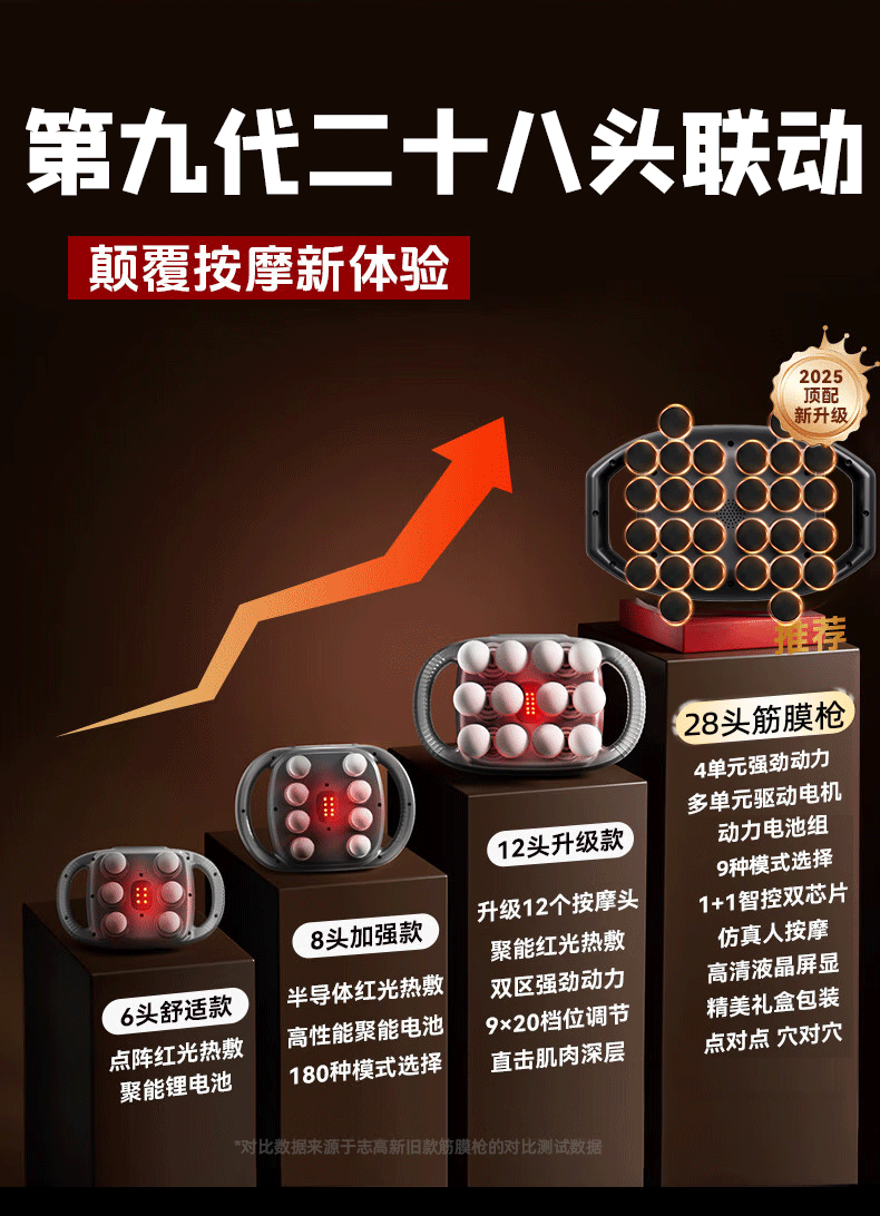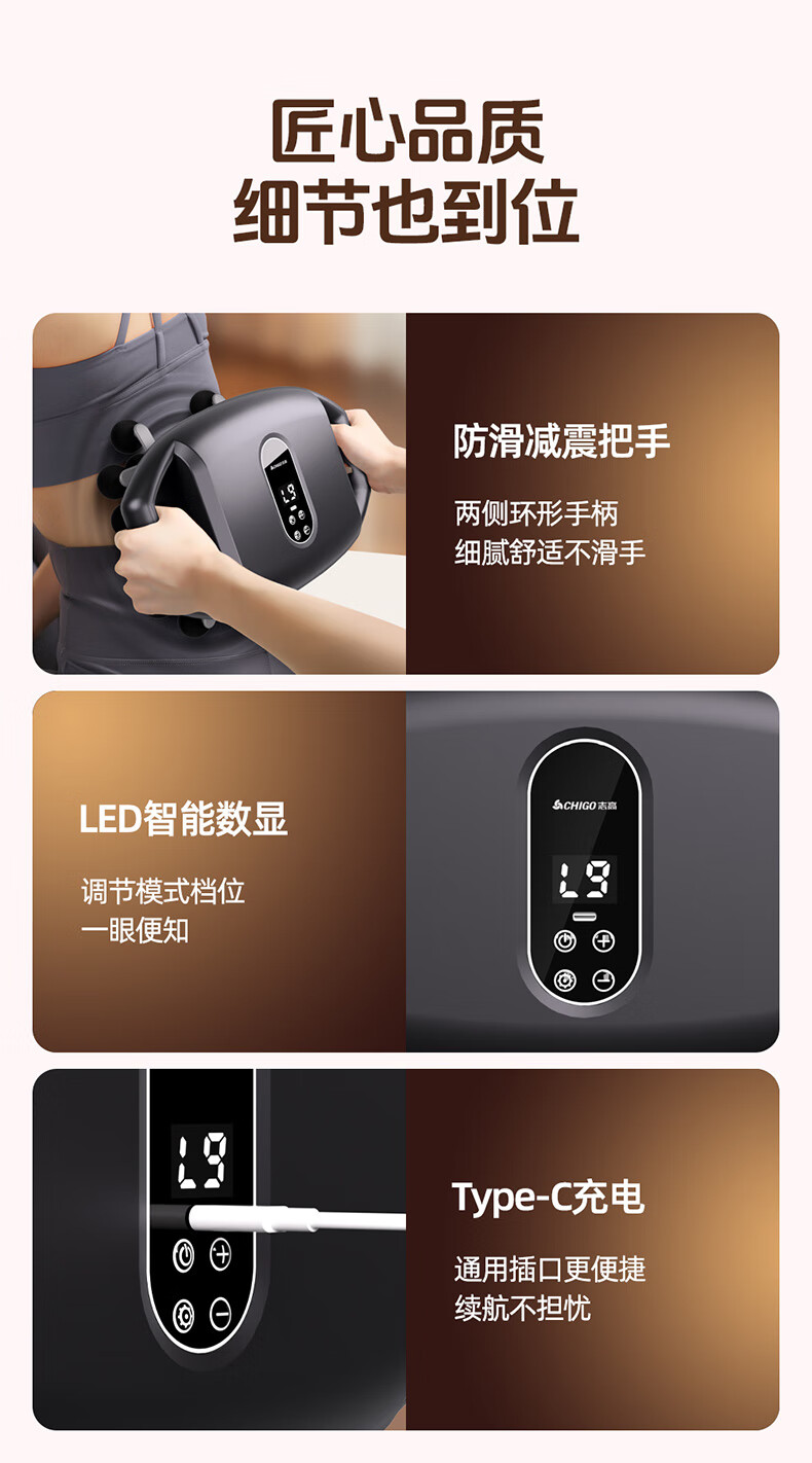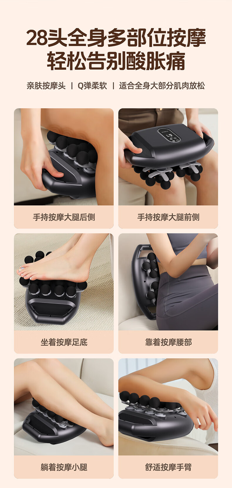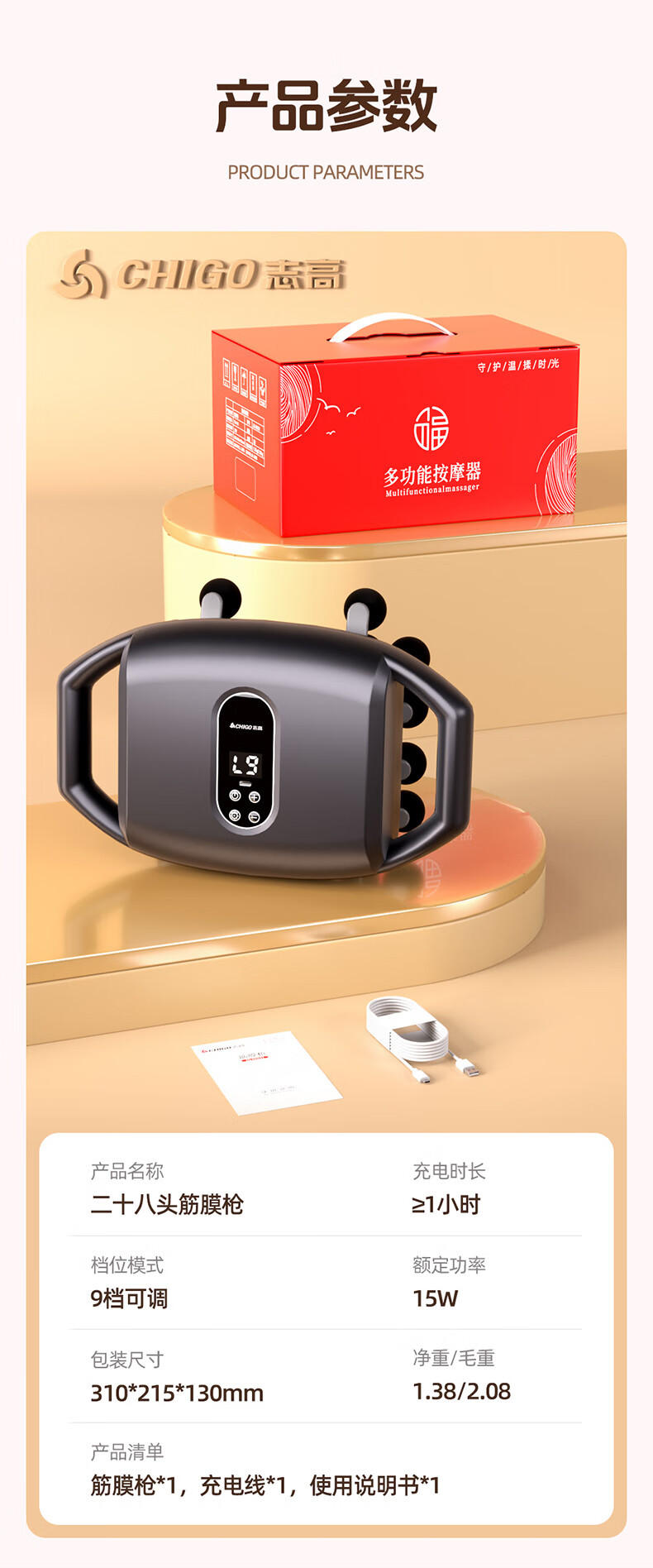 志高(CHIGO)多头筋膜枪肌肉放松按摩神器28头全身颈肩部颈膜枪二十八腰背部小腿电动震动热敷按摩仪生日礼品物 【28头顶配款】9档50kg推力+动力数显锂电池黑 七夕情人节送男女朋友老公老婆节日高档实用
