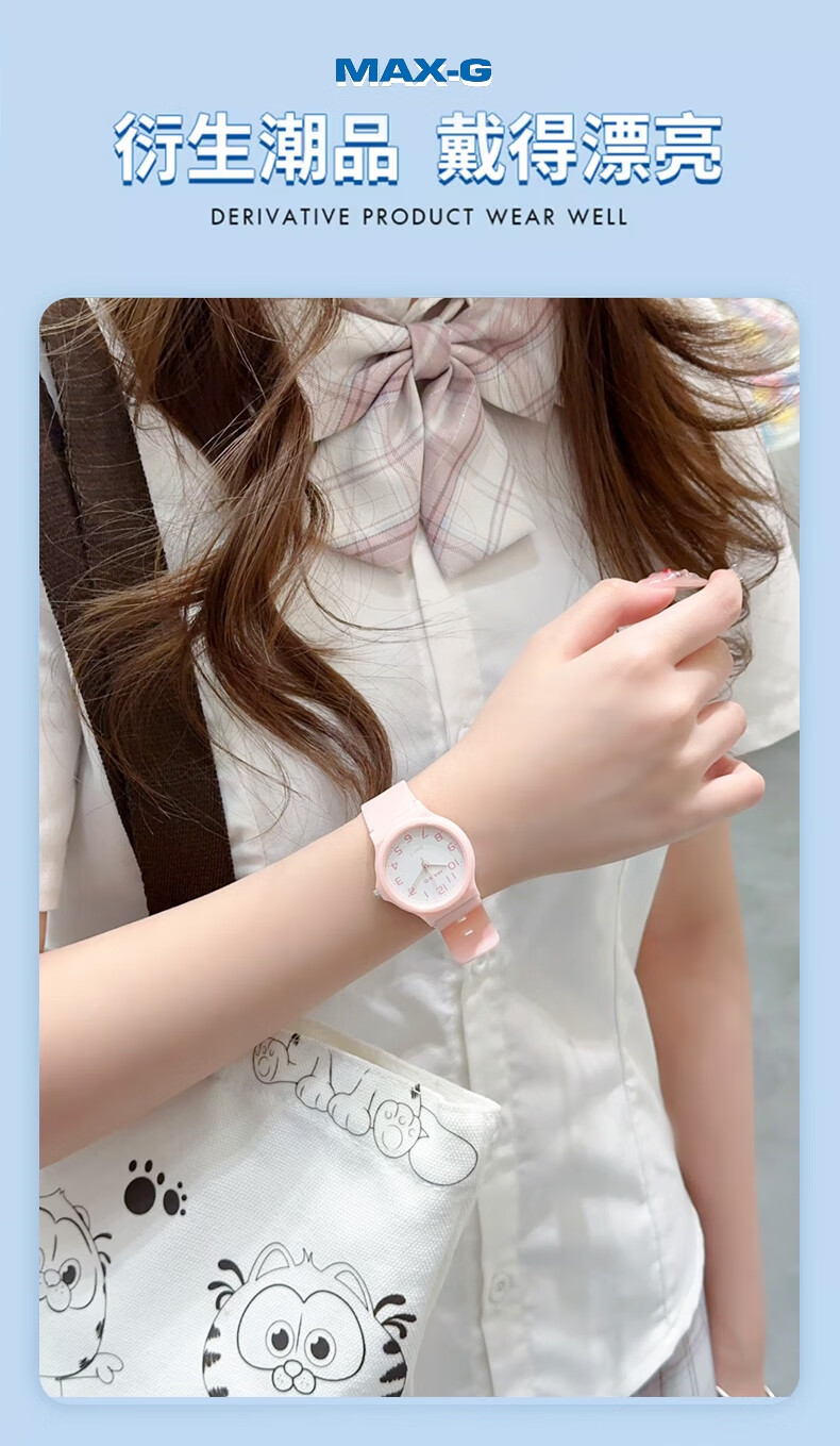 MAX-G学生手表女孩小学生初高中青少年高考中考国考公务员考试石英手表