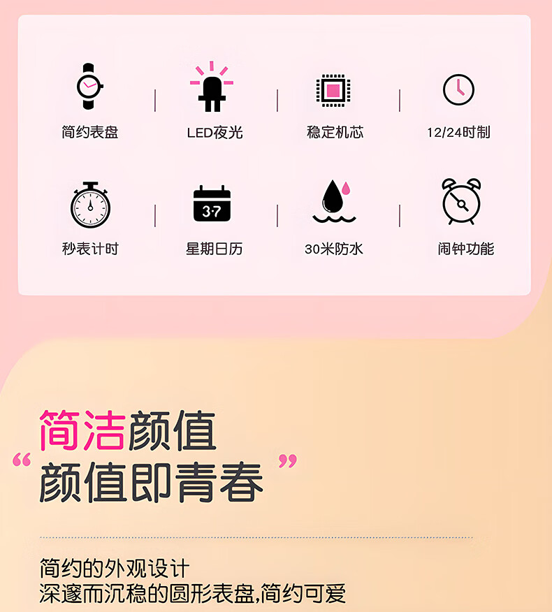 TIME CONCEPTS电子手表女款学生初中生高中儿童女孩女生中学生2025年新款电子表