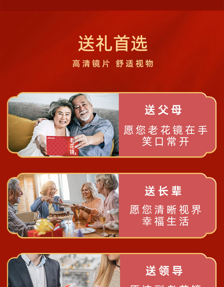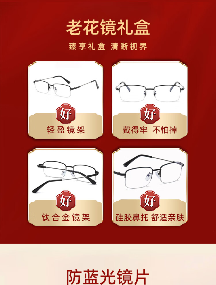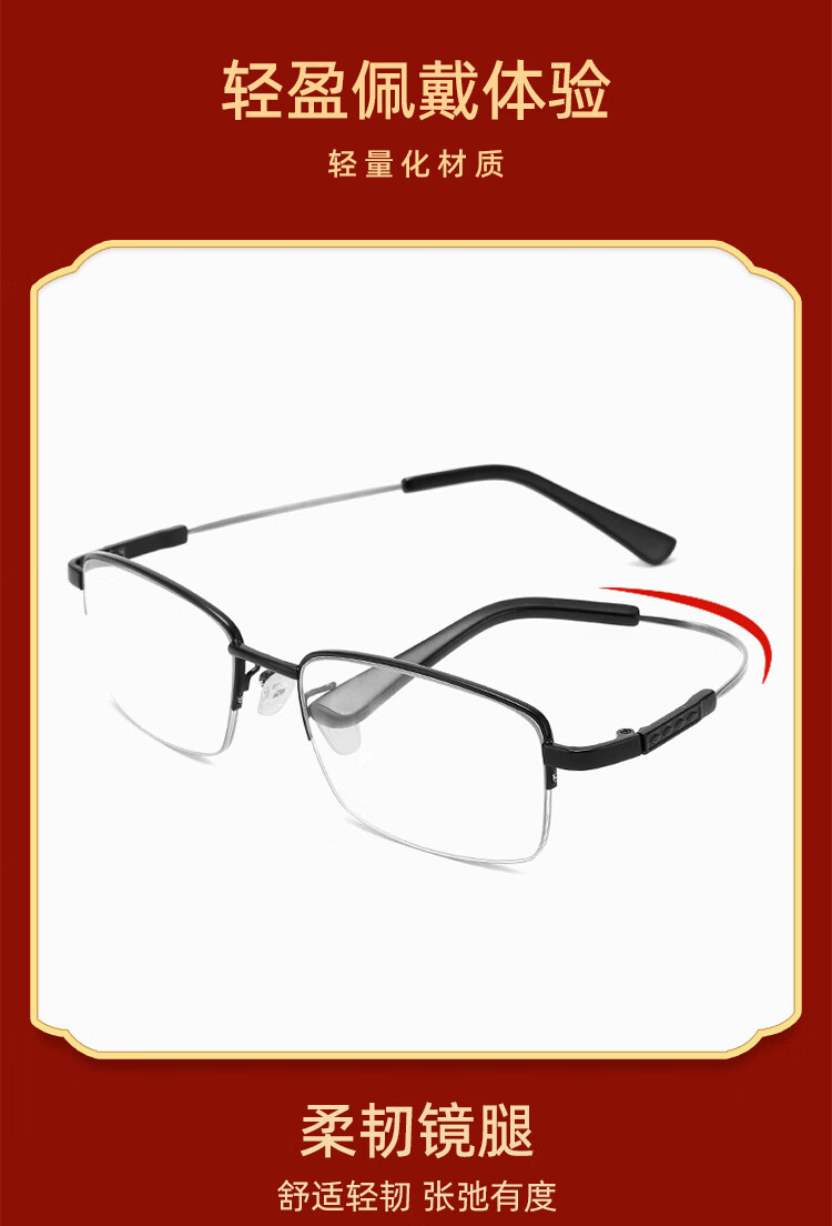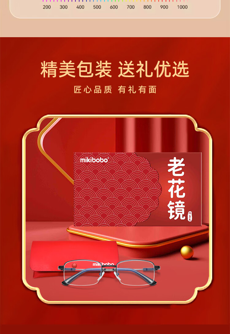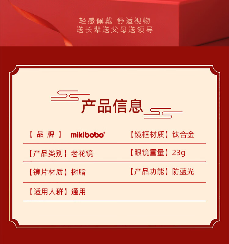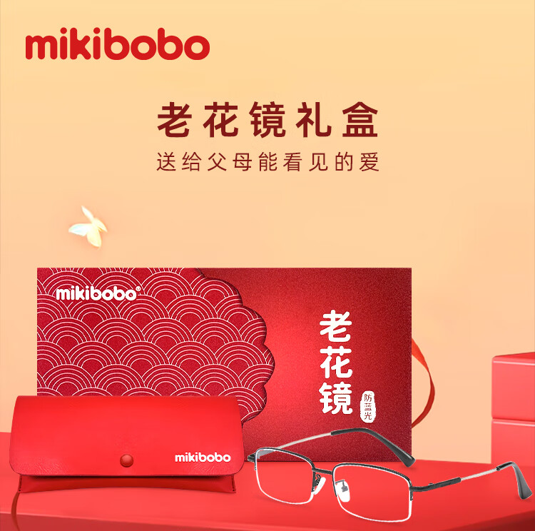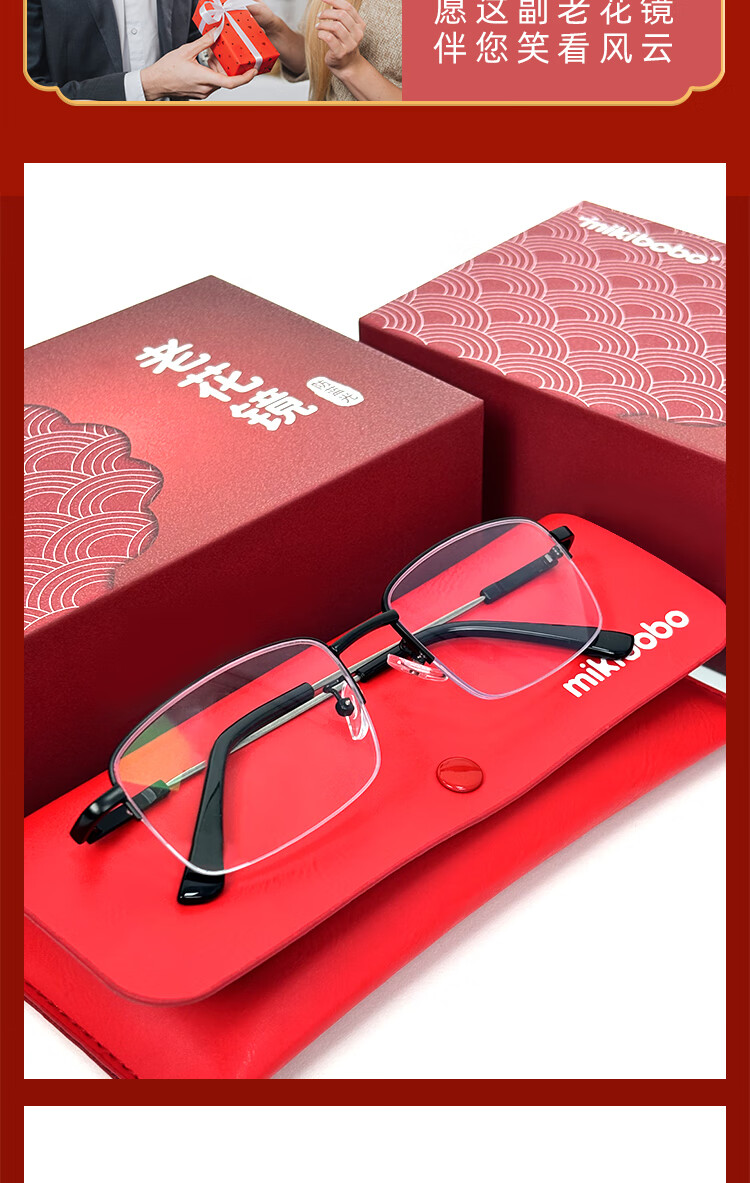 mikibobomikibobo老花镜钛合金弹性好不变形商务半框防蓝光眼镜礼盒装开学