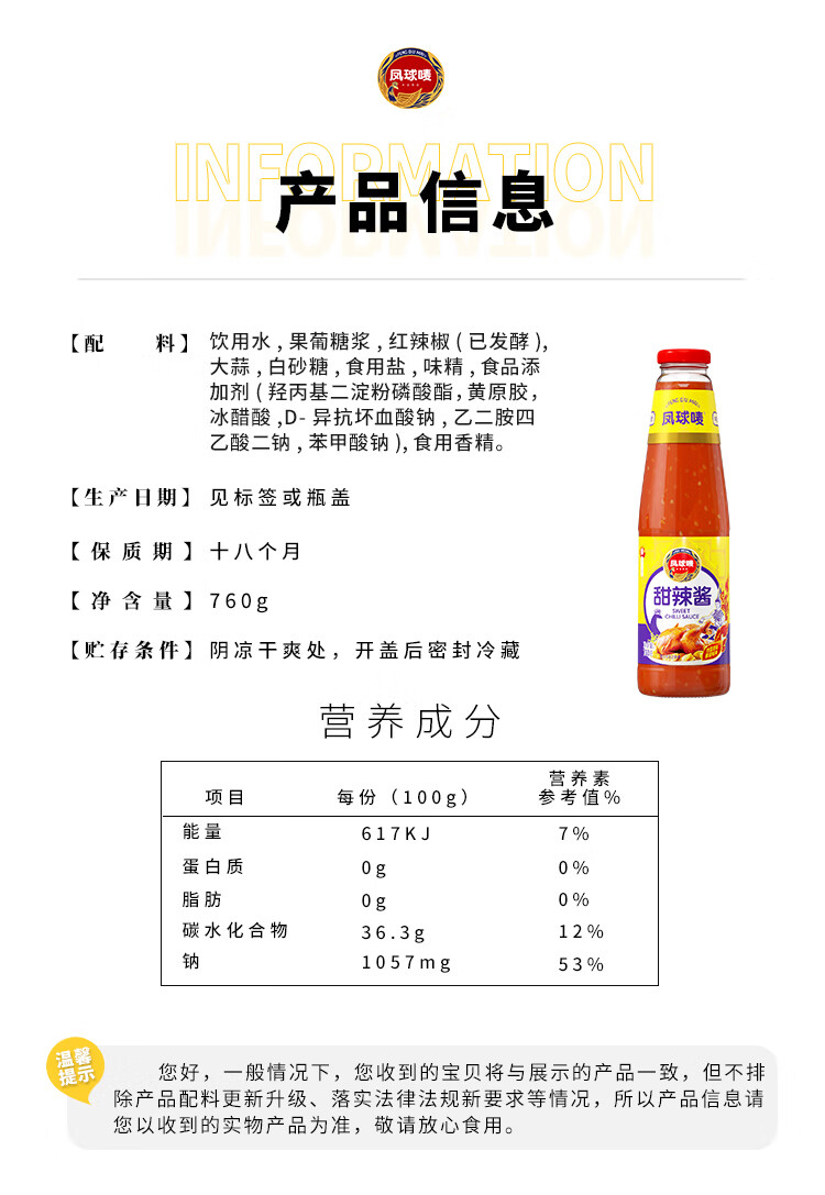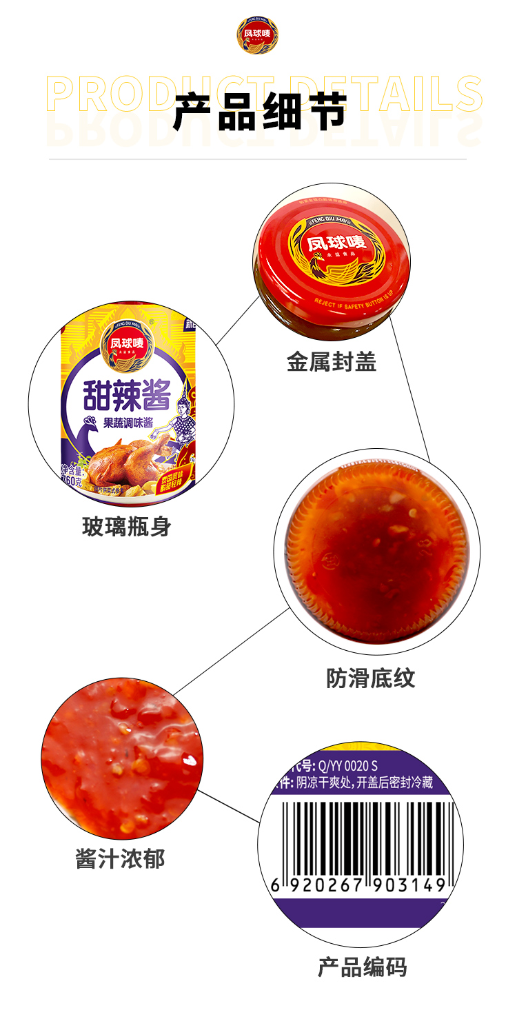 凤球唛甜辣酱760g韩式炸鸡烧烤肉辣椒手抓饼配料拌面酱调味酱料