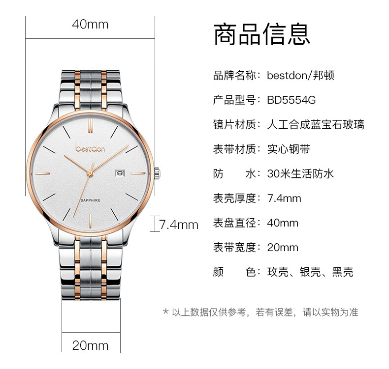邦顿(Bestdon)手表男士商务防水石英腕表礼盒男生手表送男友送老公情人节礼物