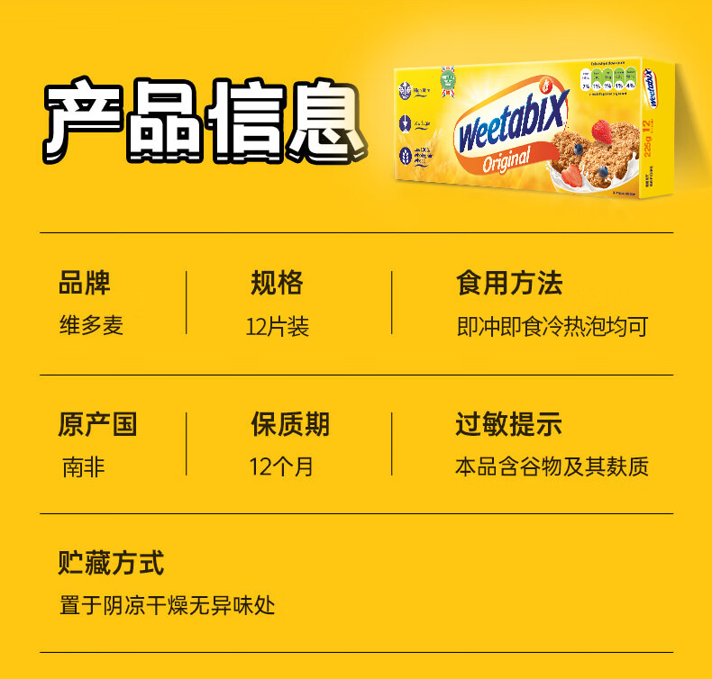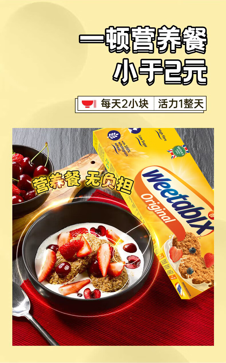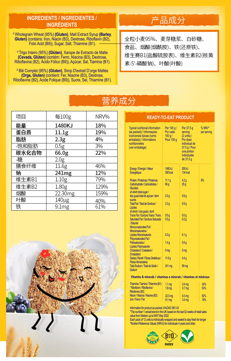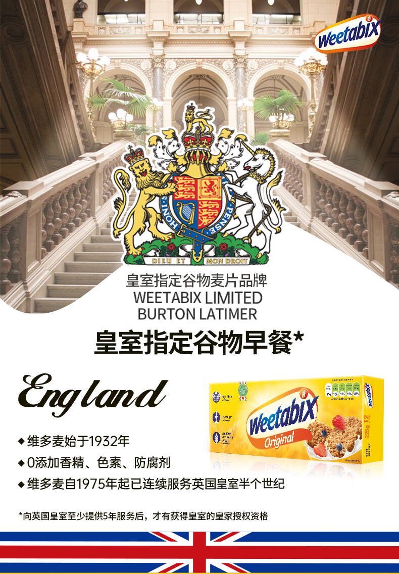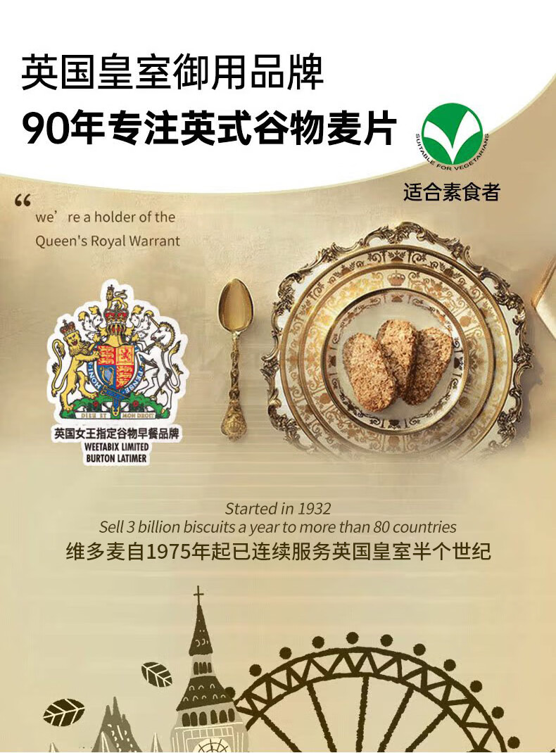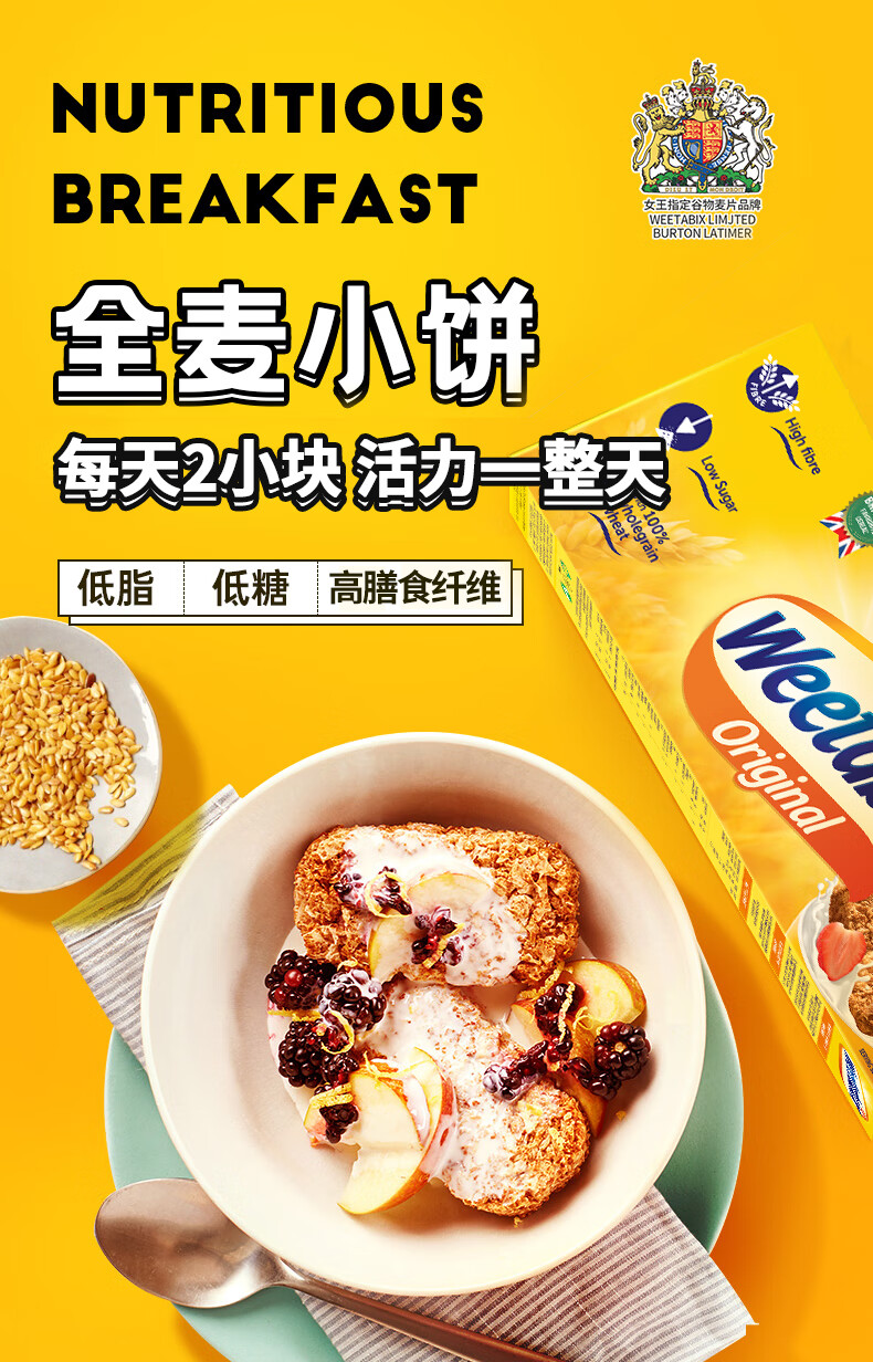 维多麦全麦麦片饼干225g英国皇室认证高纤低脂进口谷物燕麦脆片冲泡代餐