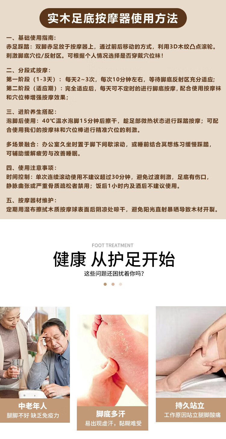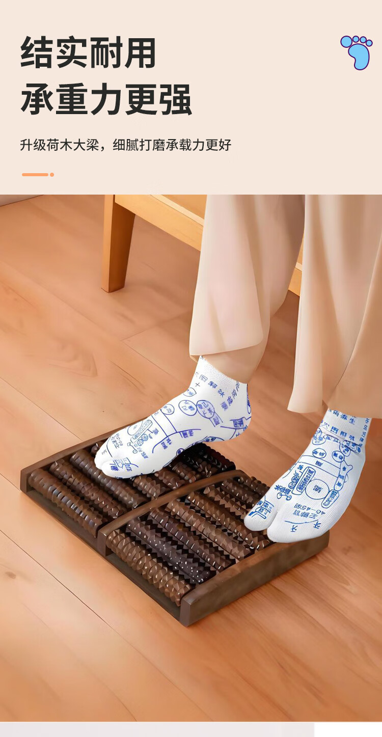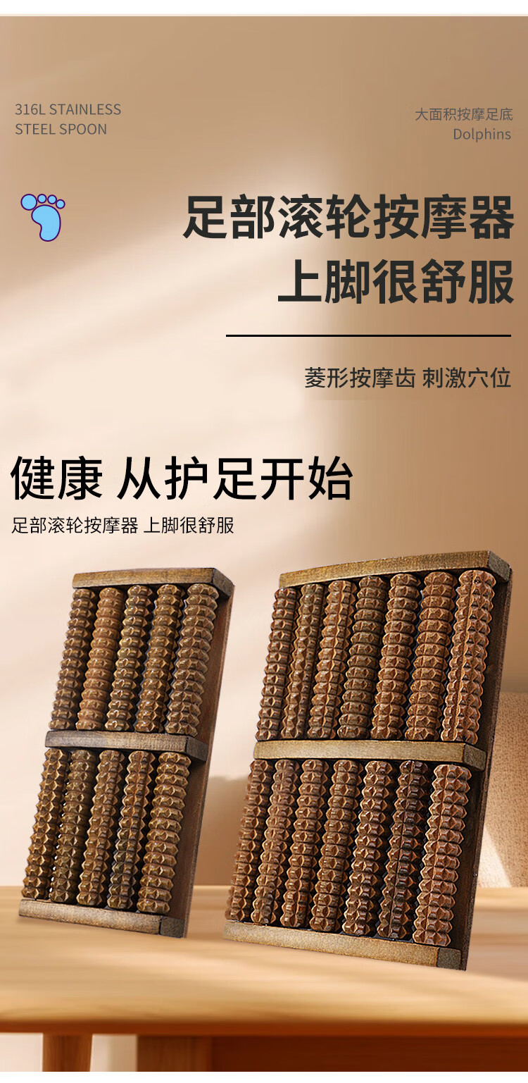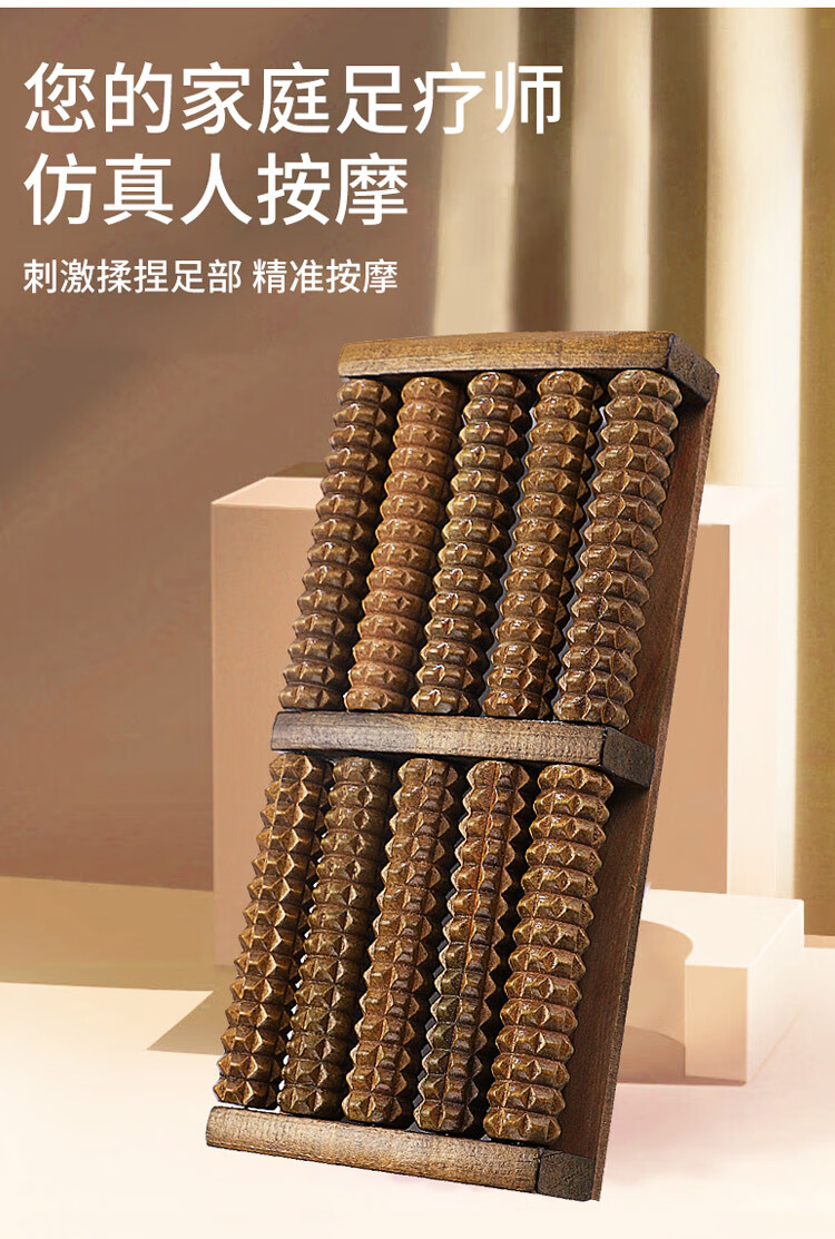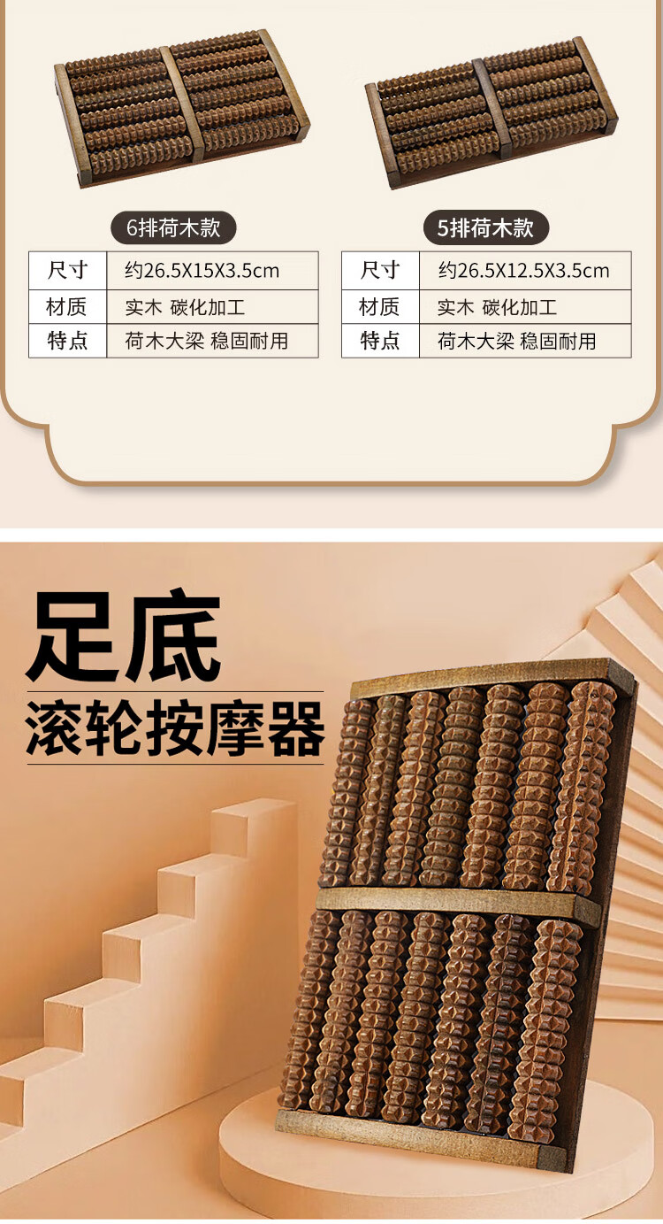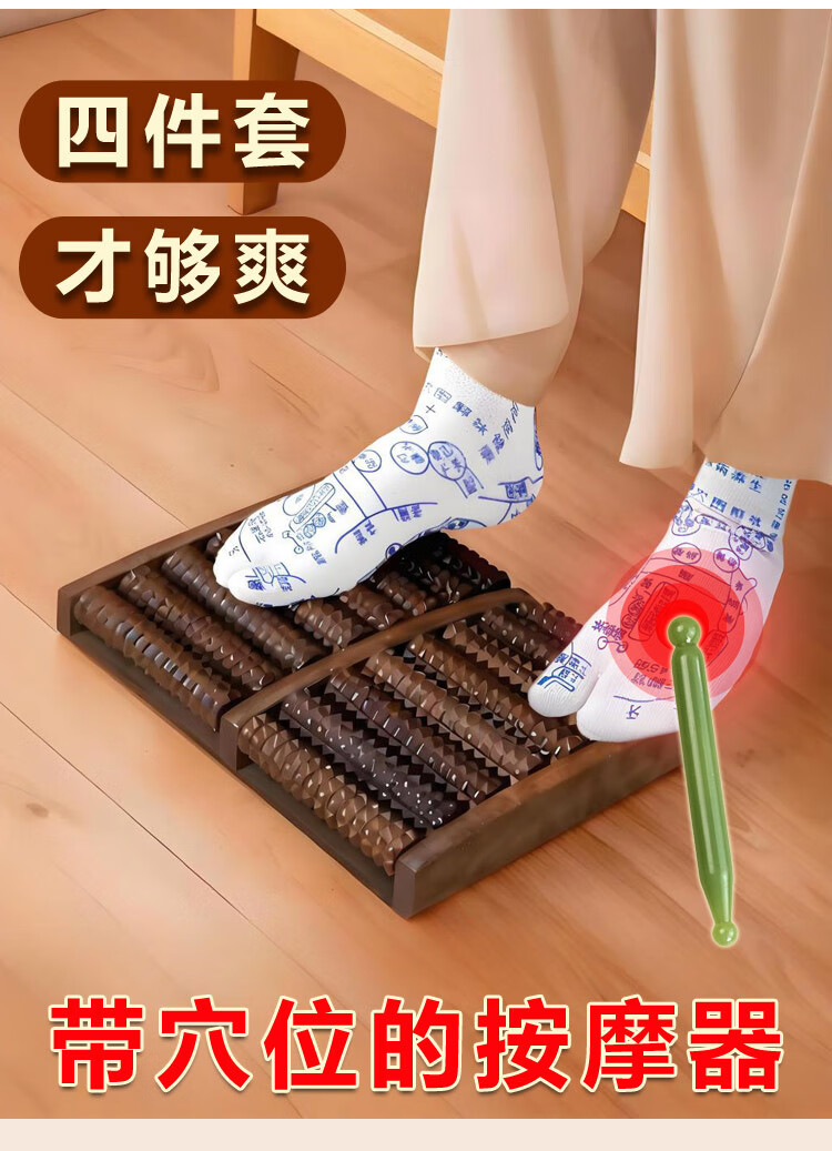 霞栖棠足底按摩器实木家用脚部木质滚轮式指压板脚垫腿部经络按摩小工具 男士/16排滚轮-四件套