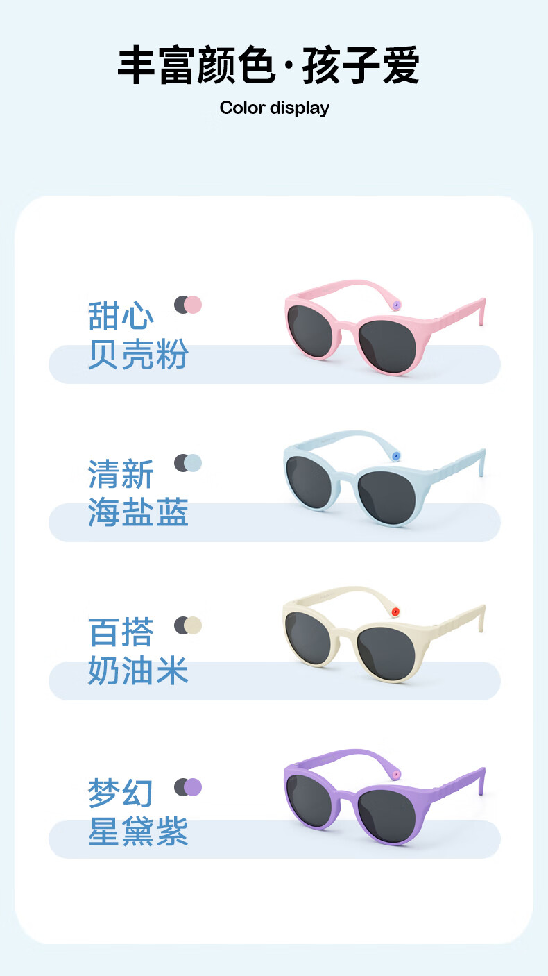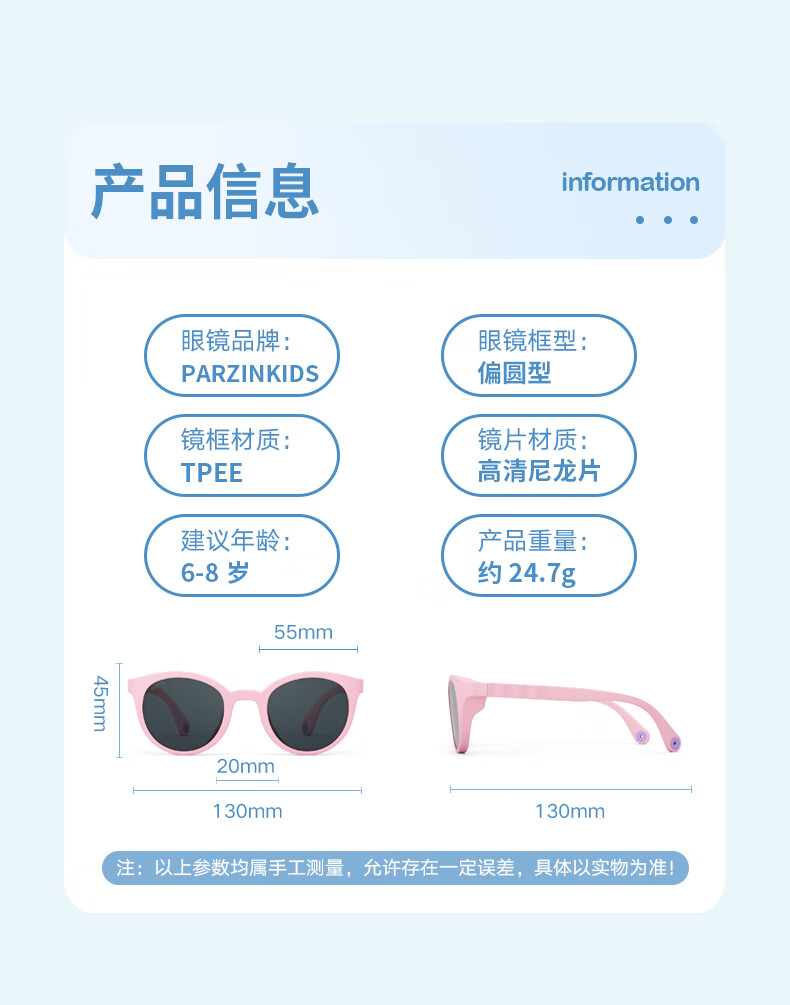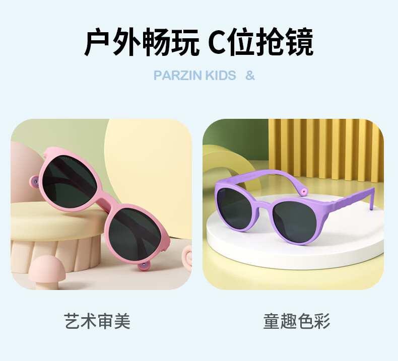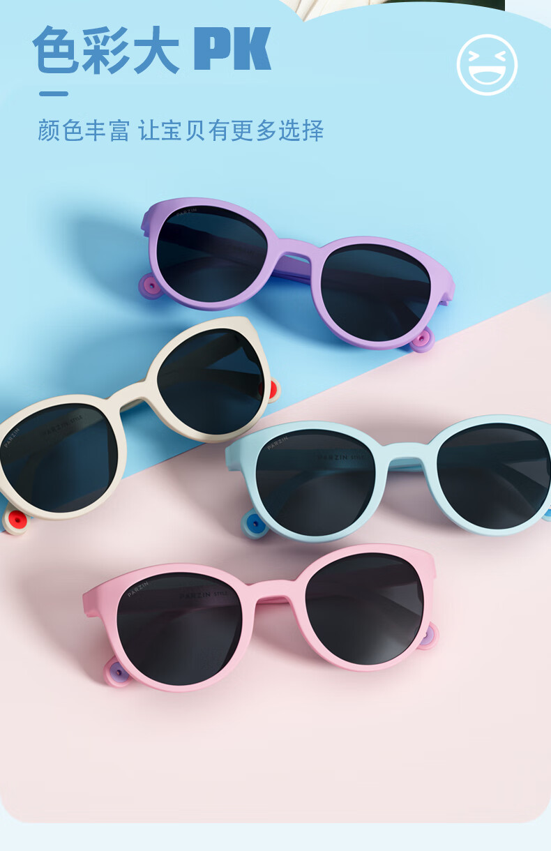 PARZIN KIDS儿童太阳镜 偏圆框轻盈时尚眼镜户外防紫外线防晒墨镜6-8岁 21033