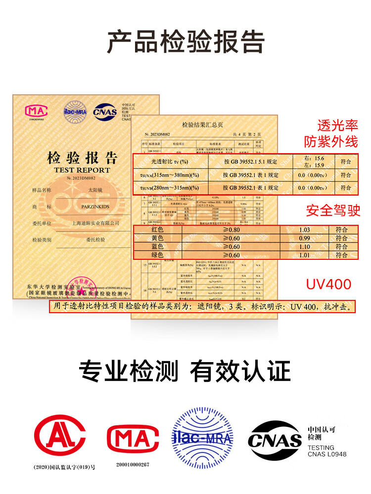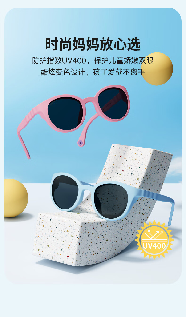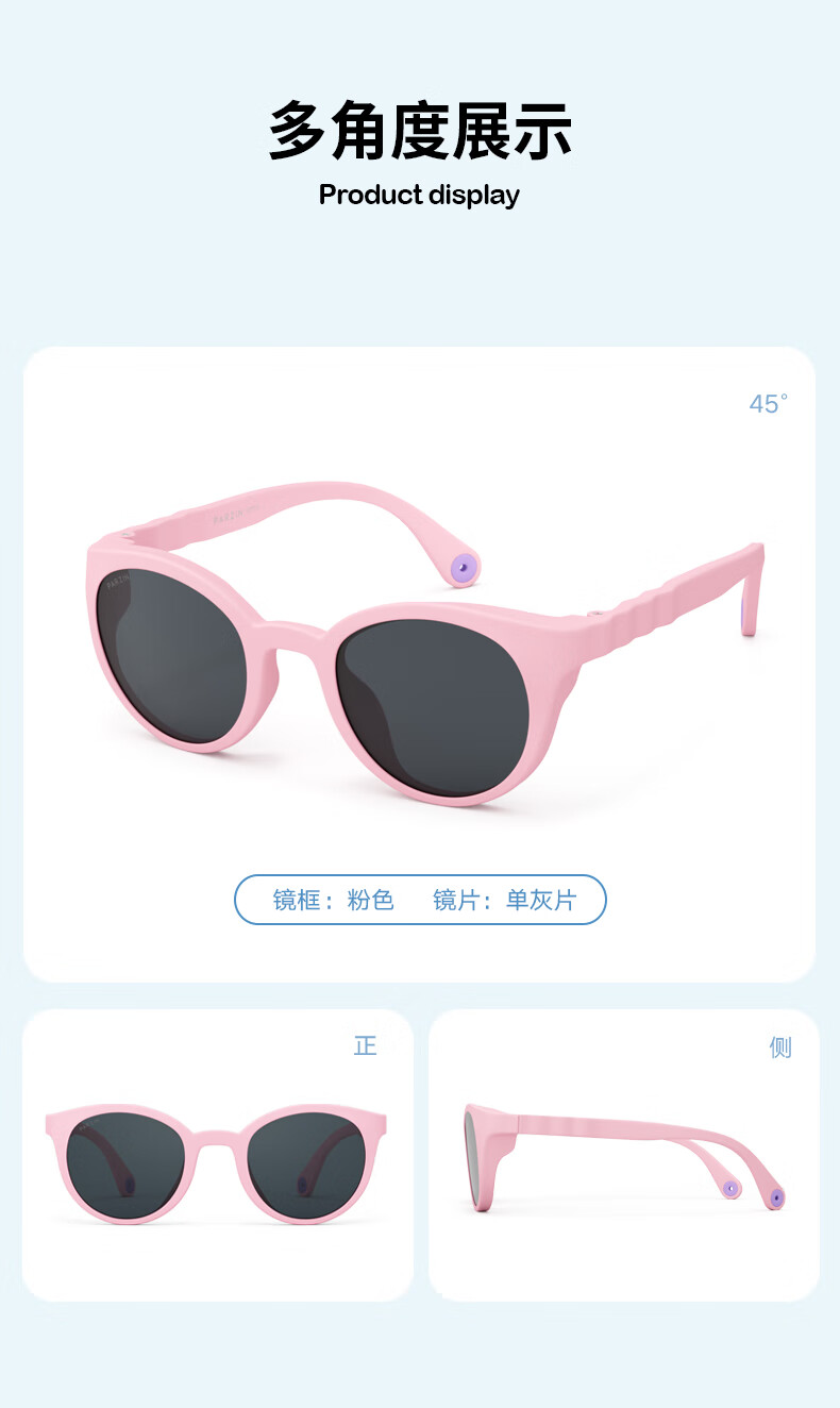 PARZIN KIDS儿童太阳镜 偏圆框轻盈时尚眼镜户外防紫外线防晒墨镜6-8岁 21033