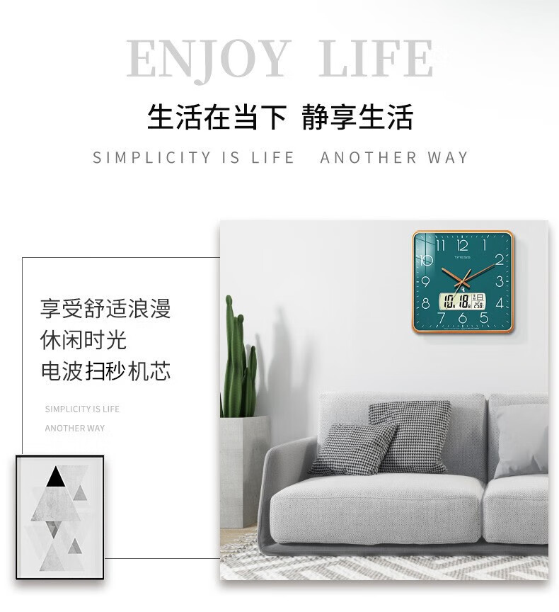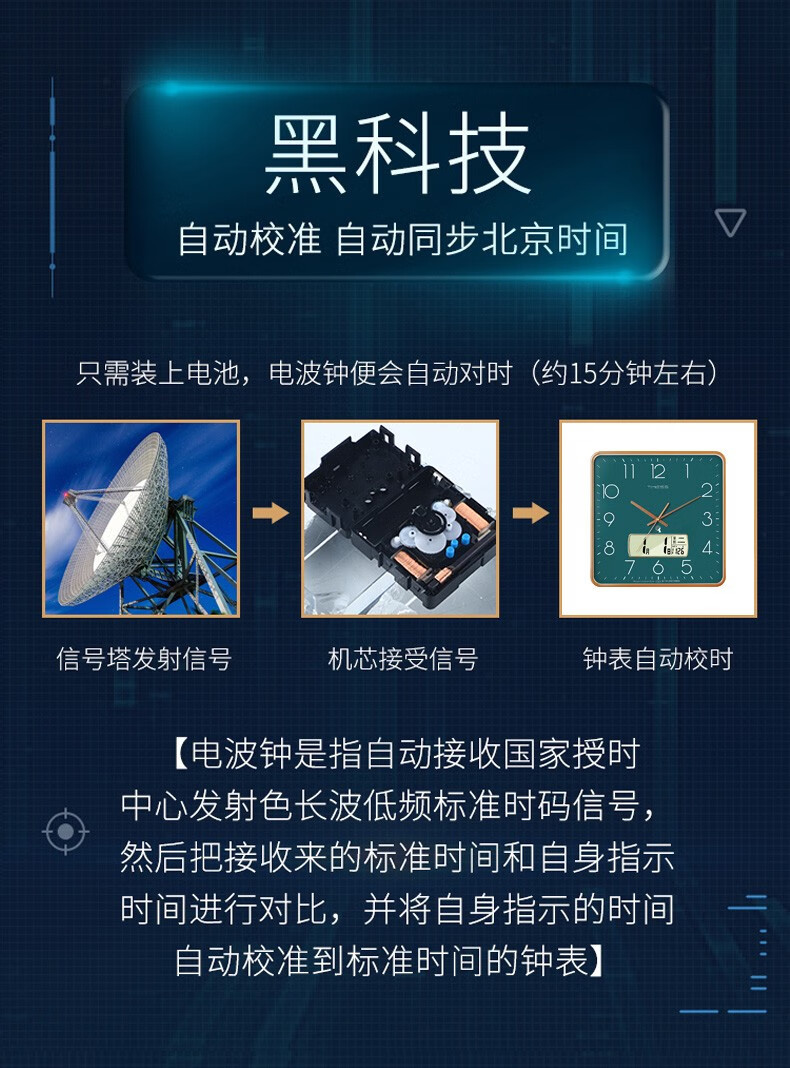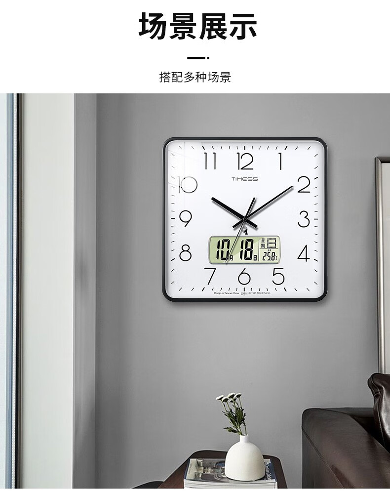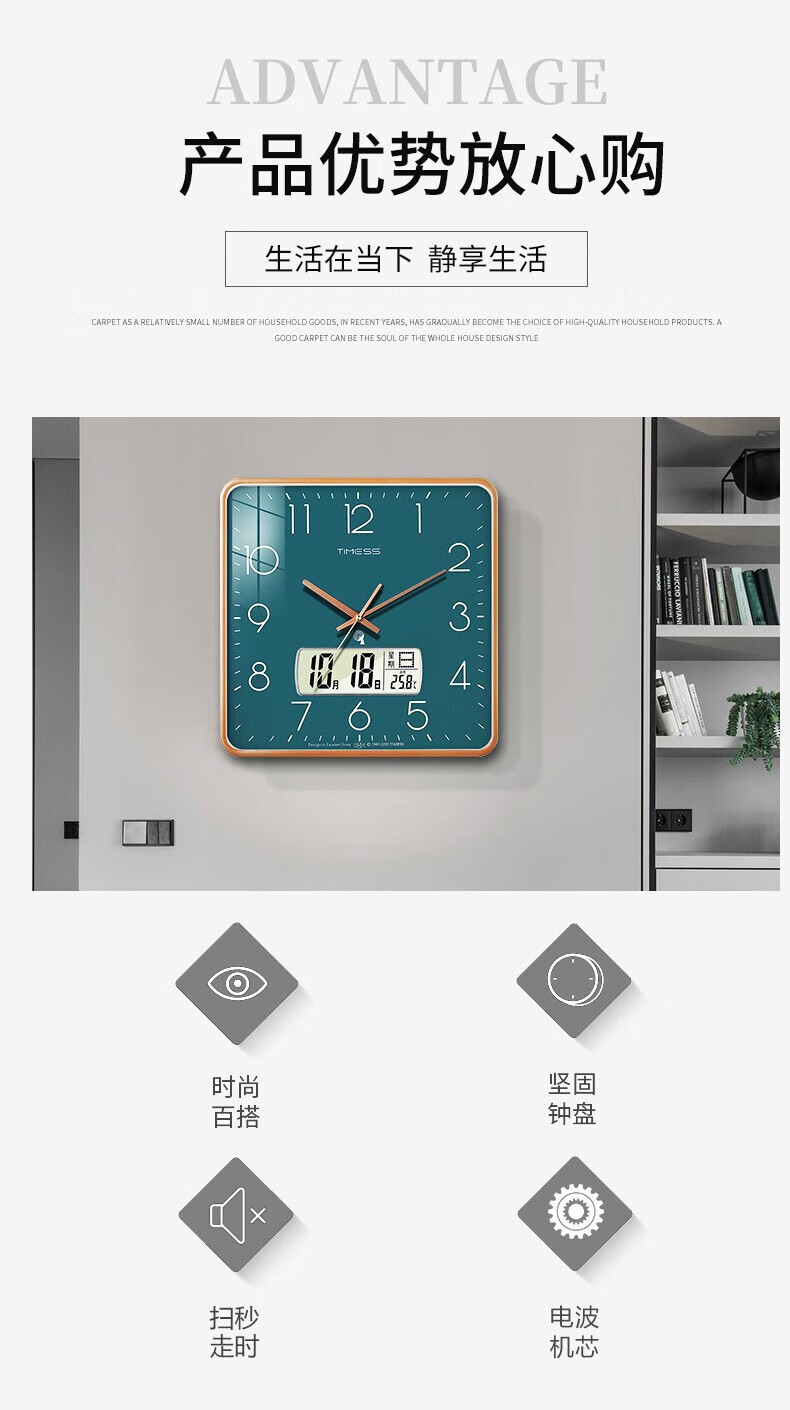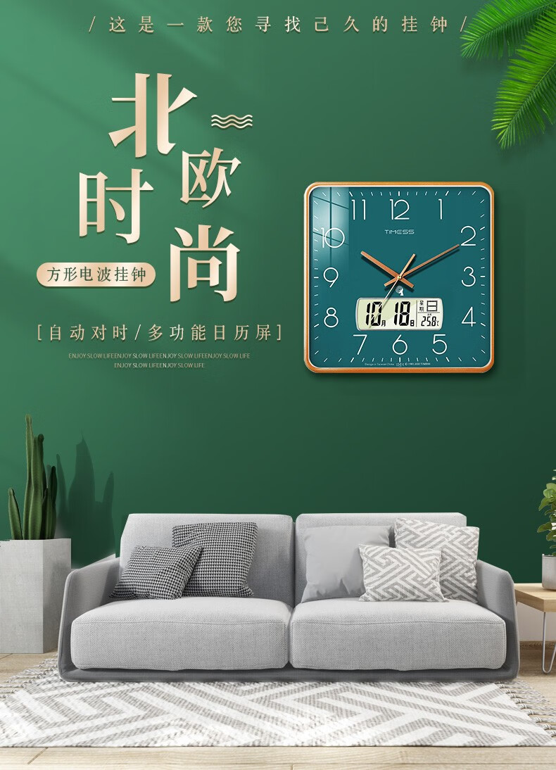 Timess挂钟 电波钟客厅钟表万年历时尚时钟表挂墙智能自动对时36cm