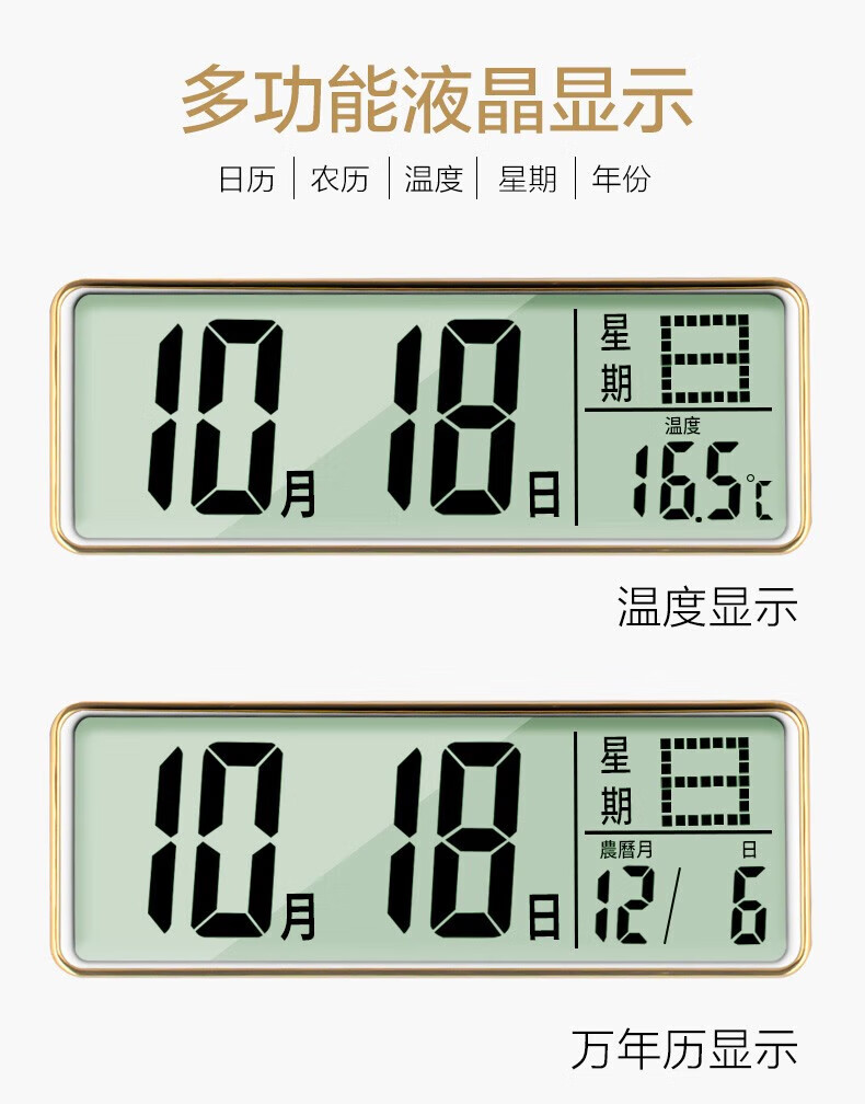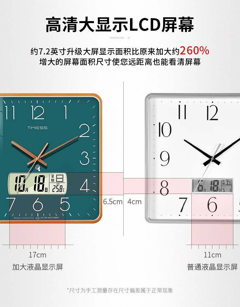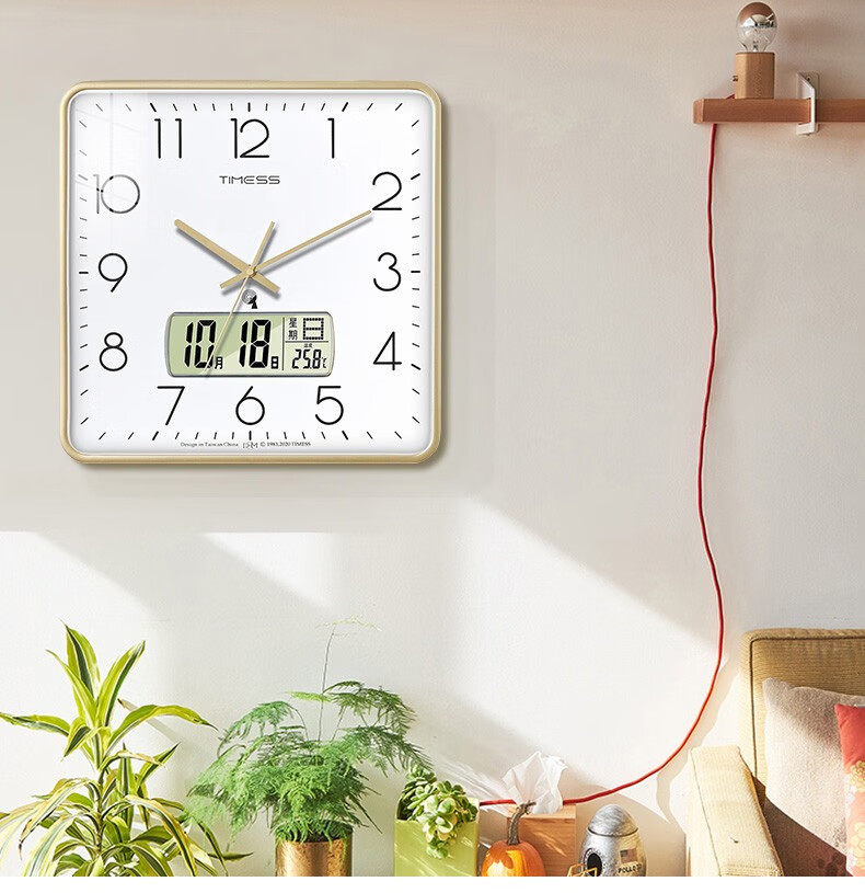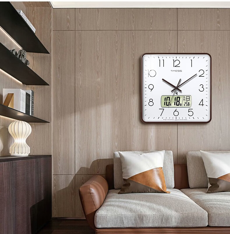 Timess电波挂钟客厅钟表万年历时钟双日历温度挂表自动对时表挂墙38cm