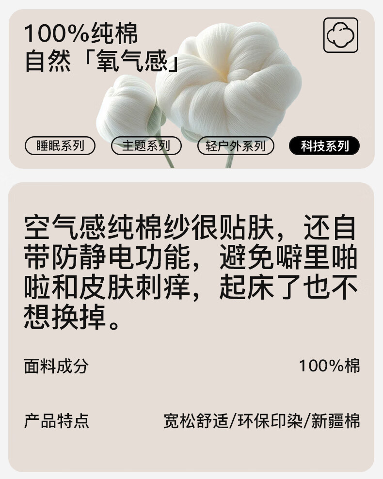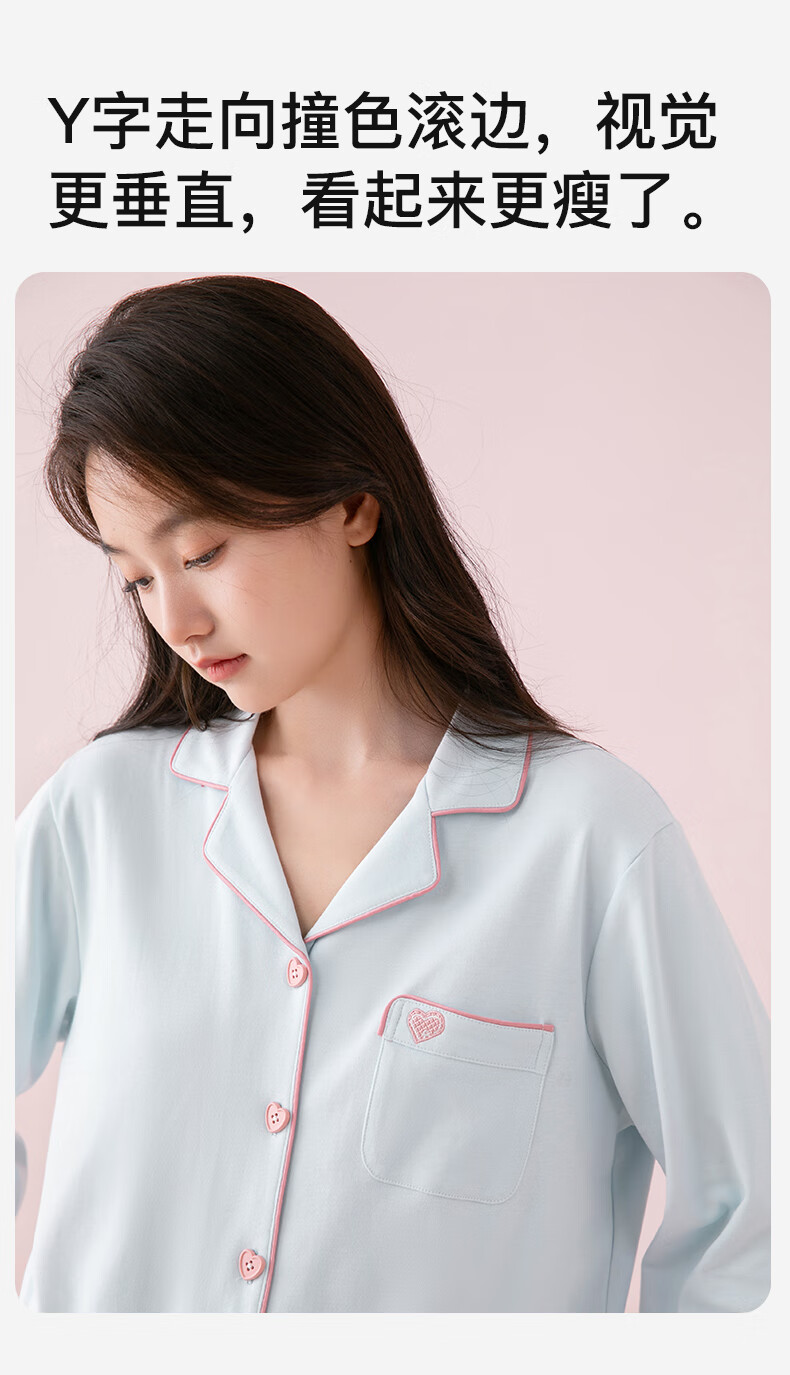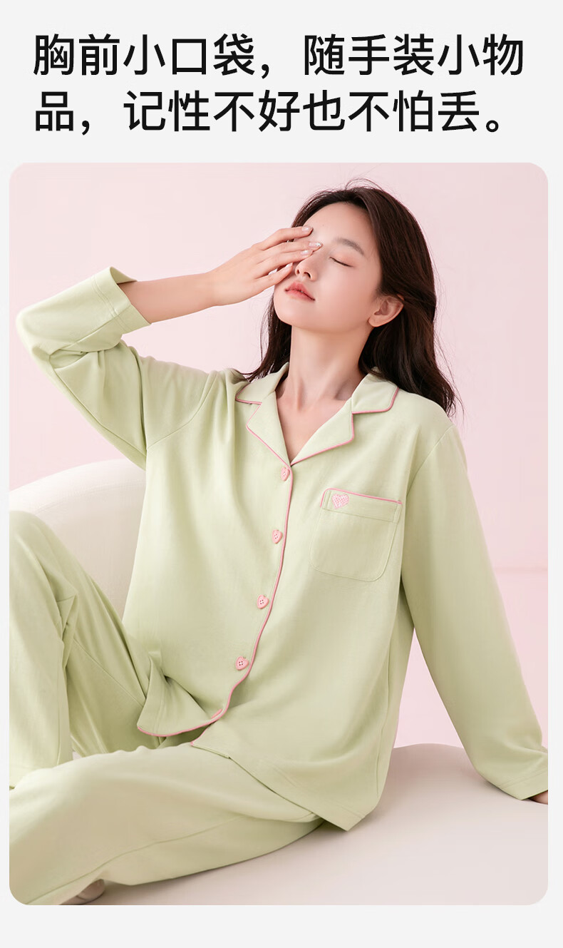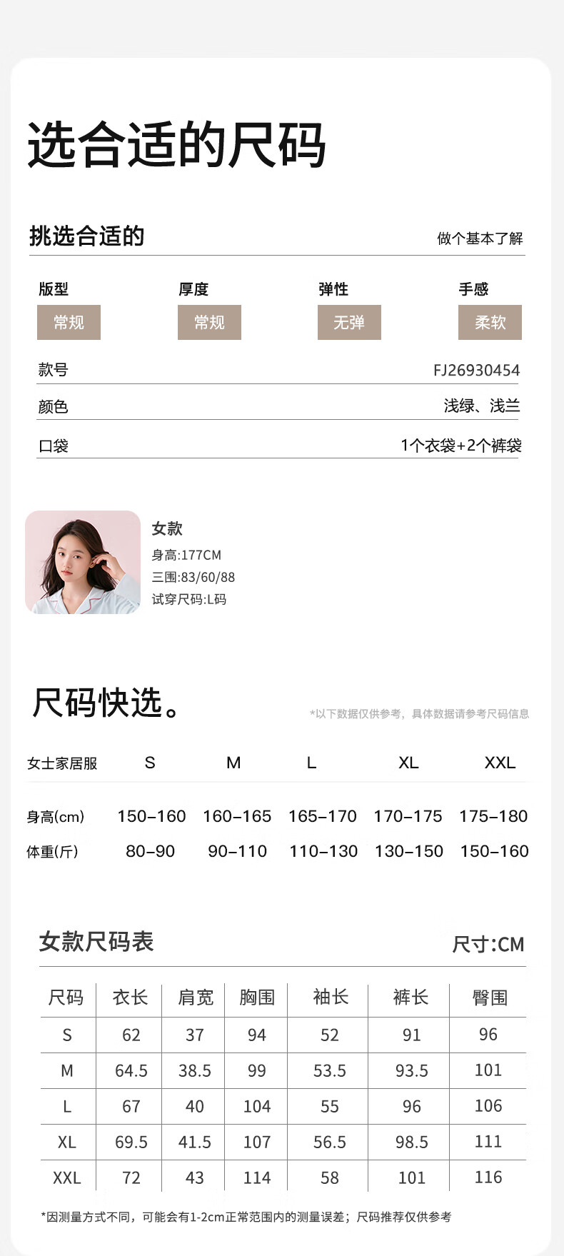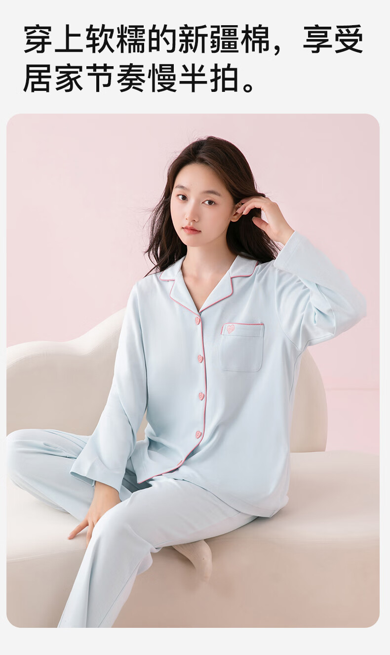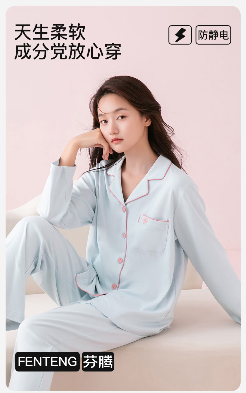 芬腾睡衣女100%纯棉2025秋冬新款防静电氧气肤感简约纯色家居服套装 浅兰 M