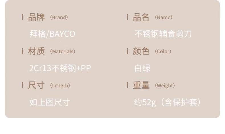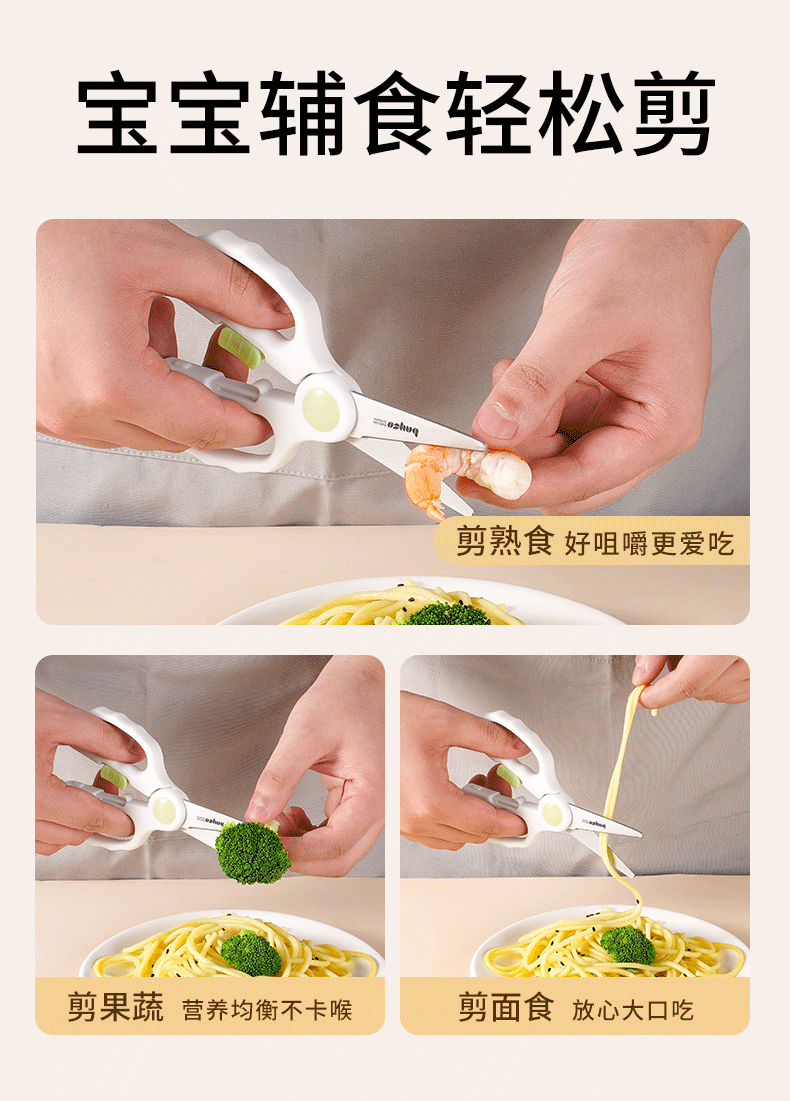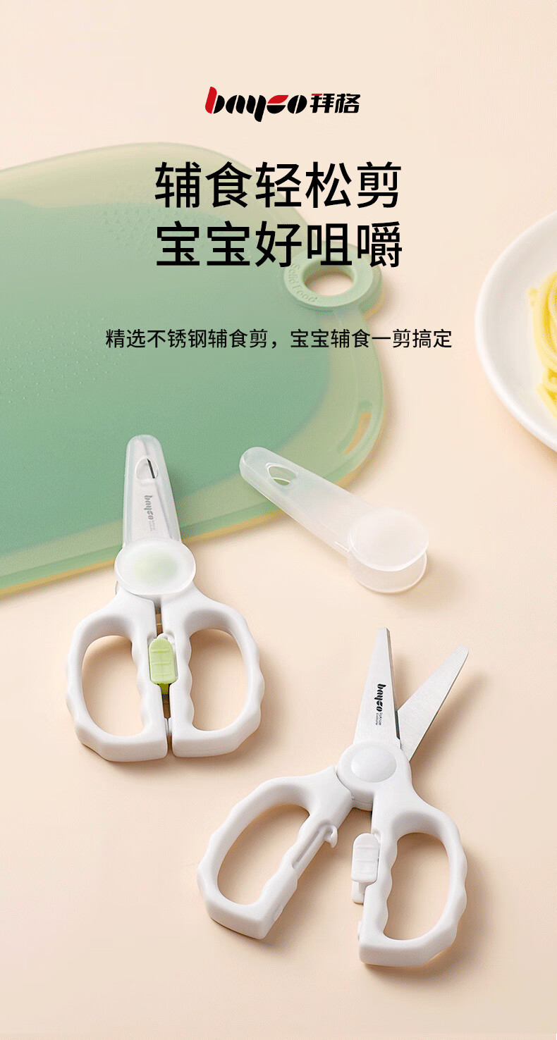 拜格(BAYCO)婴儿辅食剪刀厨房不锈钢儿童辅食剪食物小剪刀宝宝辅食工具BD3040