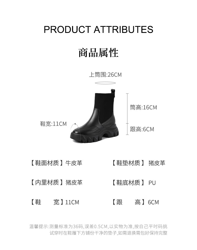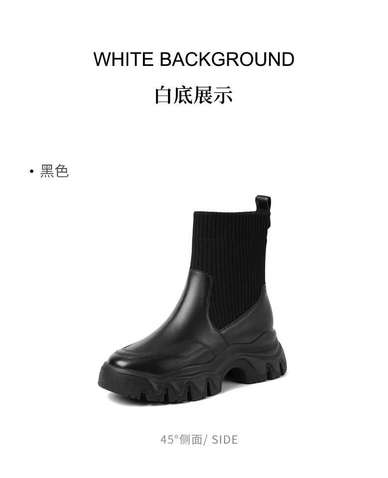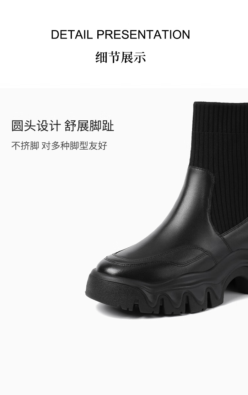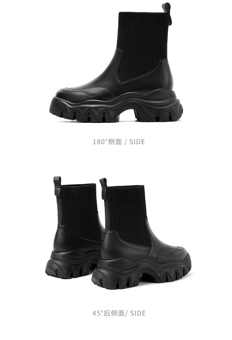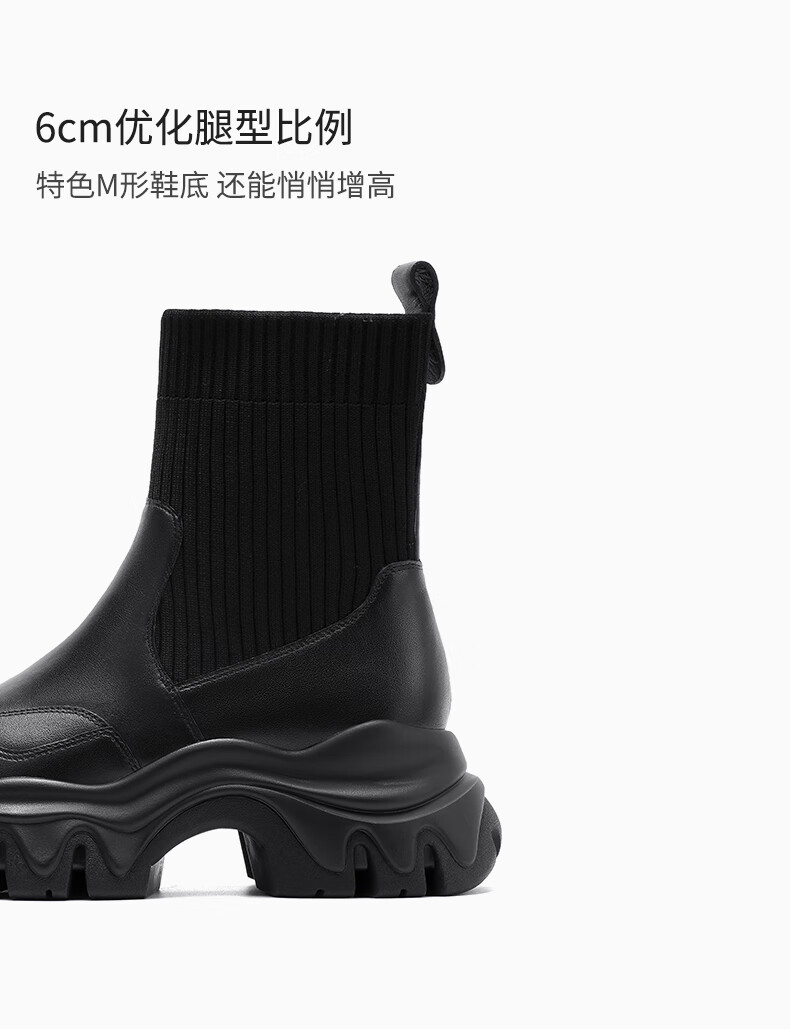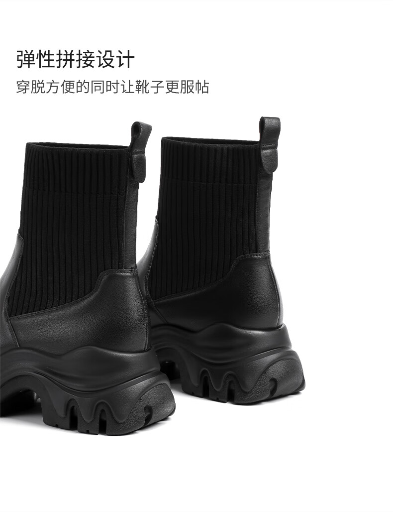 哈森(Harson)女靴2025冬季弹力靴运动靴牛皮织物袜靴迷你靴HA259021 黑色 34