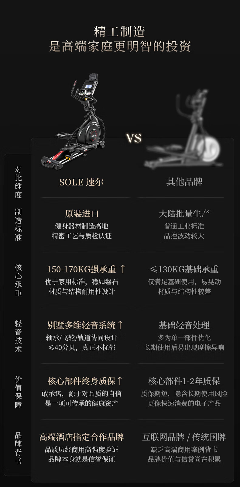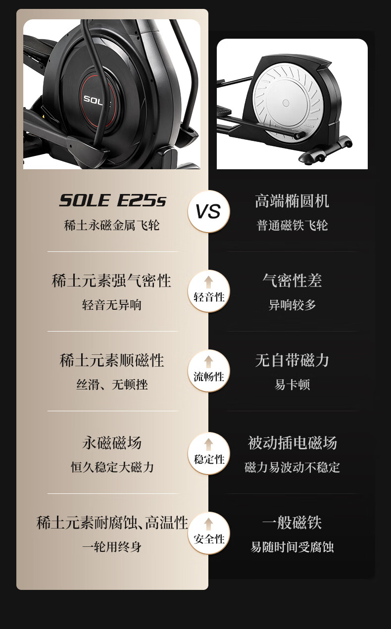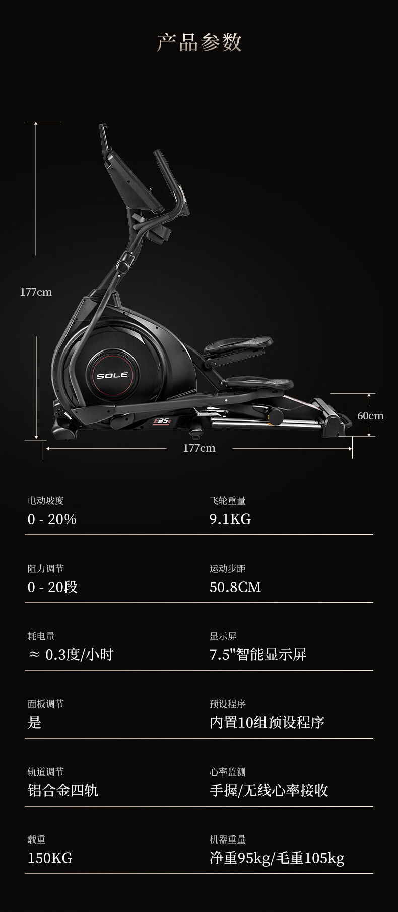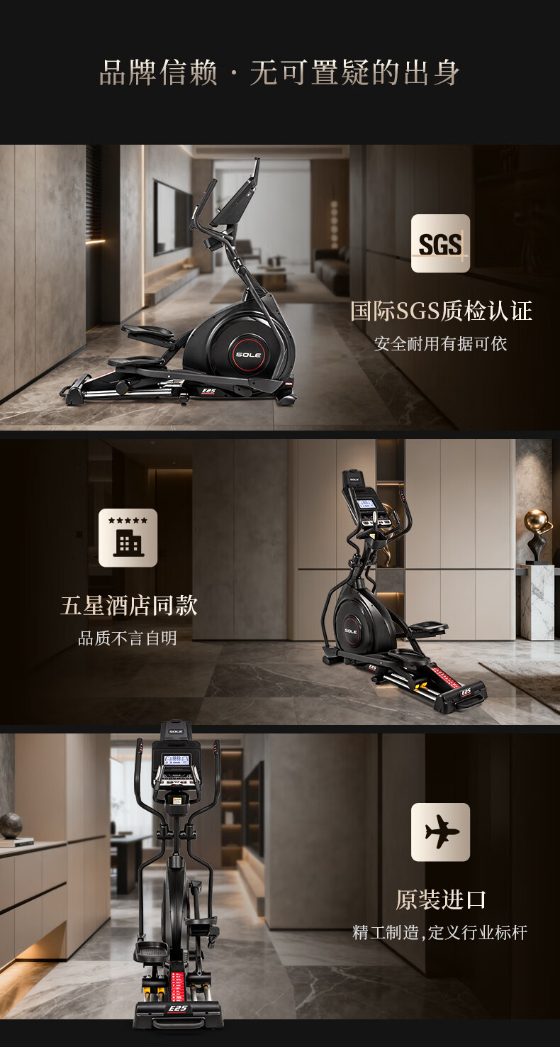 速尔(SOLE)进口椭圆机家用高端静音椭圆仪太空漫步机健身器材美国同款E25S 当季新款-静音永磁E25S